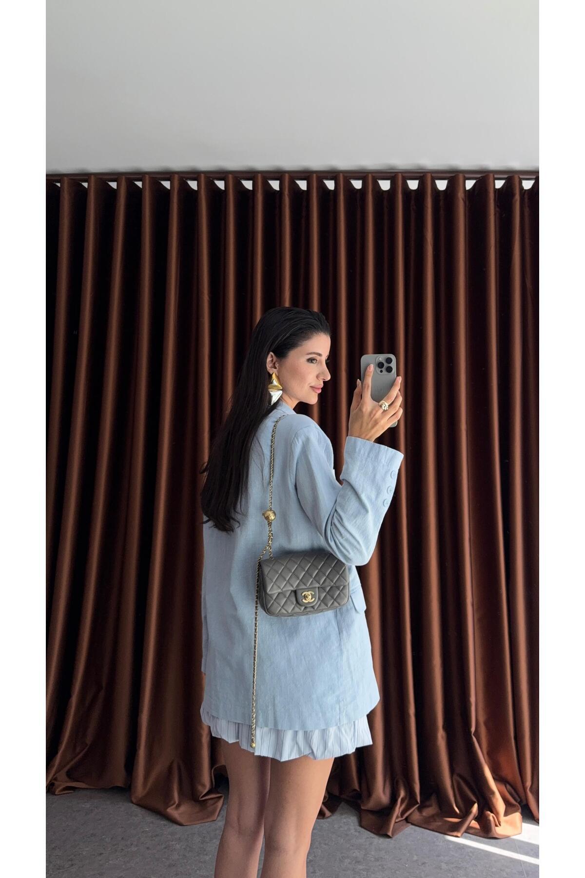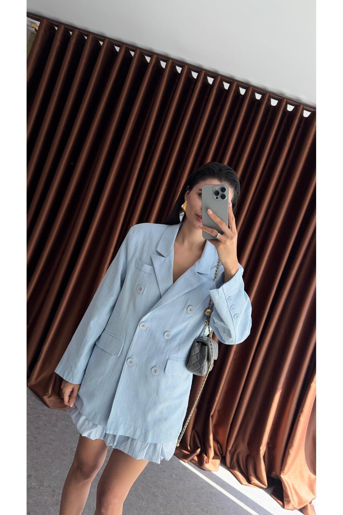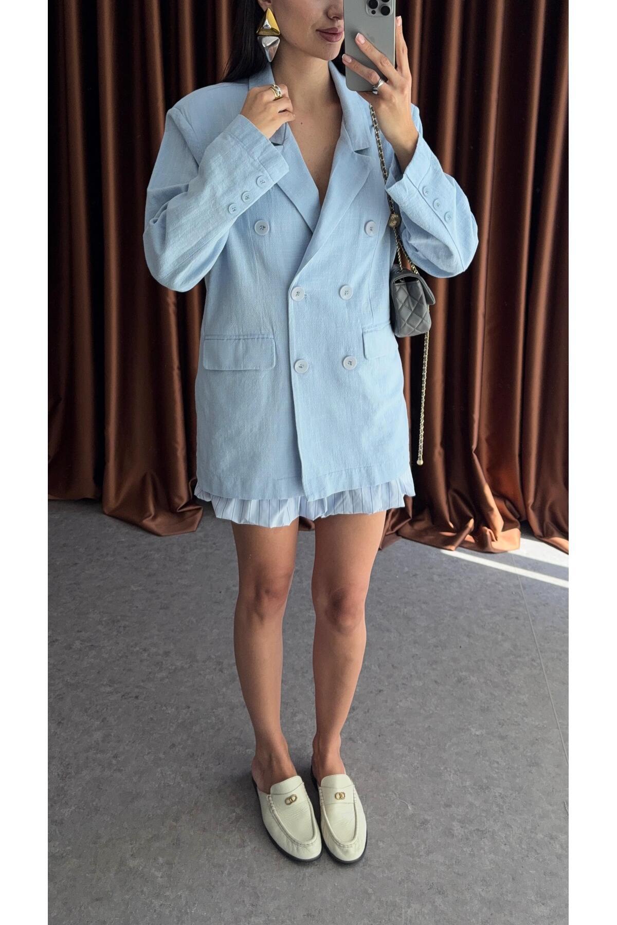 Bebe Mavisi Düğmeli Oversize Ceket Bebe Mavisi Düğmeli Oversize Ceket 11705 L