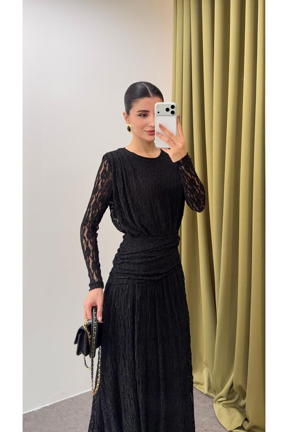 Düşük Omuz Pembe Elbise Düşük Omuz Pembe Elbise 11723 L