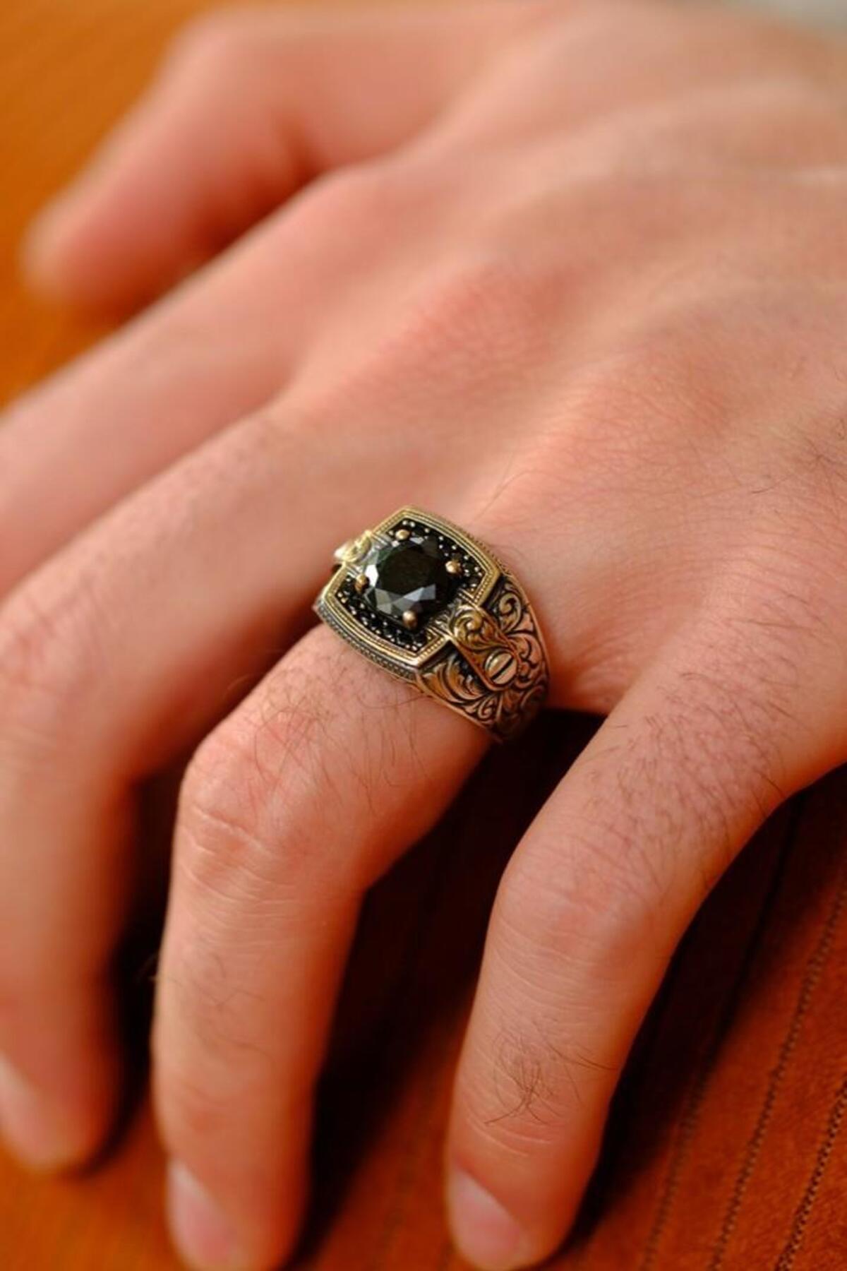 El İşçiliği Yadigar Siyah Taşlı 925 Ayar Gümüş Yüzük El İşçiliği Yadigar Siyah Taşlı 925 Ayar Gümüş Yüzük DRG2572 30
