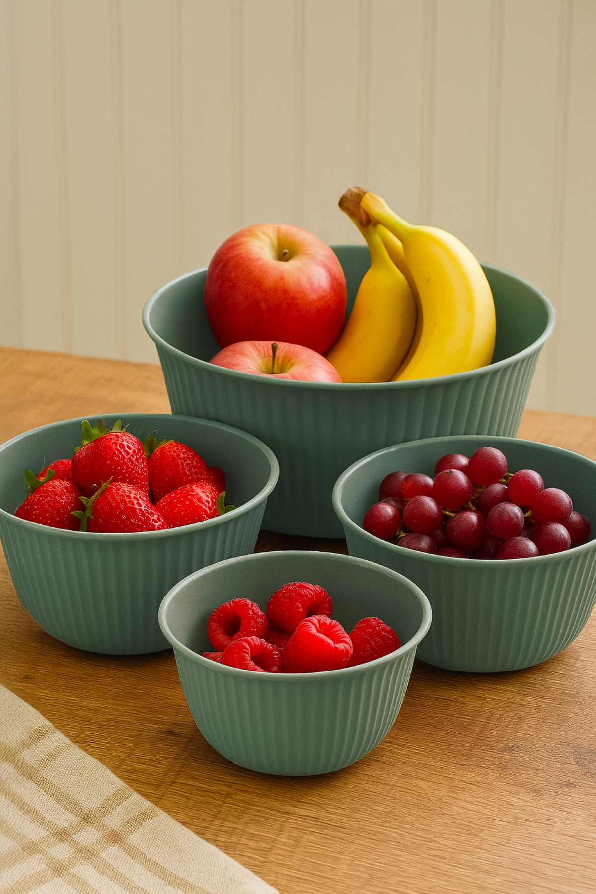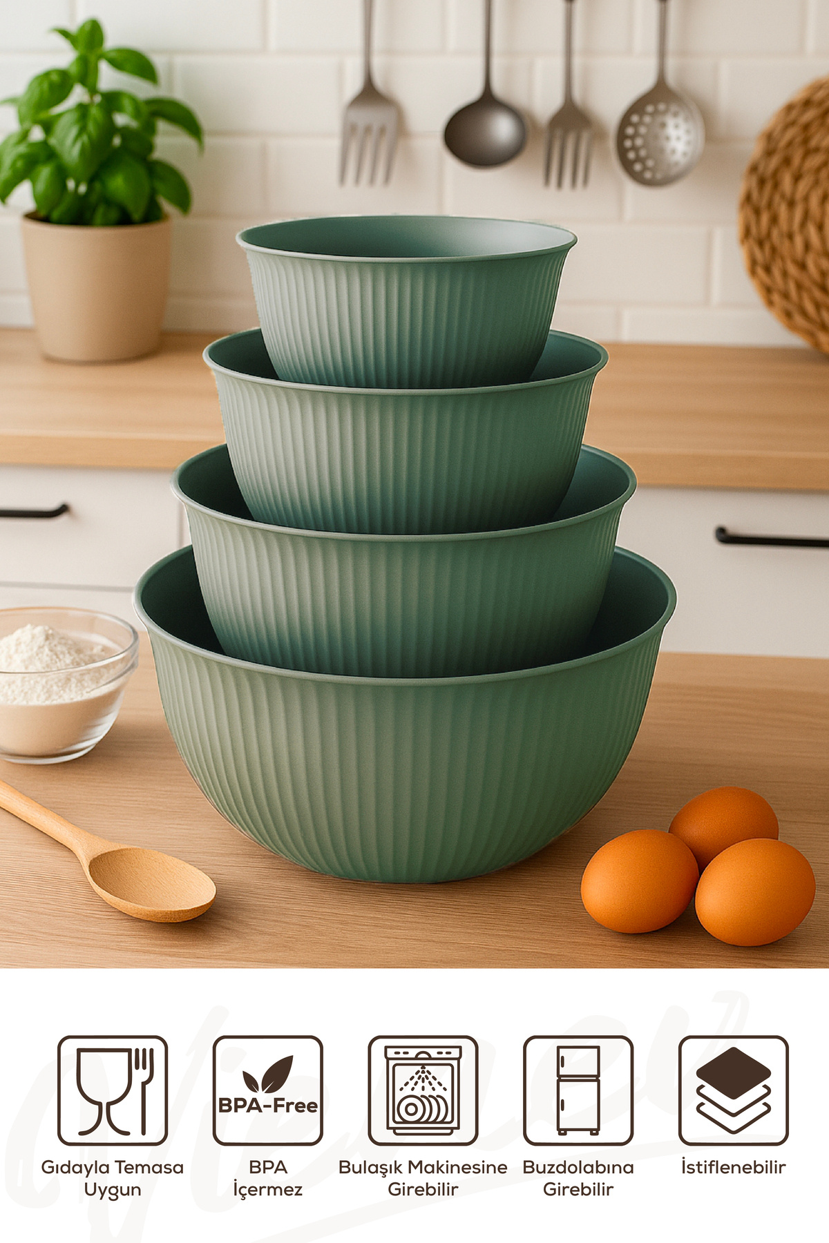 4'lü Mega Boy Plastik Karıştırma ve Saklama Kase Seti | 1L, 2L, 3L, 5L Yeşil 4'lü Mega Boy Plastik Karıştırma ve Saklama Kase Seti | 1L, 2L, 3L, 5L Yeşil BNM-0499 تک سایز
