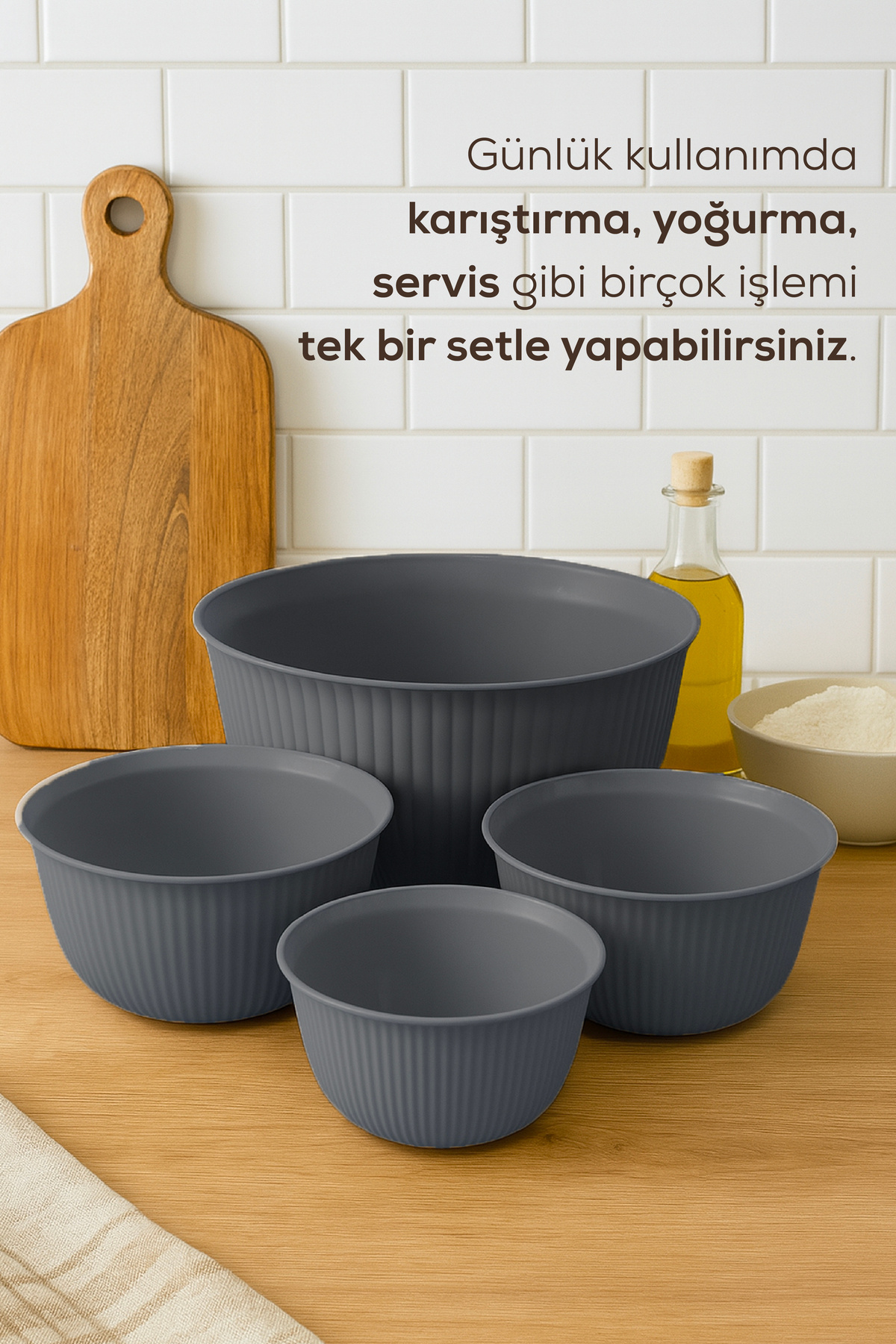 4'lü Mega Boy Plastik Karıştırma ve Saklama Kase Seti | 1L, 2L, 3L, 5L Antrasit 4'lü Mega Boy Plastik Karıştırma ve Saklama Kase Seti | 1L, 2L, 3L, 5L Antrasit BNM-0499 تک سایز