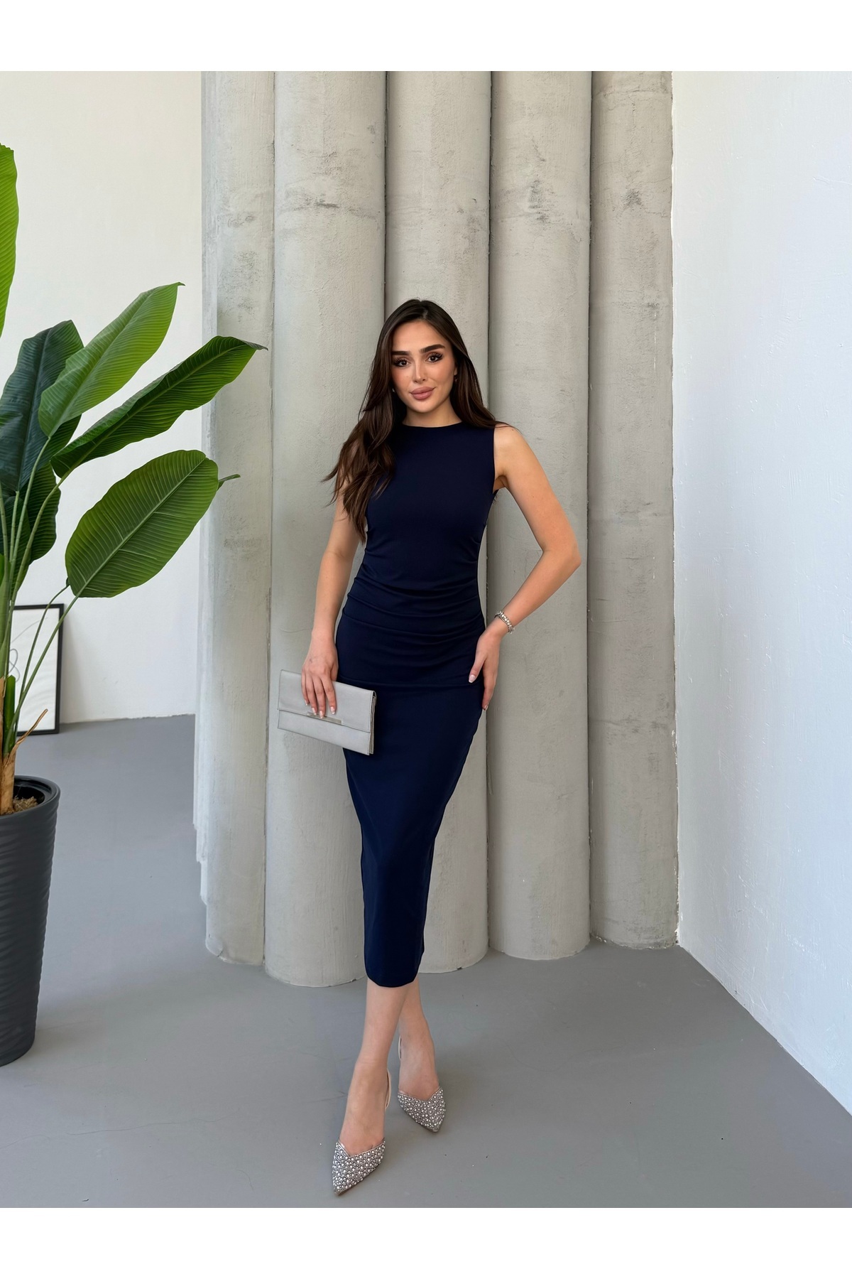 Kadın Drapeli Skuba Krep Midi Kurtarıcı Elbise Kadın Drapeli Skuba Krep Midi Kurtarıcı Elbise Drpl L
