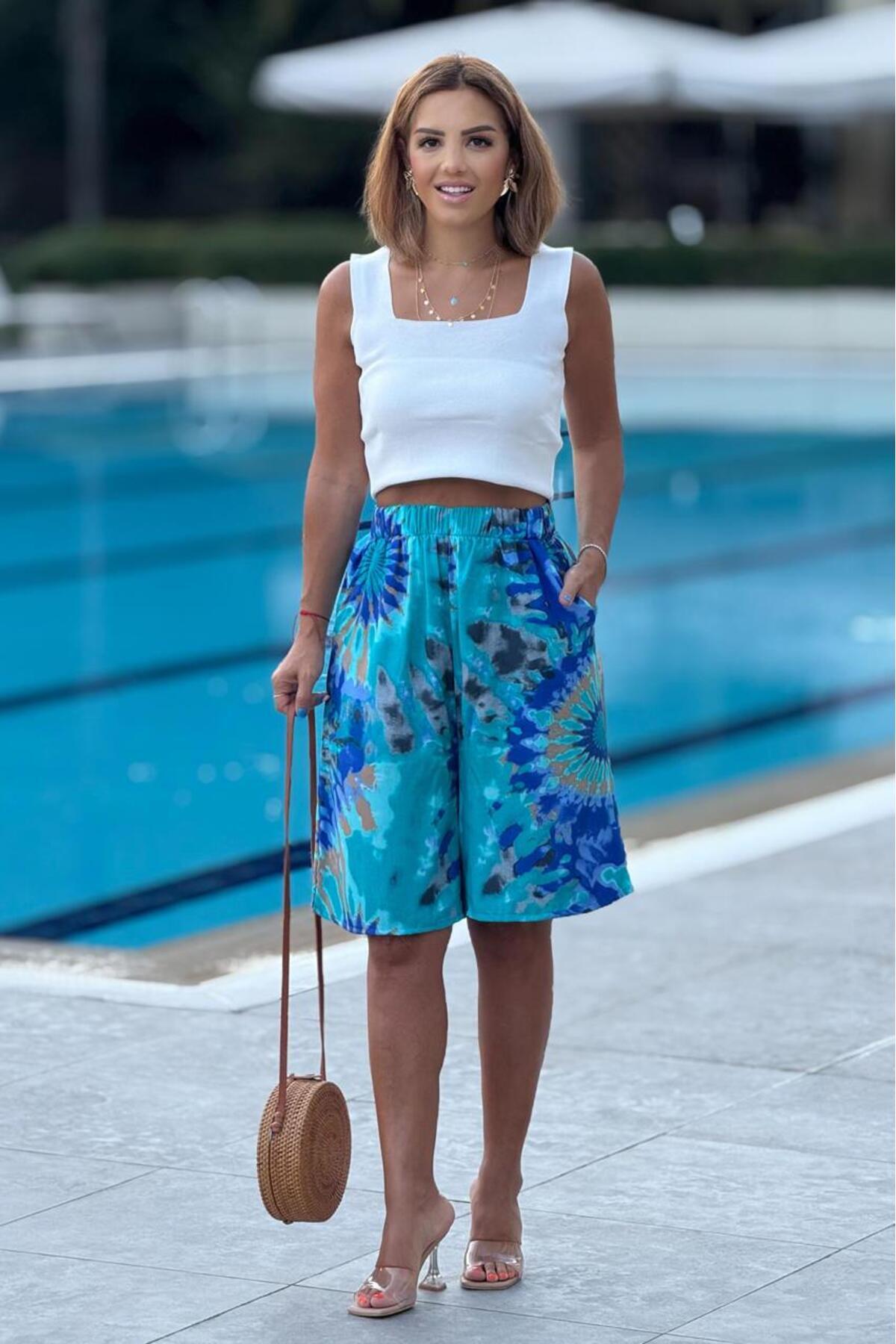 TEK ŞORT Mavi Etnik Desenli TEK ŞORT Mavi Etnik Desenli Etnik Şort 36/38