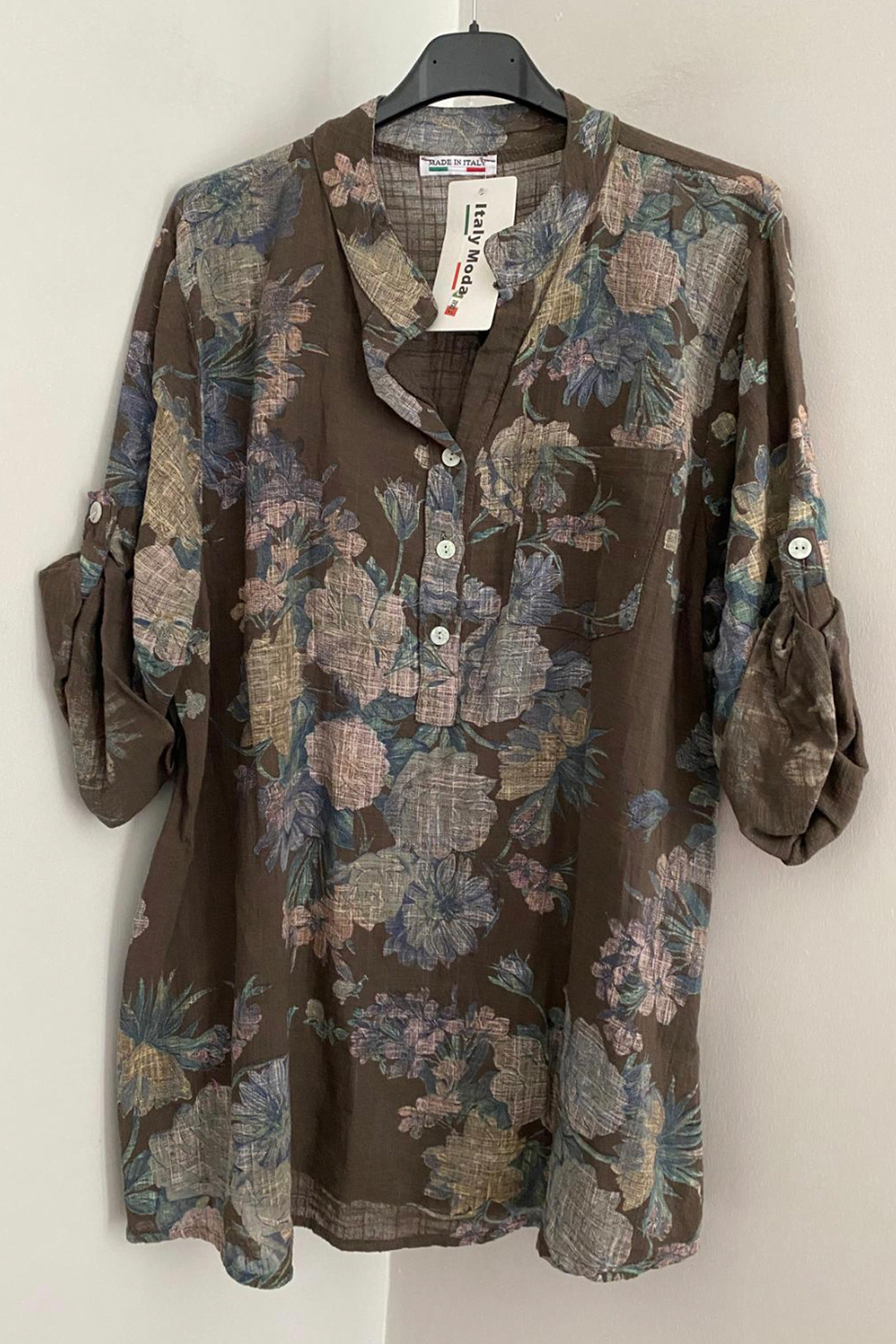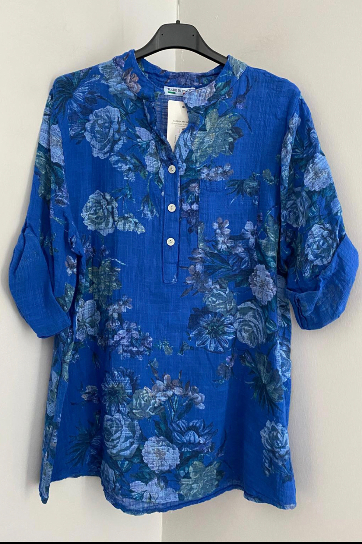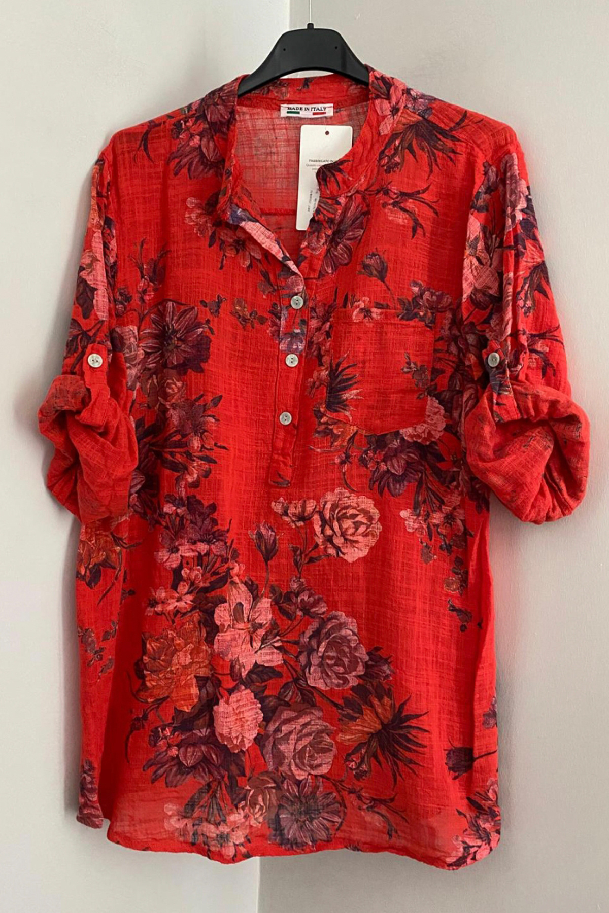 Kadın İtalyan Fuşya Çiçek Desenli Düğme Detaylı Katlanan Yetim Kollu %100 Pamuk Bluz Tunik Kadın İtalyan Fuşya Çiçek Desenli Düğme Detaylı Katlanan Yetim Kollu %100 Pamuk Bluz Tunik 25045810MM-ITALYAN Standart