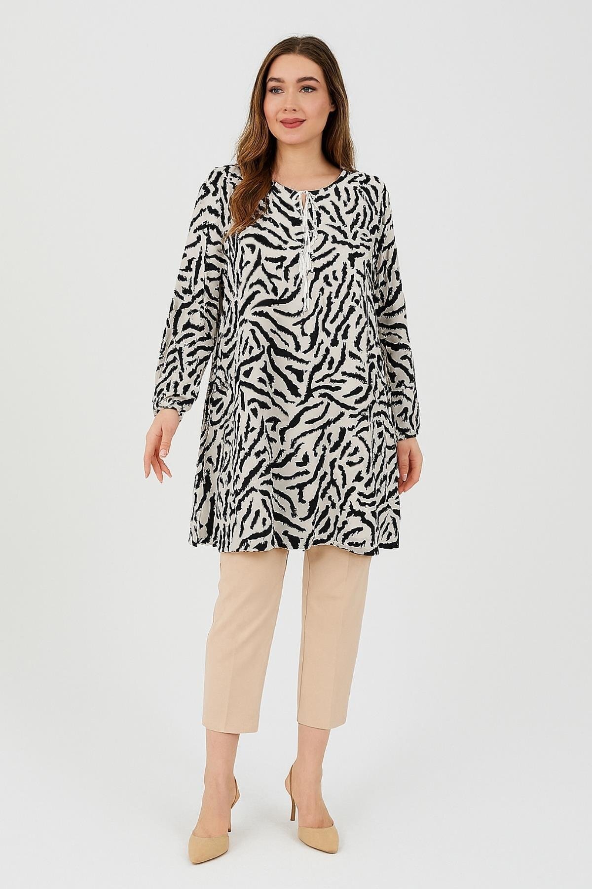 Kadın Zigzag Cizgi Desenli Dokuma Tunik Siyah Turuncu Kadın Zigzag Cizgi Desenli Dokuma Tunik Siyah Turuncu SLR001TZC 4XL