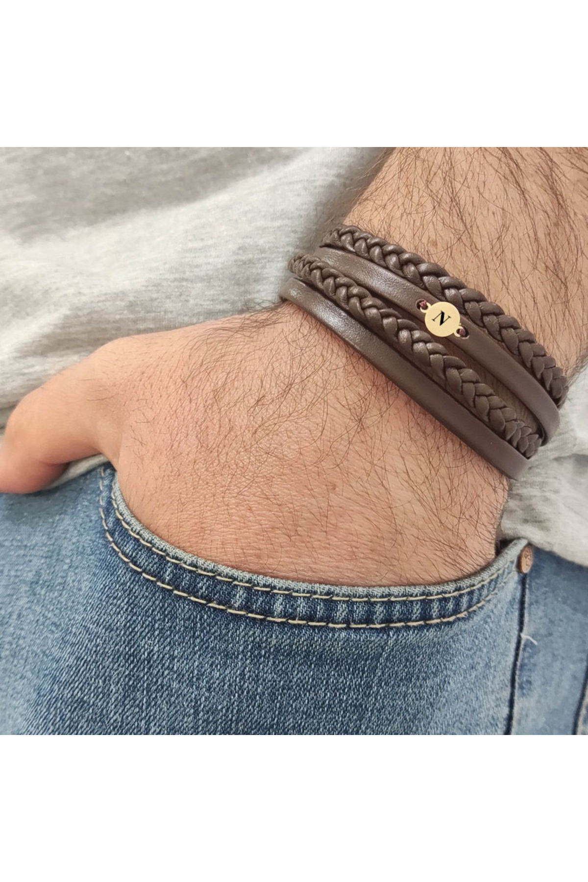 14 Ayar Altın Plakalı N Harfine Özel Kahverengi Derili Yuvarlak Motifli Hediye Bileklik-533harf 14 Ayar Altın Plakalı N Harfine Özel Kahverengi Derili Yuvarlak Motifli Hediye Bileklik-533harf 533-bildegou-mlbof-T-MO2 43 cm