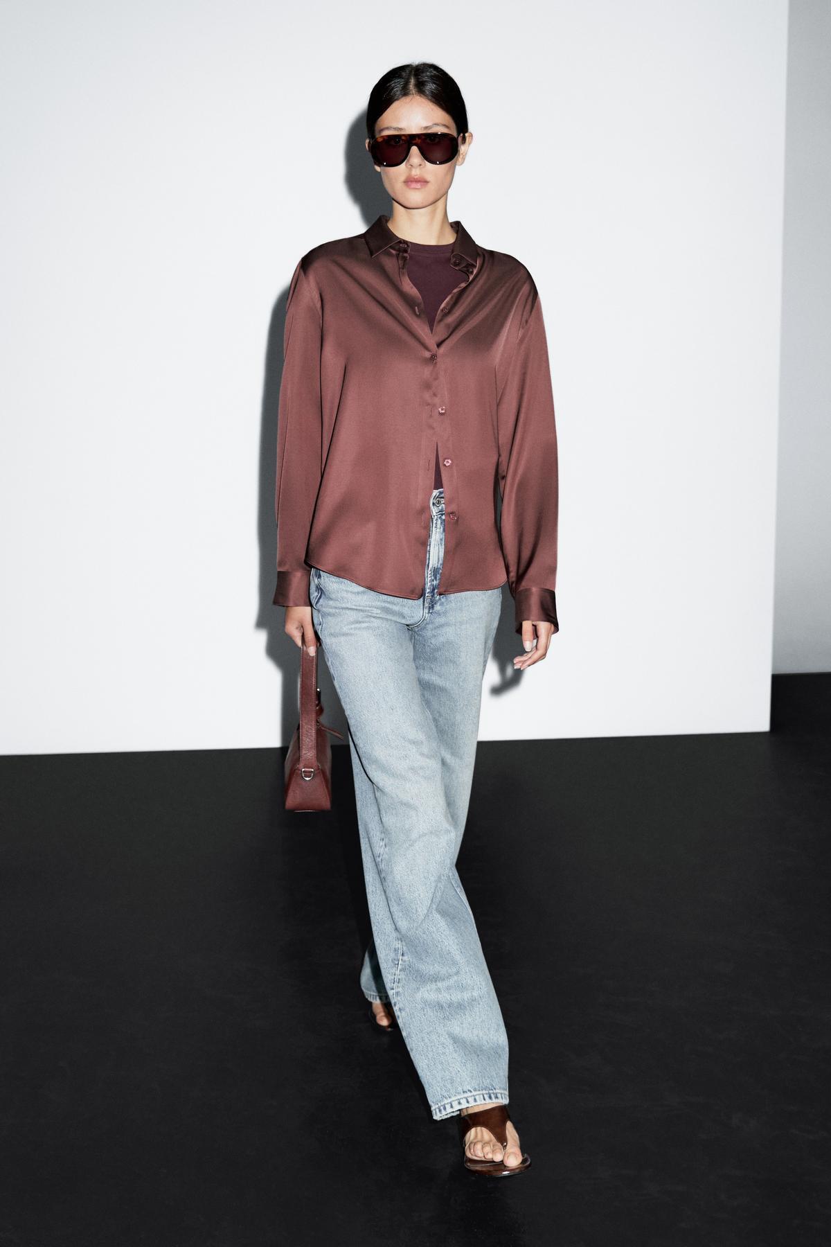 Dökümlü saten gömlek Dökümlü saten gömlek 00110779205150950 L
