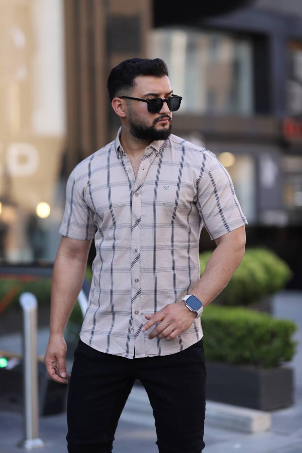 Erkek Yıkamalı Kısa Kol Kareli Gömlek 2462-1 Erkek Yıkamalı Kısa Kol Kareli Gömlek 2462-1 2XL
