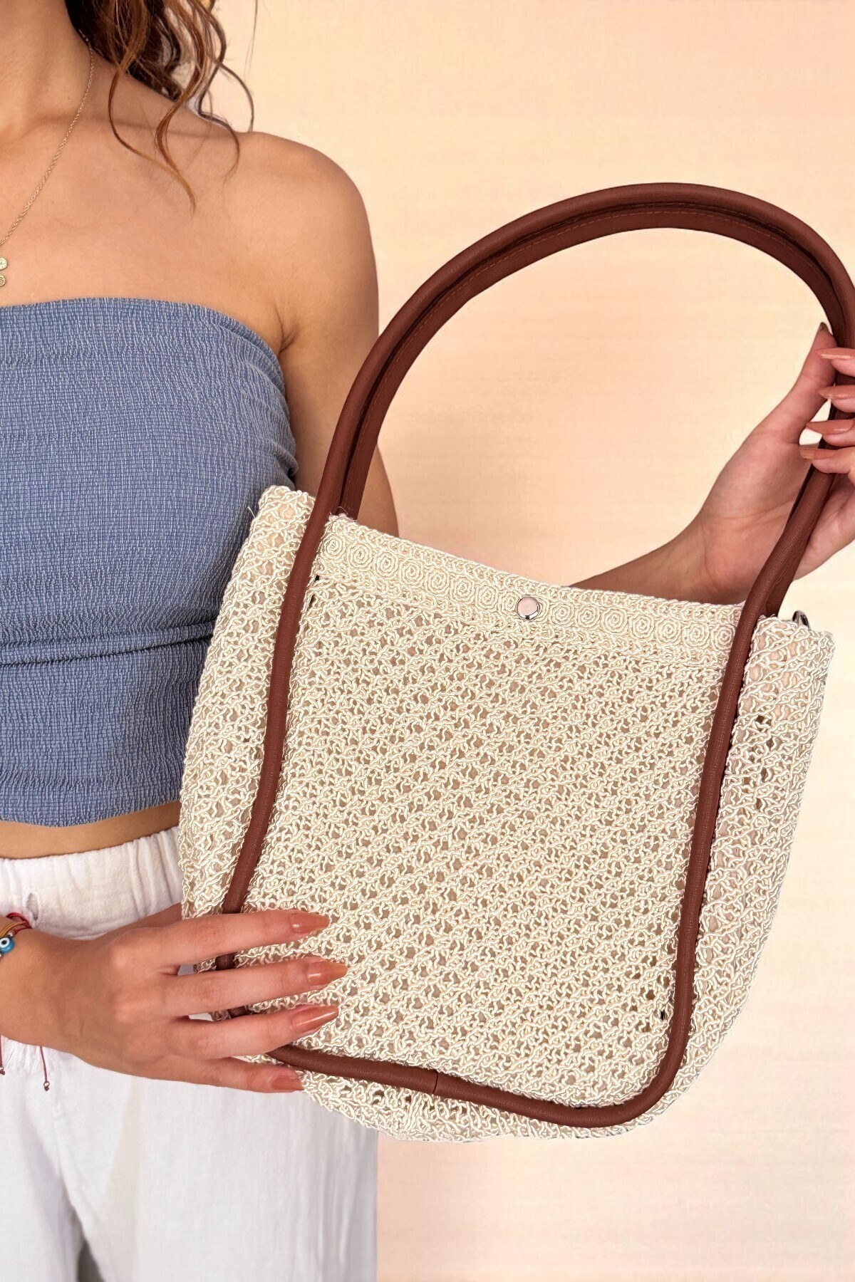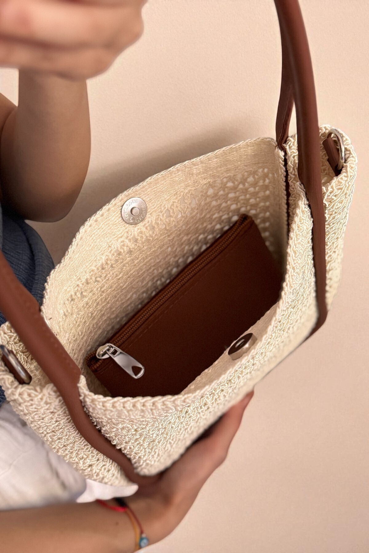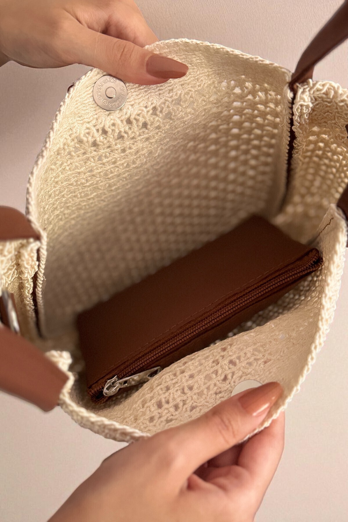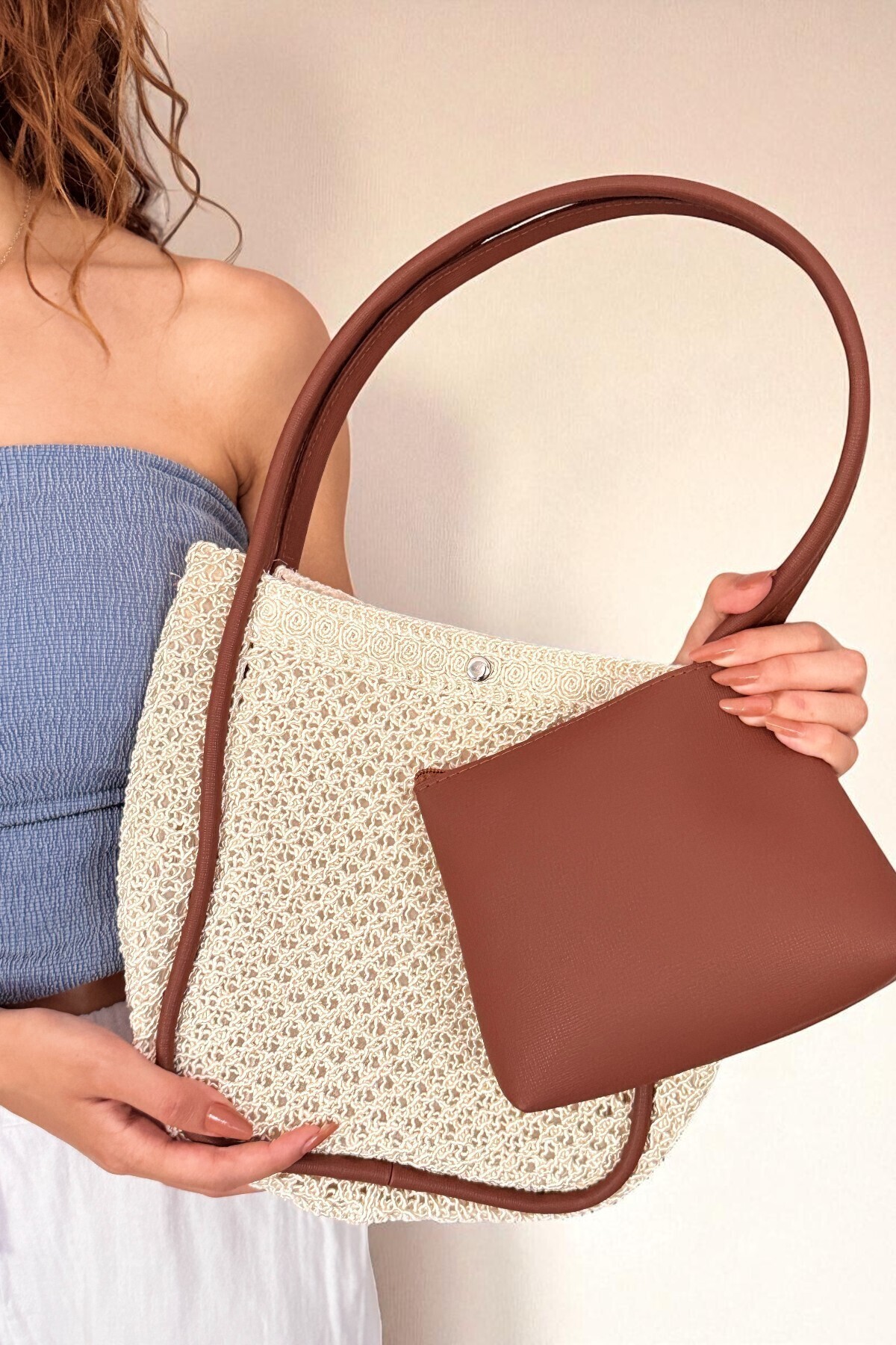 Kadın Krem Doğal Örgü Dokulu Yavru Çantalı Askılı Çanta Kadın Krem Doğal Örgü Dokulu Yavru Çantalı Askılı Çanta ASL01 Standart