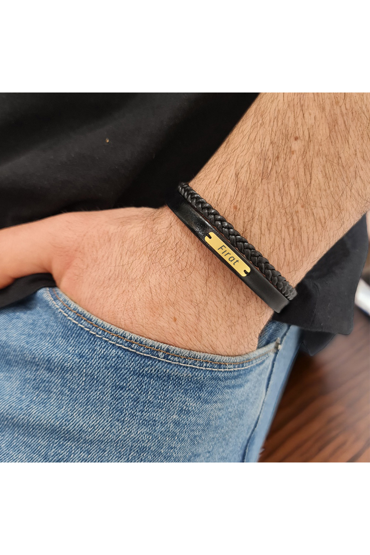 14 Ayar Altın Plakalı Fırat Yazılı Hakiki Siyah Derili Dikdörtgen Motifli Hediye Bileklik-537isim 14 Ayar Altın Plakalı Fırat Yazılı Hakiki Siyah Derili Dikdörtgen Motifli Hediye Bileklik-537isim 537-malbsgd-nsf-T-MO1 22 cm