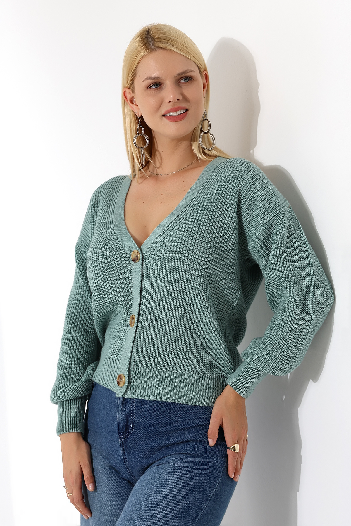 Kadın Uzun Kollu Düğmeli Triko Hırka Kadın Uzun Kollu Düğmeli Triko Hırka MRVN-0014 Standart
