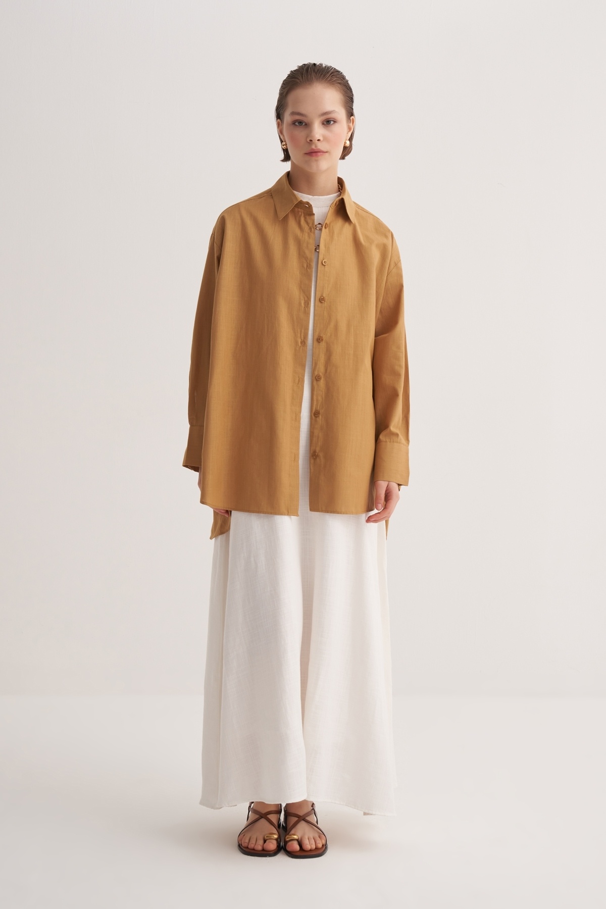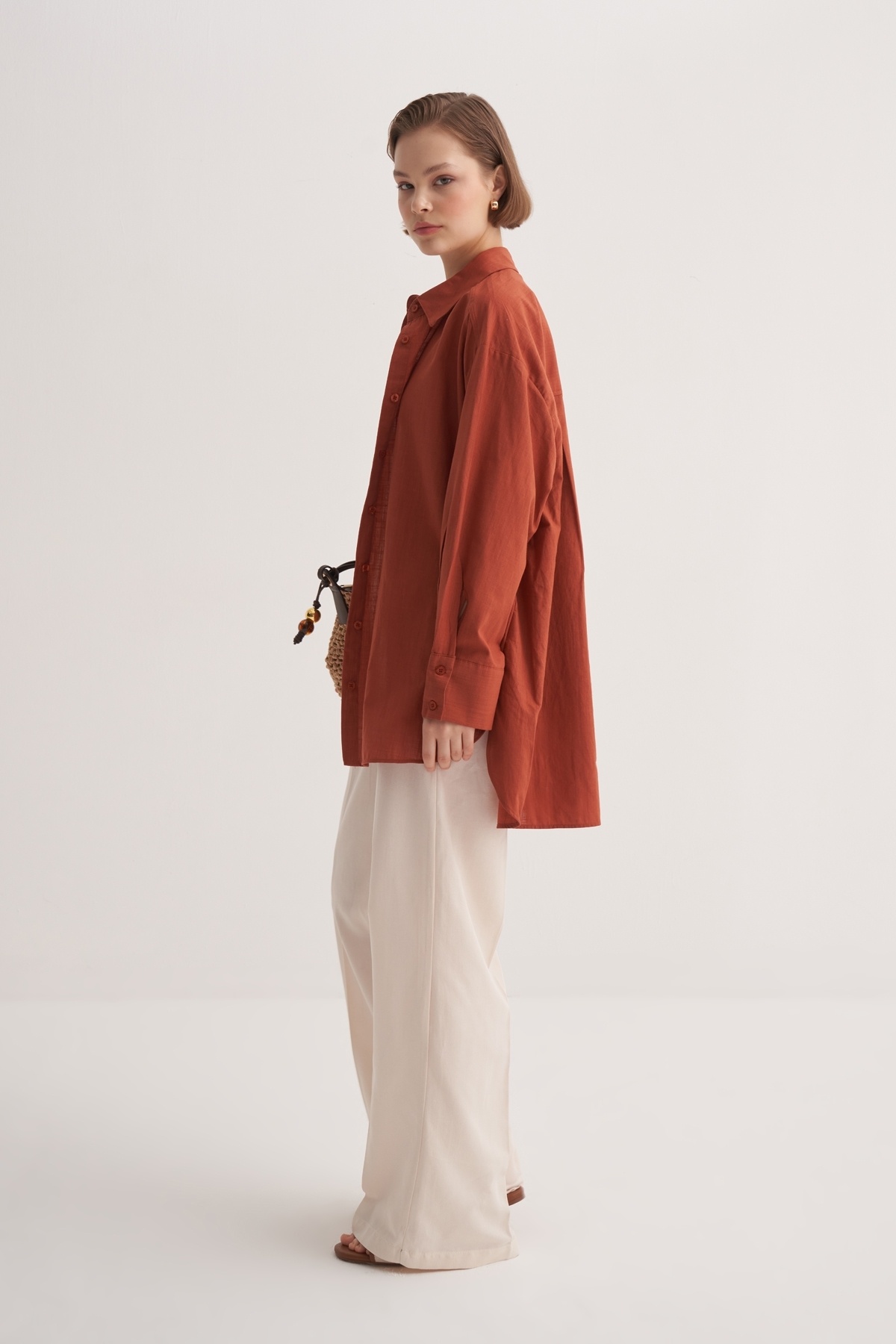 Kadın Organik Pamuklu Oversize Robalı Gömlek Kiremit Kadın Organik Pamuklu Oversize Robalı Gömlek Kiremit 25-SPR-ORG-486-EBU-BHR L/XL