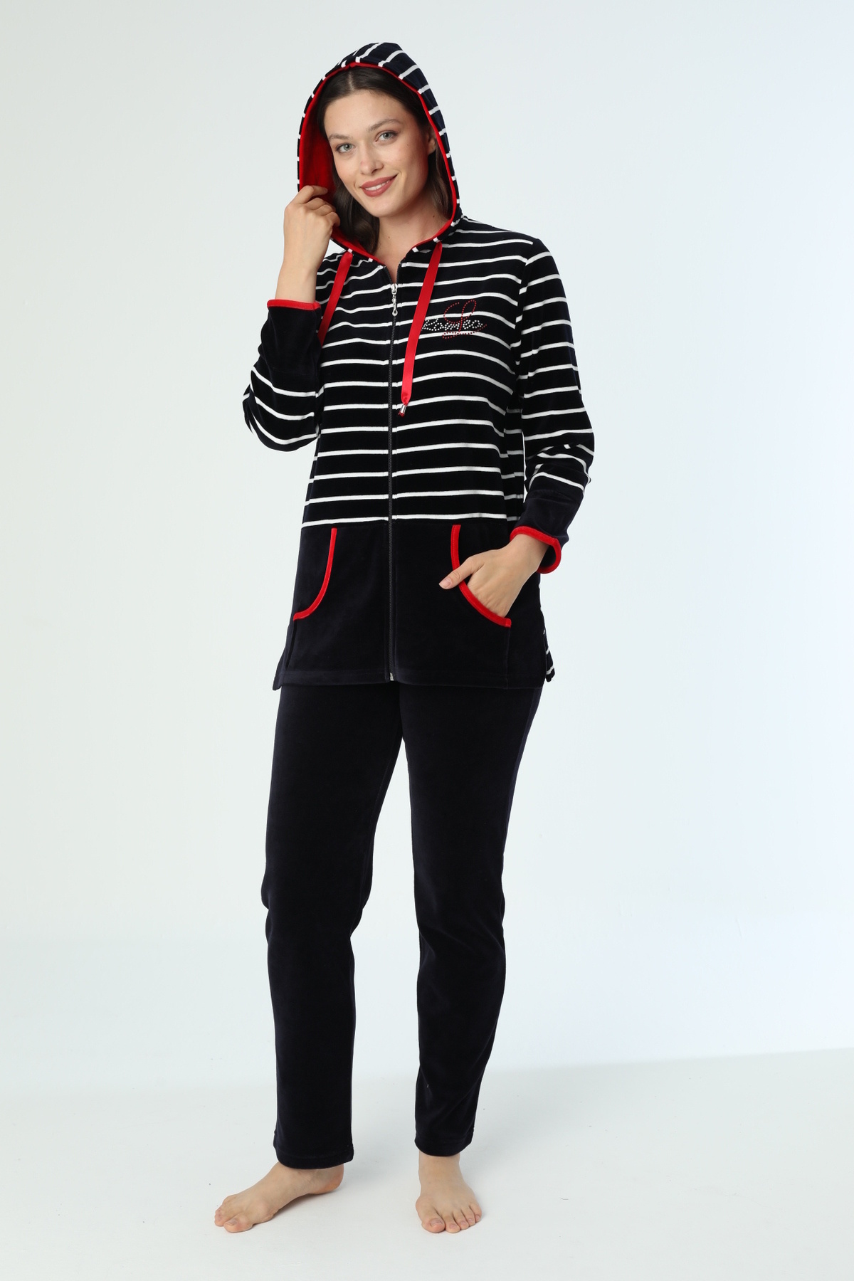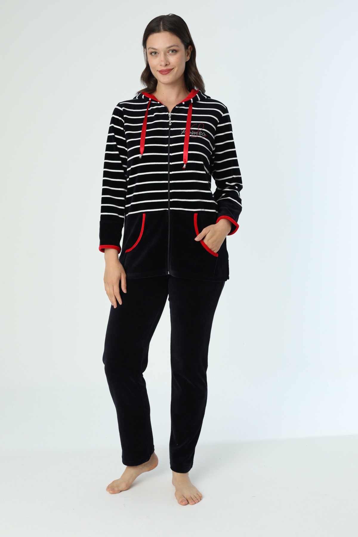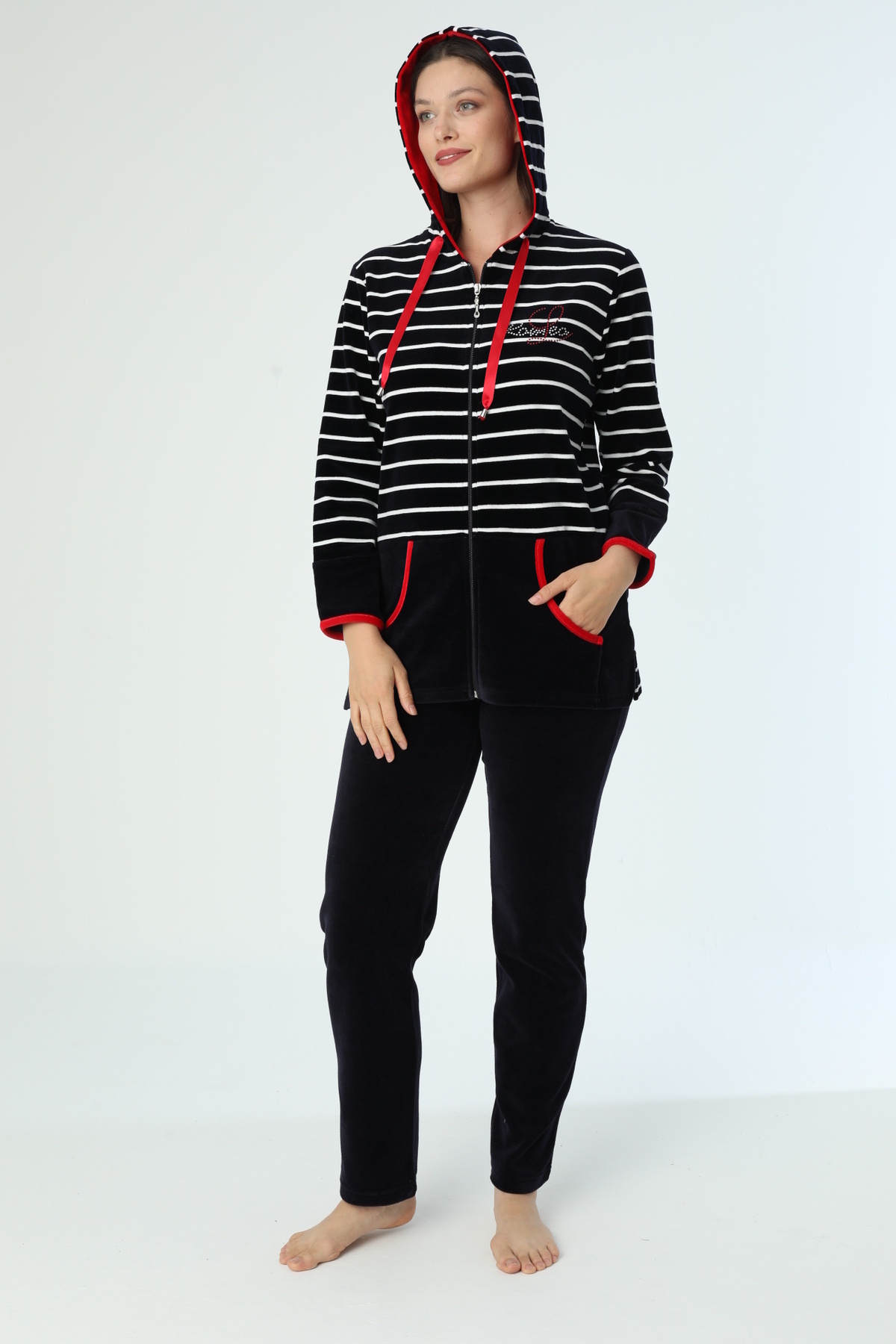 Kadın Büyük Beden Çizgili Pamuklu Kadife Eşofman Takımı 2008 Kadın Büyük Beden Çizgili Pamuklu Kadife Eşofman Takımı 2008 TYCD1FF2CC5F34E12CC9FA400 5XL