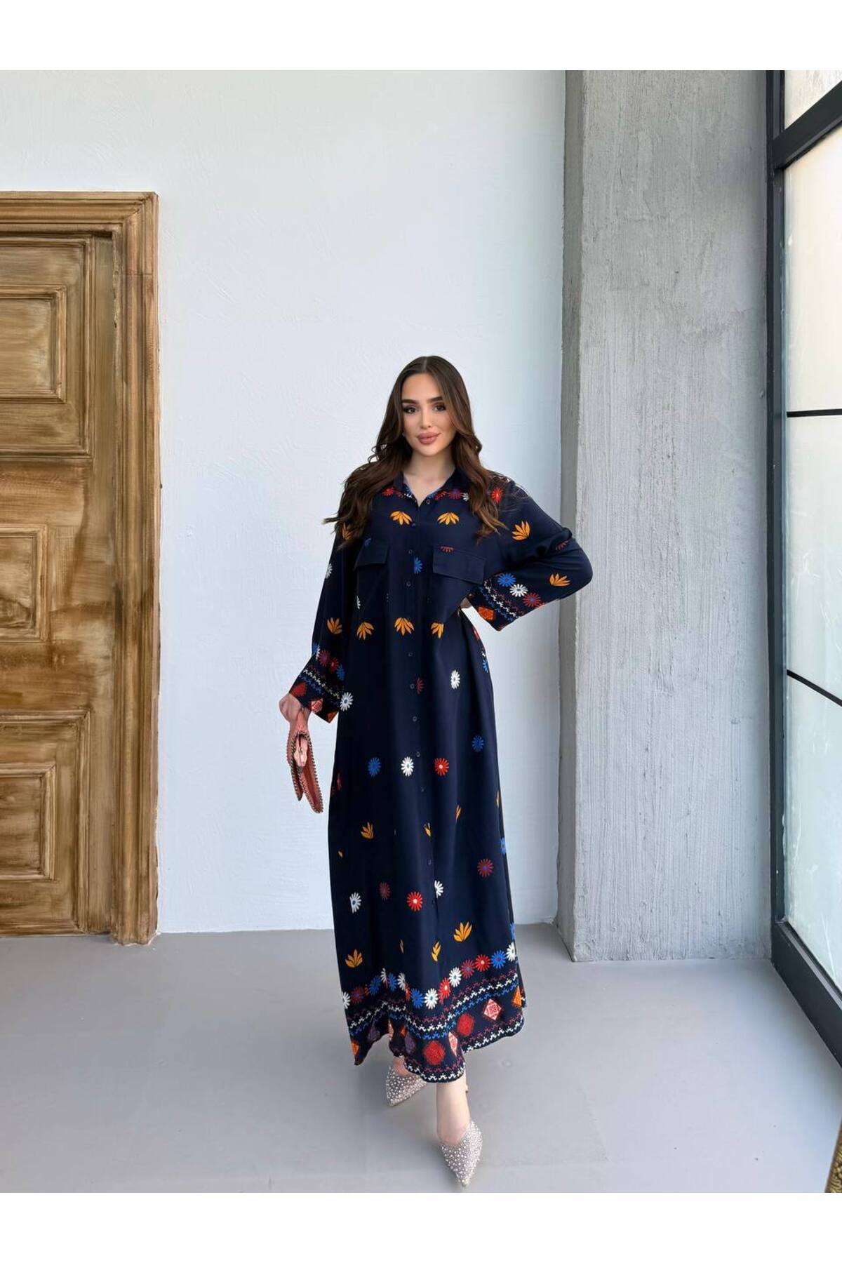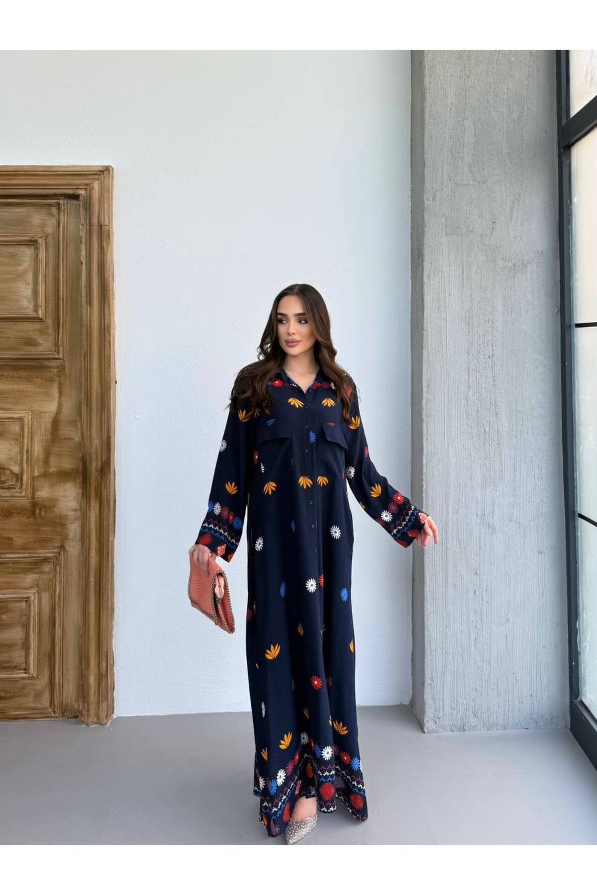 TESETTÜR ELİSSA DESEN LACİVERT DESENLİ GÖMLEK ELBİSE TESETTÜR ELİSSA DESEN LACİVERT DESENLİ GÖMLEK ELBİSE JAKARWEQ4323 Standart
