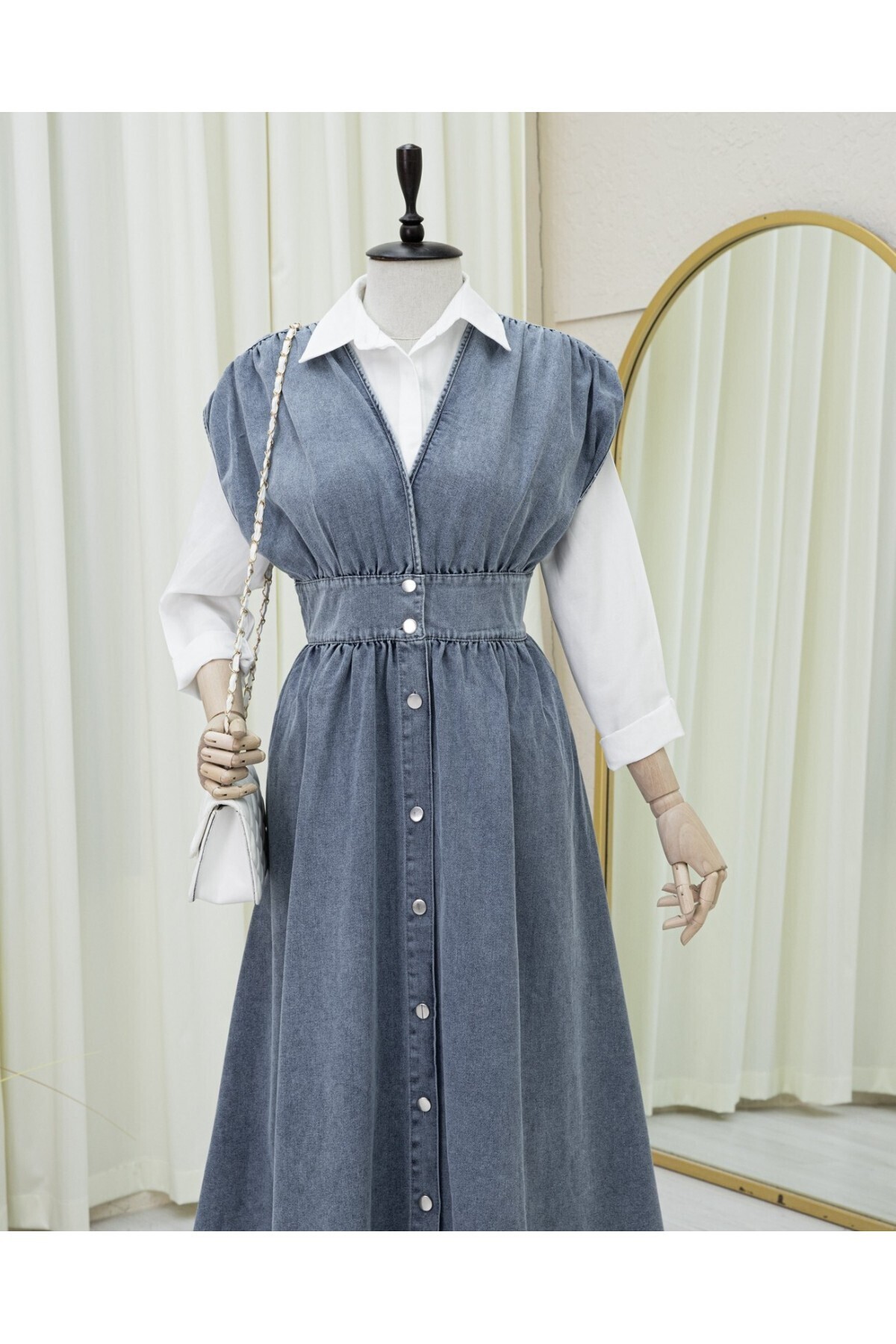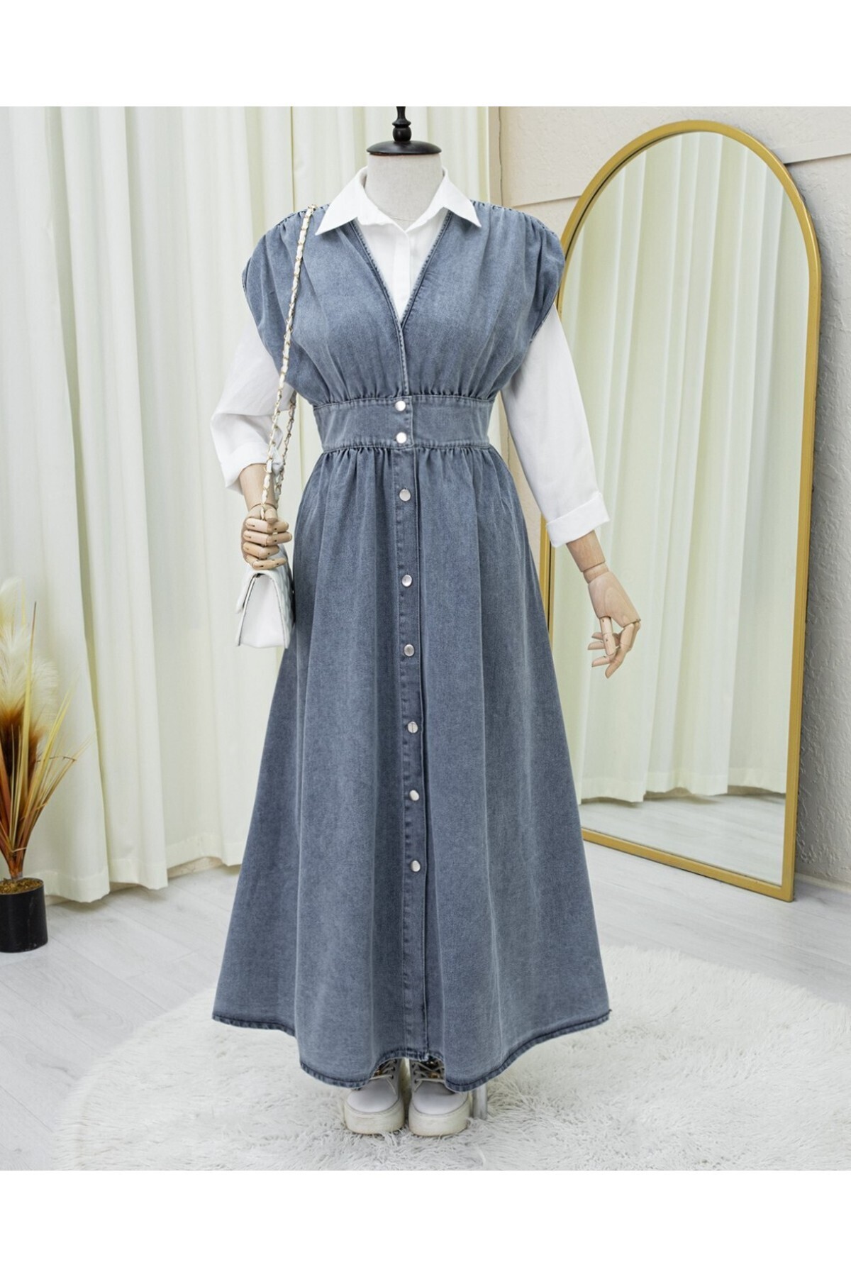 Boydan Düğmeli V Yaka Sıfır Kol Kot Jile -Buz Mavi Boydan Düğmeli V Yaka Sıfır Kol Kot Jile -Buz Mavi TY197-6129 48