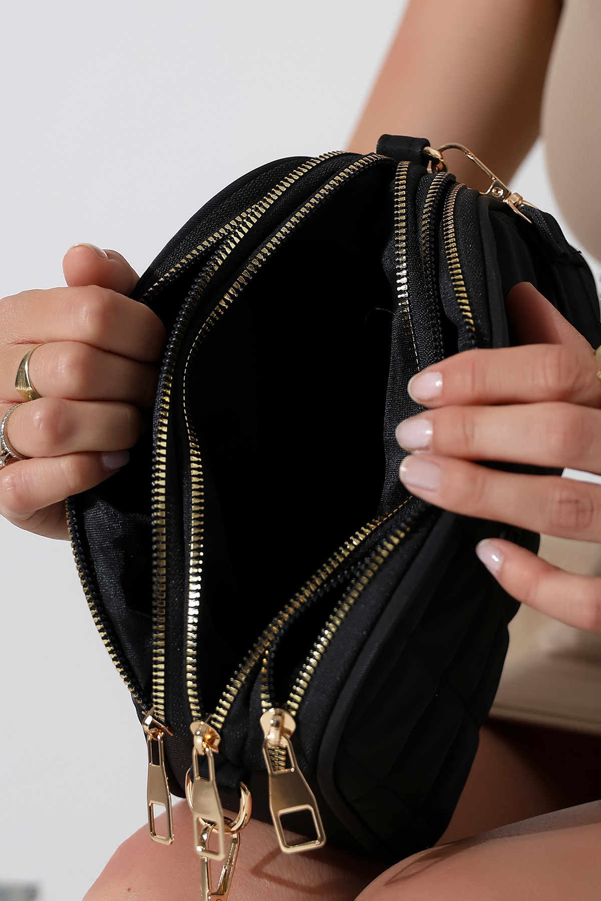 Siyah Kapıtone Desenli 3 Bölmeli Kadın Çanta Çapraz Askılı Omuz - Kol Ve El Çantası Siyah Kapıtone Desenli 3 Bölmeli Kadın Çanta Çapraz Askılı Omuz - Kol Ve El Çantası ENCLKAP-01ÇANTA Standart