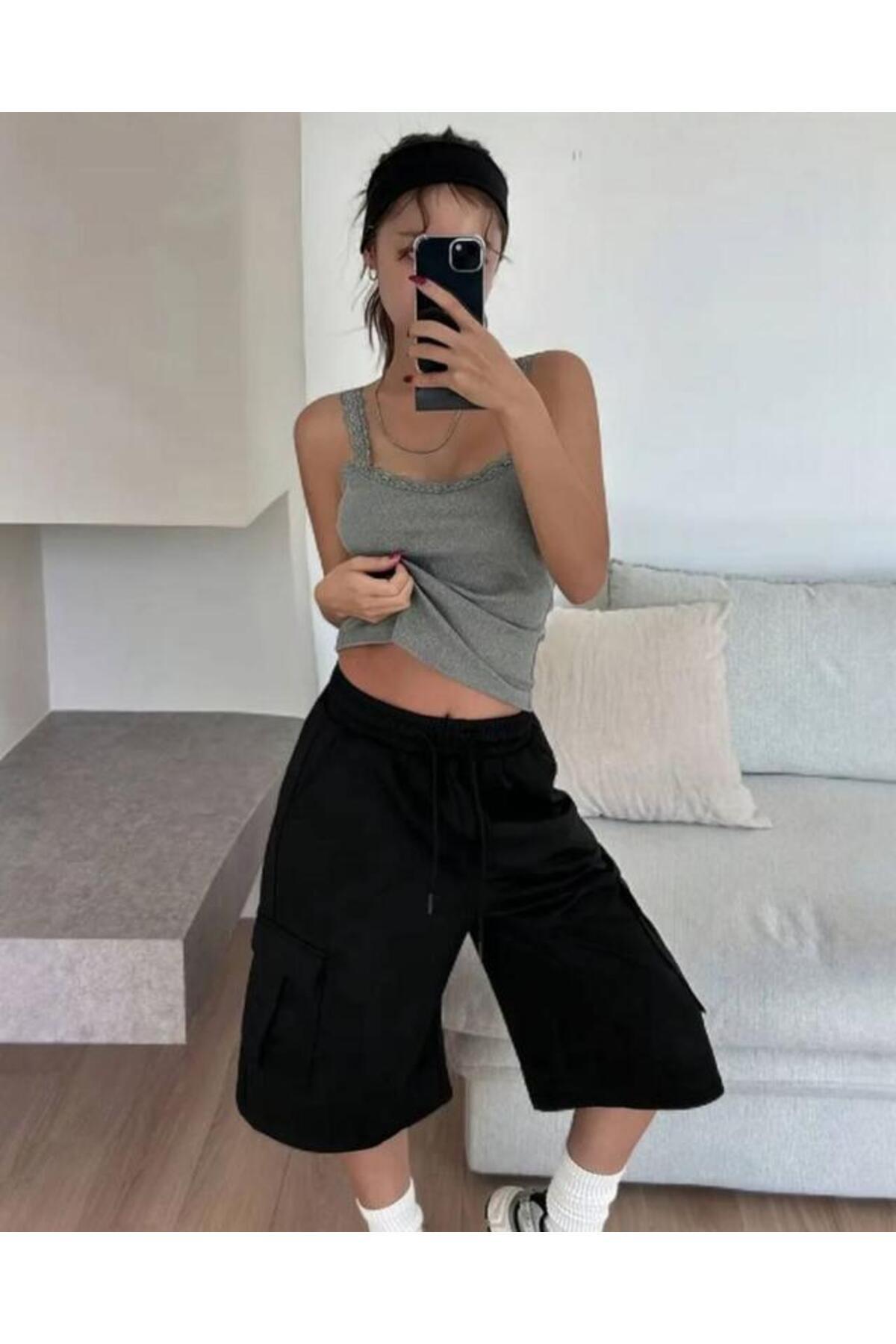 Y2K Unisex Kargo Cep Şort Bermuda Siyah Y2K Unisex Kargo Cep Şort Bermuda Siyah 2frkn XL