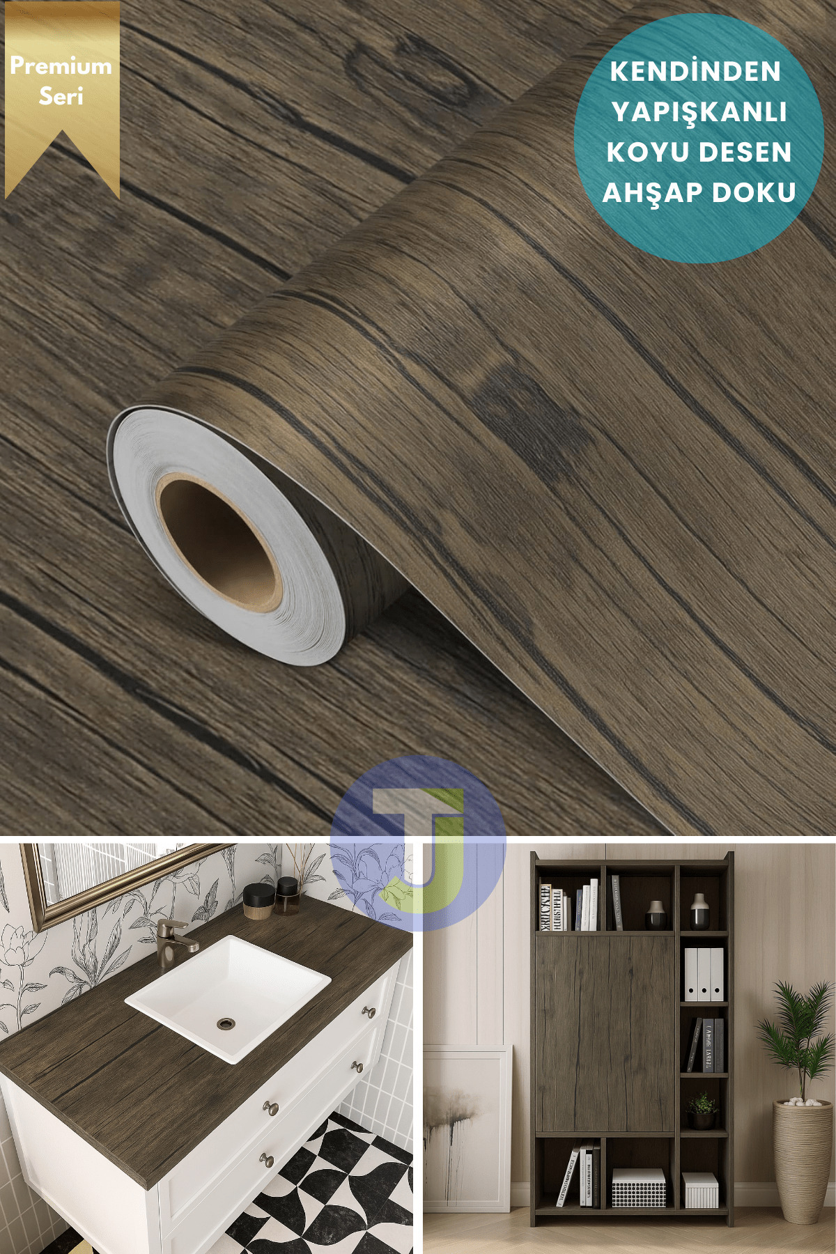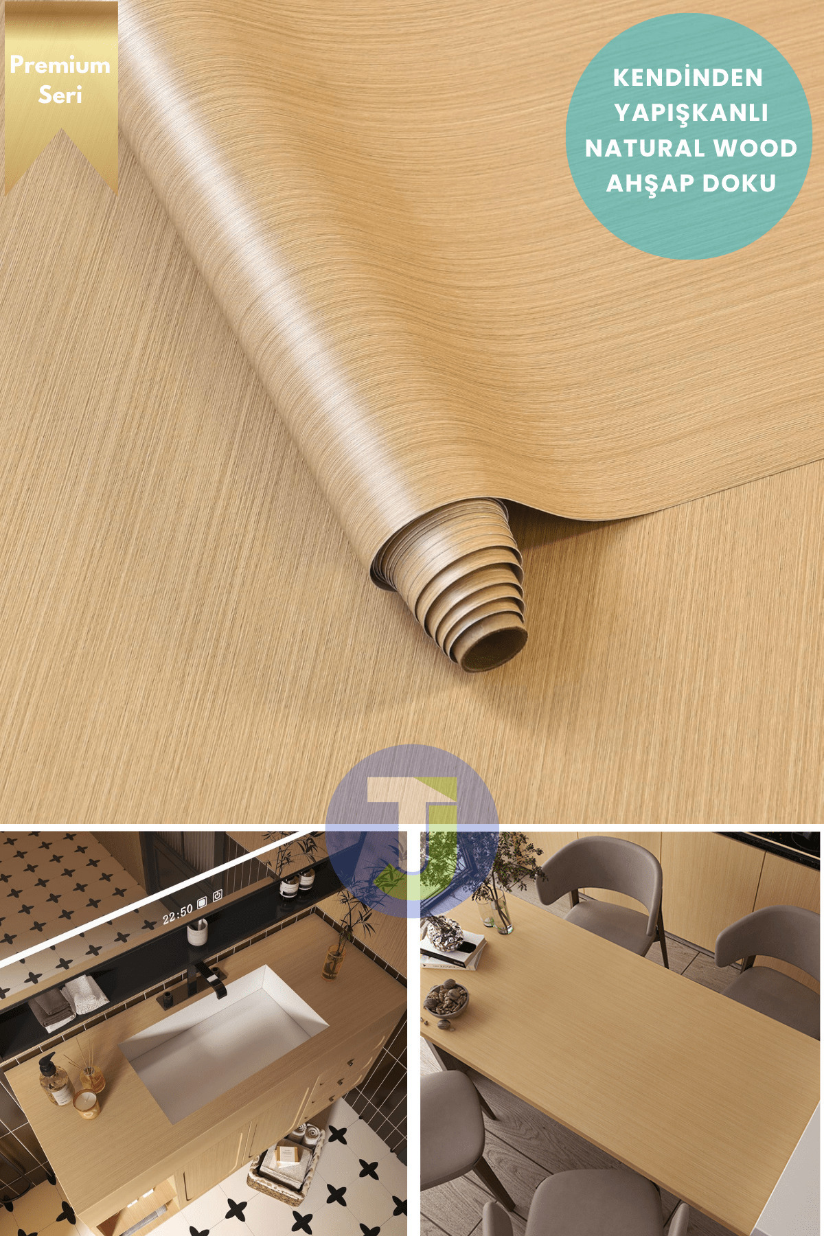 Premium Seri Kendinden Yapışkanlı Ahşap Desenli PVC Kaplama – 60cmx500cm TJ500AHSAP
