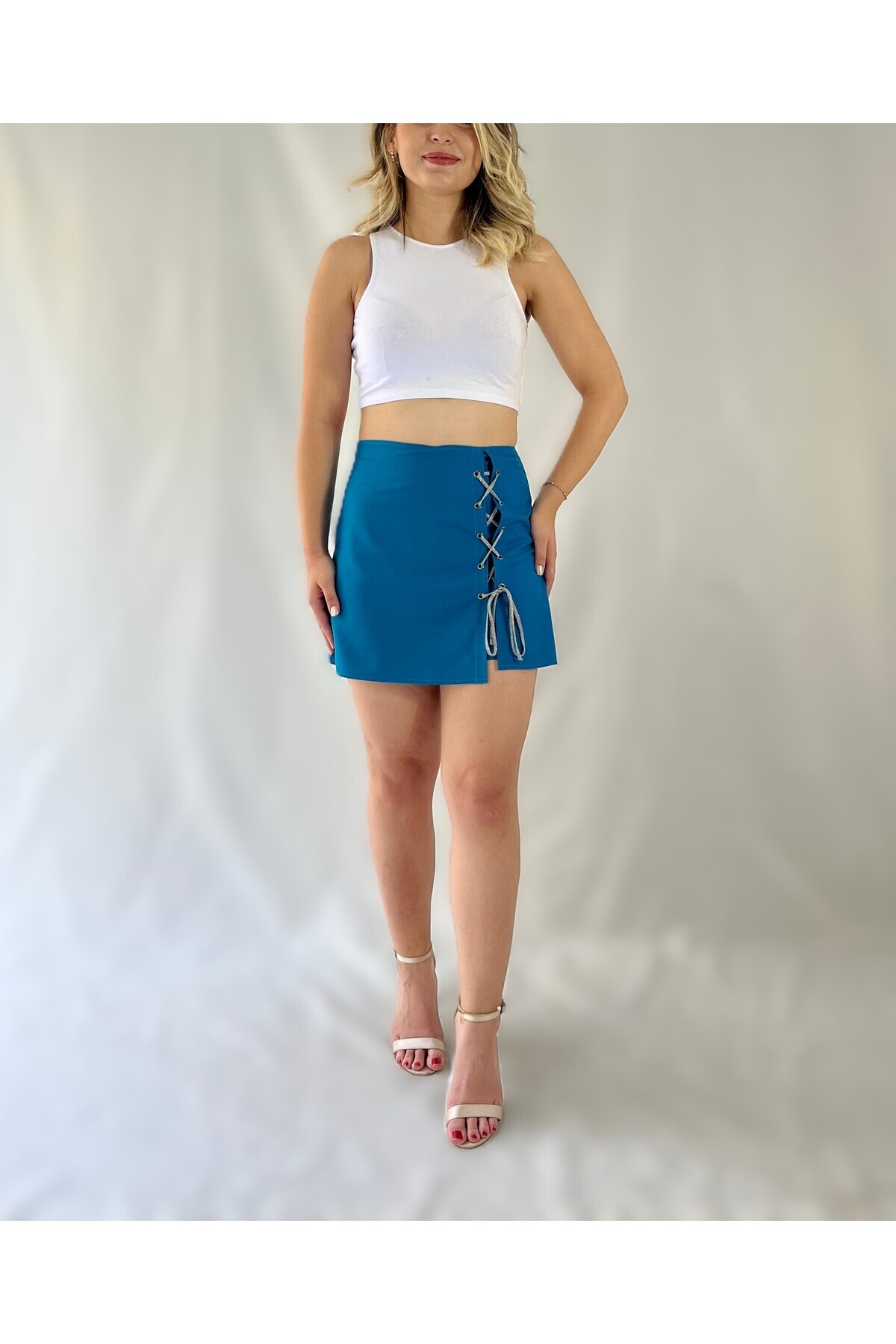 ARKASI ETEK GÖRÜNÜMLÜ BAĞCIKLI MAVİ DOKUMA ŞORT ETEK ARKASI ETEK GÖRÜNÜMLÜ BAĞCIKLI MAVİ DOKUMA ŞORT ETEK ARKASI2 2XL