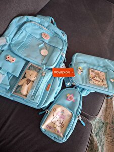 Kawaii Kore Tarzı Aksesuarlı 3'lü Set Çocuk İlkokul Çantası Kalemlikli Beslenme Çantalı Sırt Çantası Kawaii Kore Tarzı Aksesuarlı 3'lü Set Çocuk İlkokul Çantası Kalemlikli Beslenme Çantalı Sırt Çantası ROX3KAWAİİ تک سایز