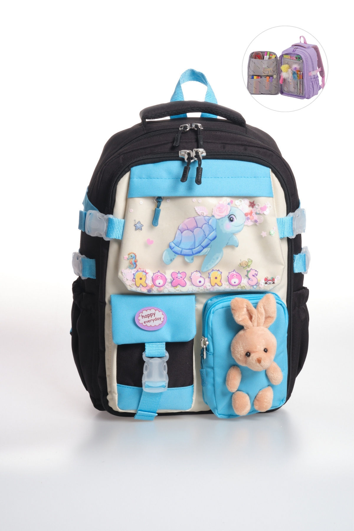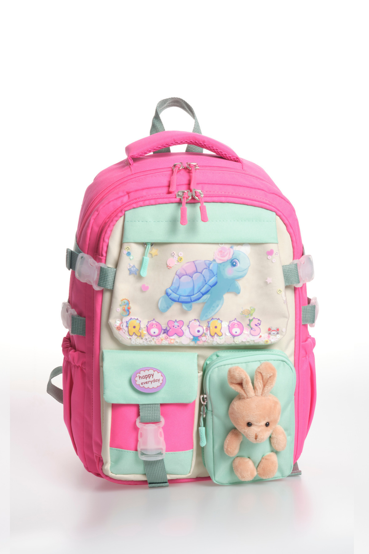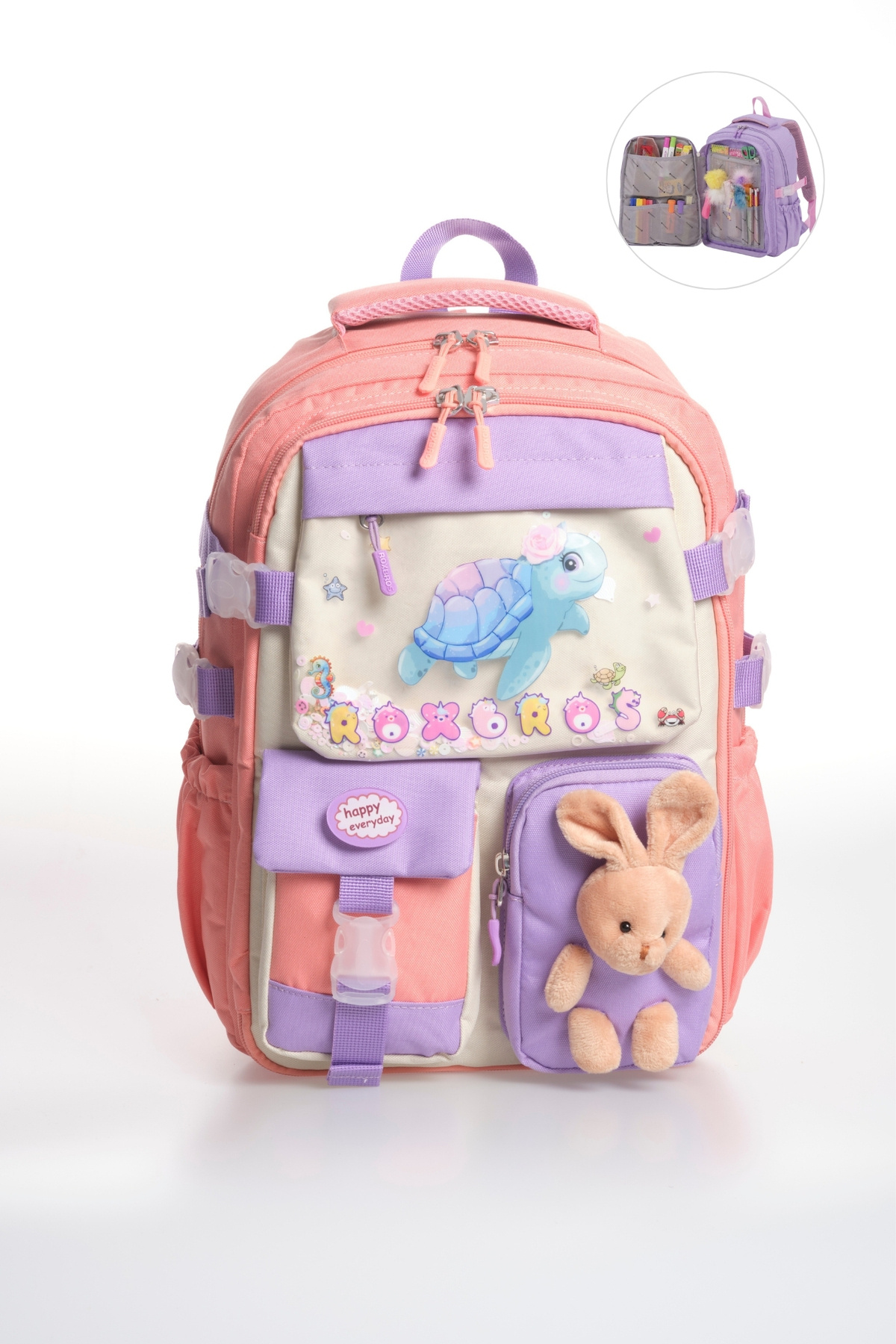 Sevimli Kaplumbağa Desenli Çok Bölmeli Kız Çocuk Okul Çantası - Ergonomik Ilkokul Sırt Çantası Sevimli Kaplumbağa Desenli Çok Bölmeli Kız Çocuk Okul Çantası - Ergonomik Ilkokul Sırt Çantası ROX180DERECEKAP تک سایز
