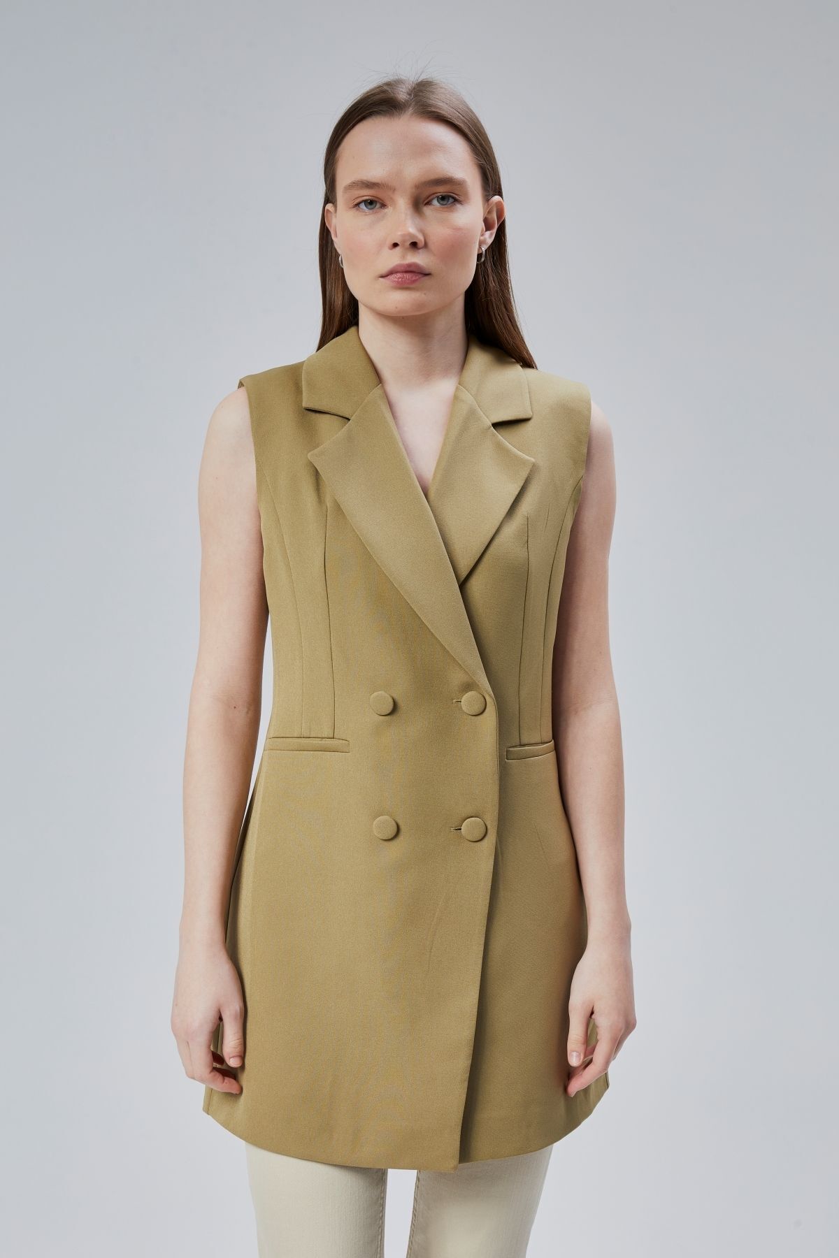 Oversize Fit Mono Yaka Kolsuz Düğmeli Ceket Yelek YELEK 6521177 Oversize Fit Mono Yaka Kolsuz Düğmeli Ceket Yelek YELEK 6521177 XL