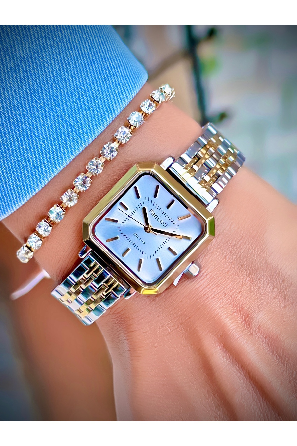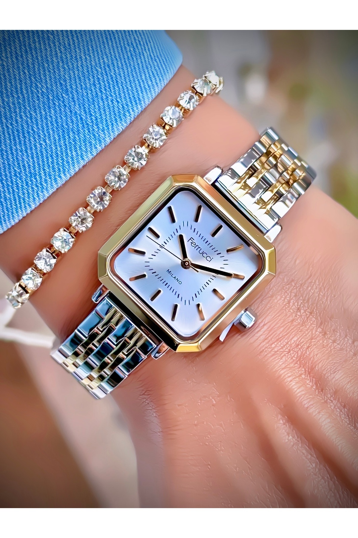 Kadın Kol Saati Çelik Kordon 3 Atm Suya Dayanıklı Bileklik Hediyeli Tasarım Kare Saat Kadın Kol Saati Çelik Kordon 3 Atm Suya Dayanıklı Bileklik Hediyeli Tasarım Kare Saat FERRUCCI2025-HZ-02 تک سایز