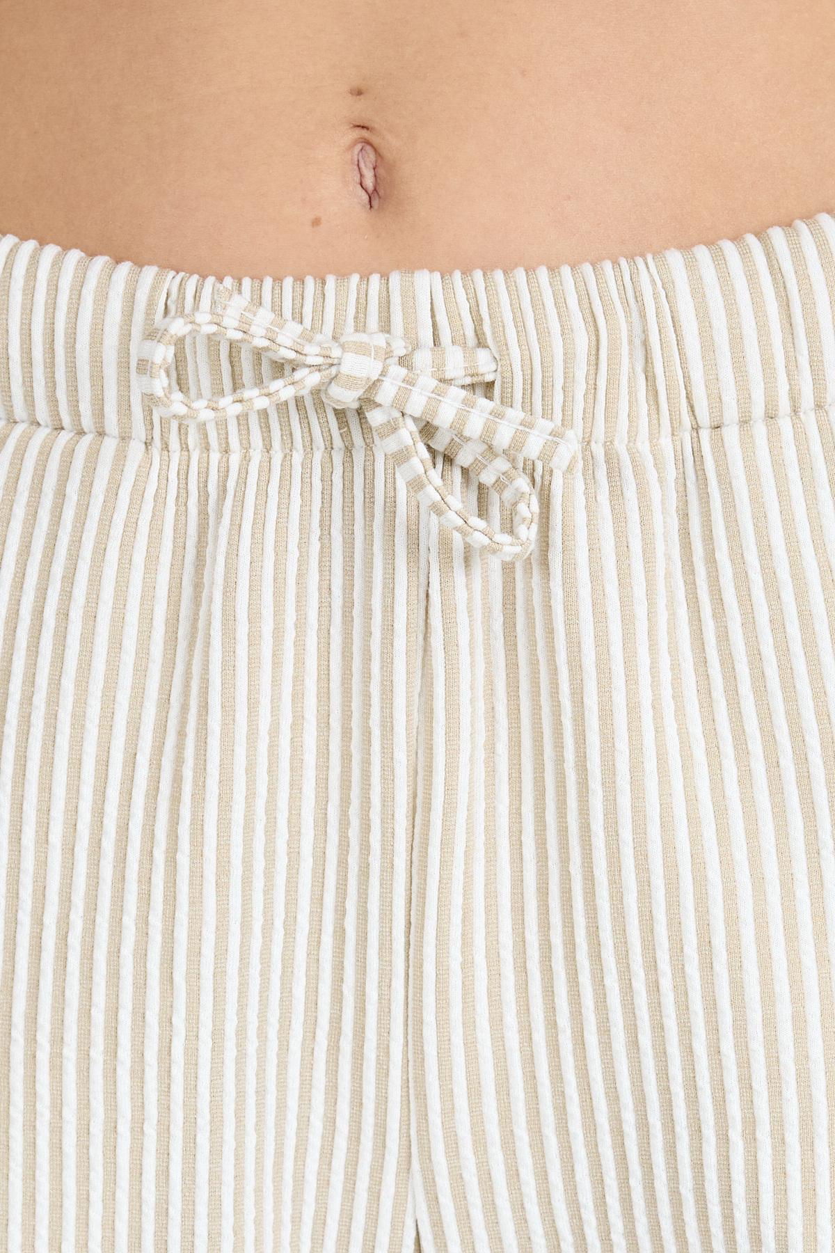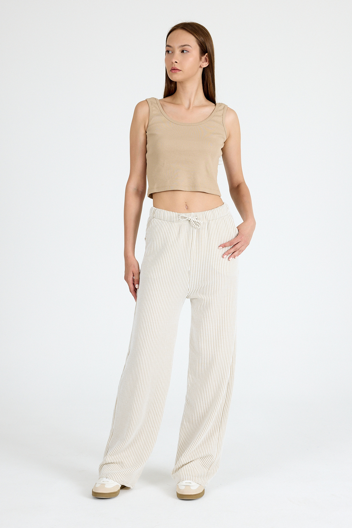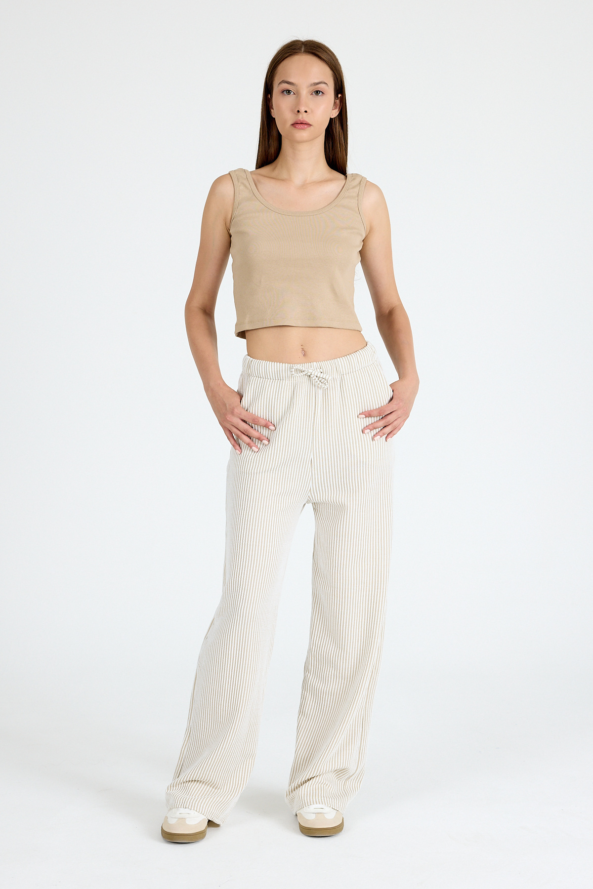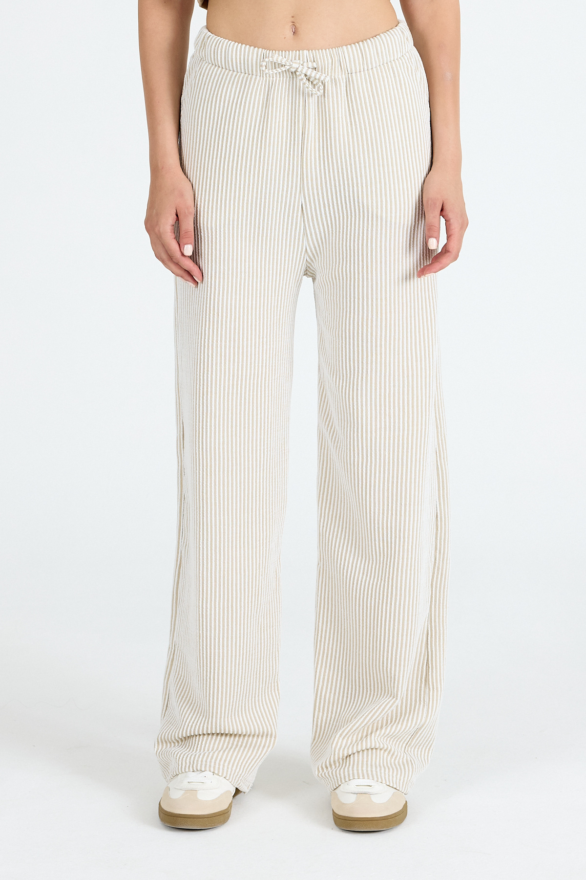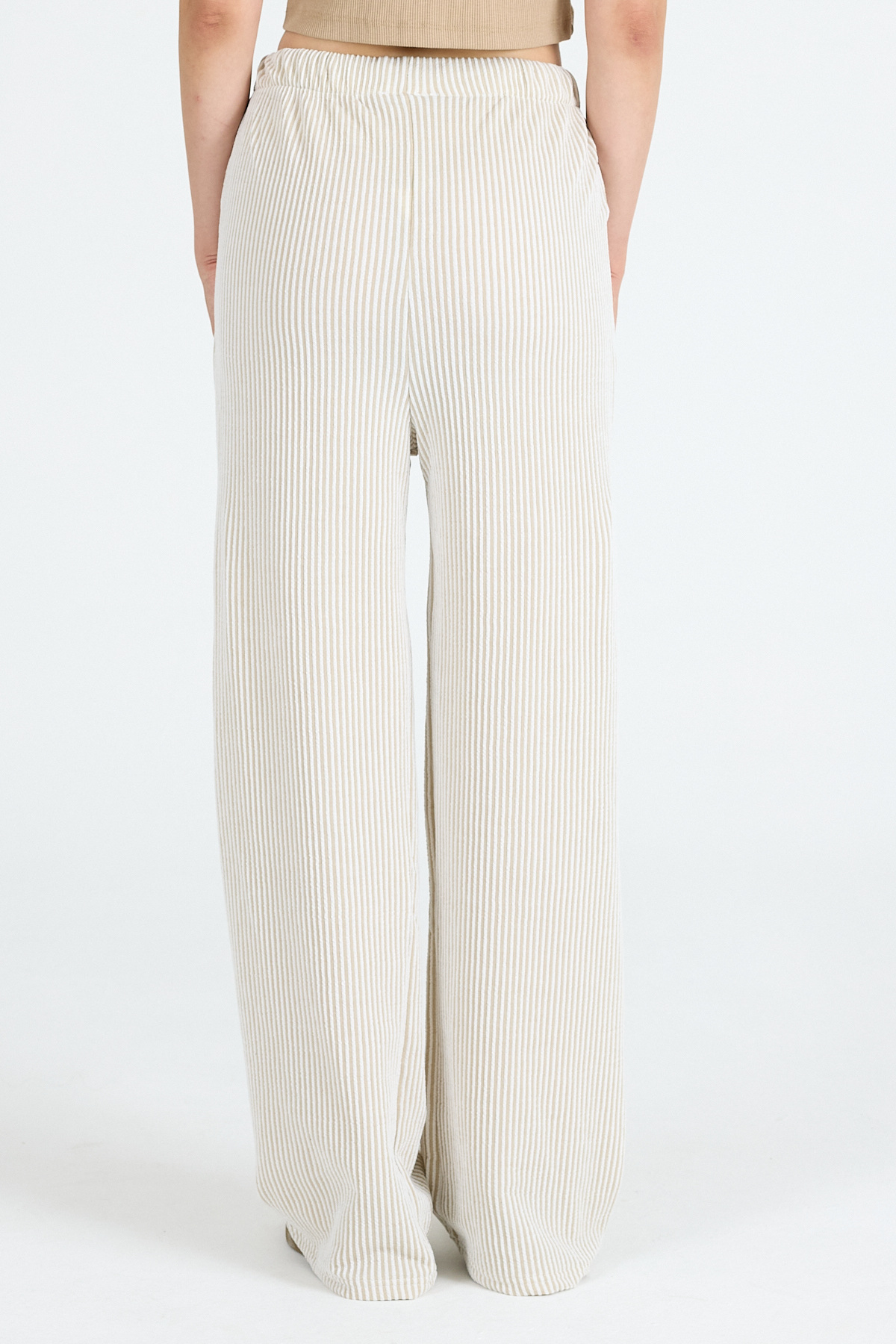 Bej Beli Lastikli Çizgili Geniş Paça Dokuma Pantolon 4098 Bej Beli Lastikli Çizgili Geniş Paça Dokuma Pantolon 4098 25Y1022133004 XL