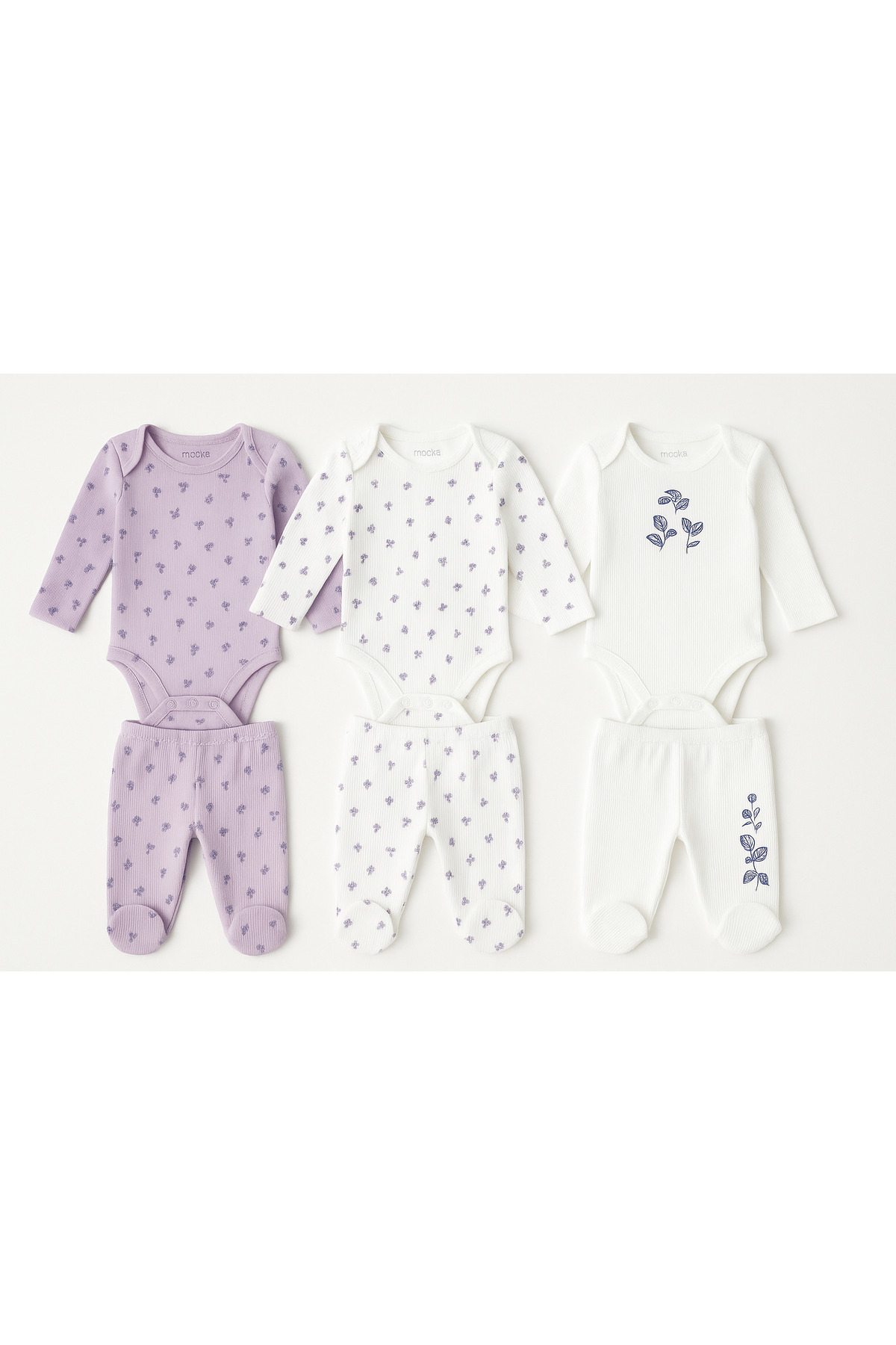 Kız Bebek %100 Pamuk Tavşan Baskılı Çıtçıtlı Body Ve Patikli Alt 6'lı Takım Yenidoğan Hediyelik Kız Bebek %100 Pamuk Tavşan Baskılı Çıtçıtlı Body Ve Patikli Alt 6'lı Takım Yenidoğan Hediyelik NT001 3-6 AY