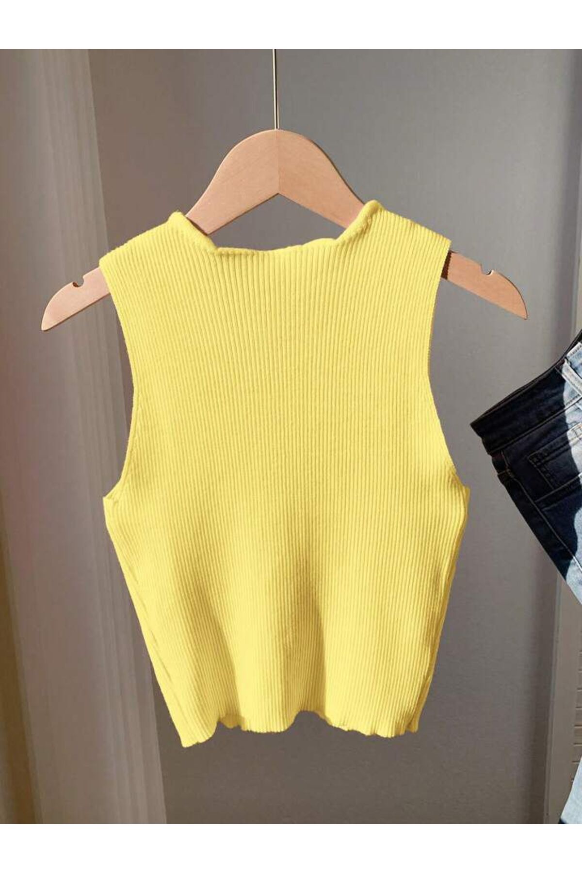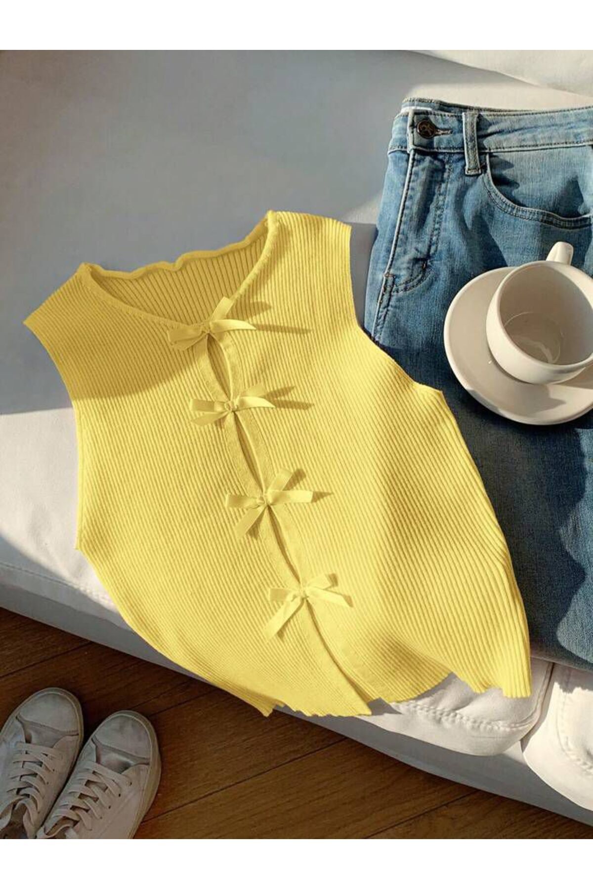 Sarı Kadın Kurdela Detaylı Triko yelek Sarı Kadın Kurdela Detaylı Triko yelek T01 تک سایز
