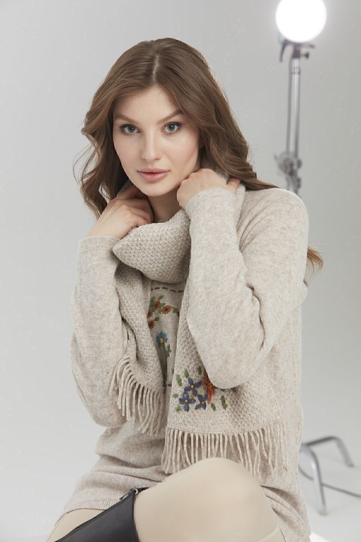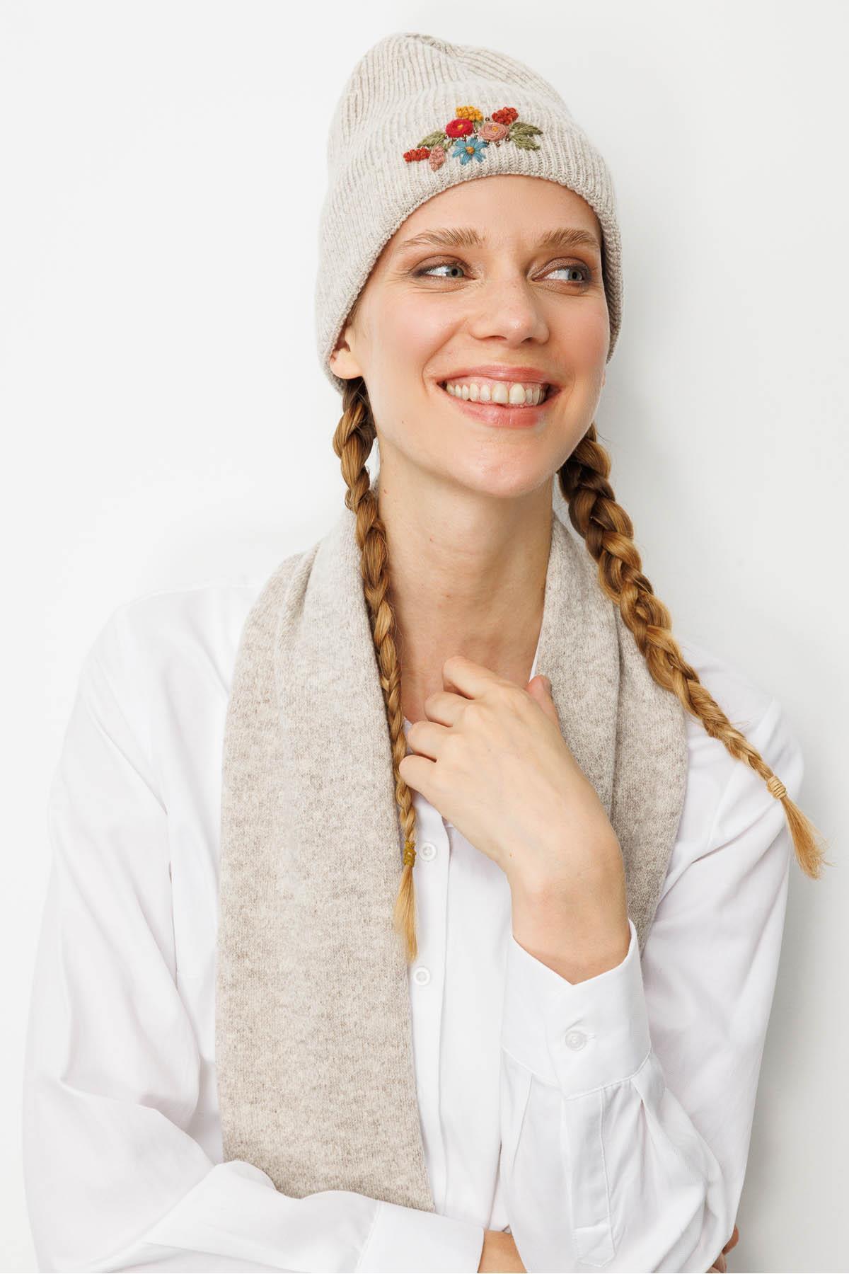 Kadın Tek Yanı Rokoko Nakış İşlemeli Yün Kaşkol V.Bej Kadın Tek Yanı Rokoko Nakış İşlemeli Yün Kaşkol V.Bej 25071 Standart