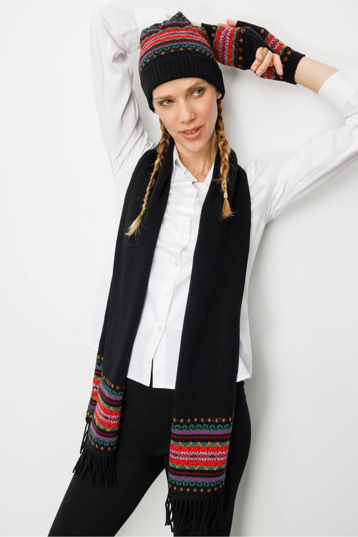 Kadın Kenarları Jakarlı Püsküllü Yün Kaşkol Kemik Kadın Kenarları Jakarlı Püsküllü Yün Kaşkol Kemik 25075 Tek Ebat