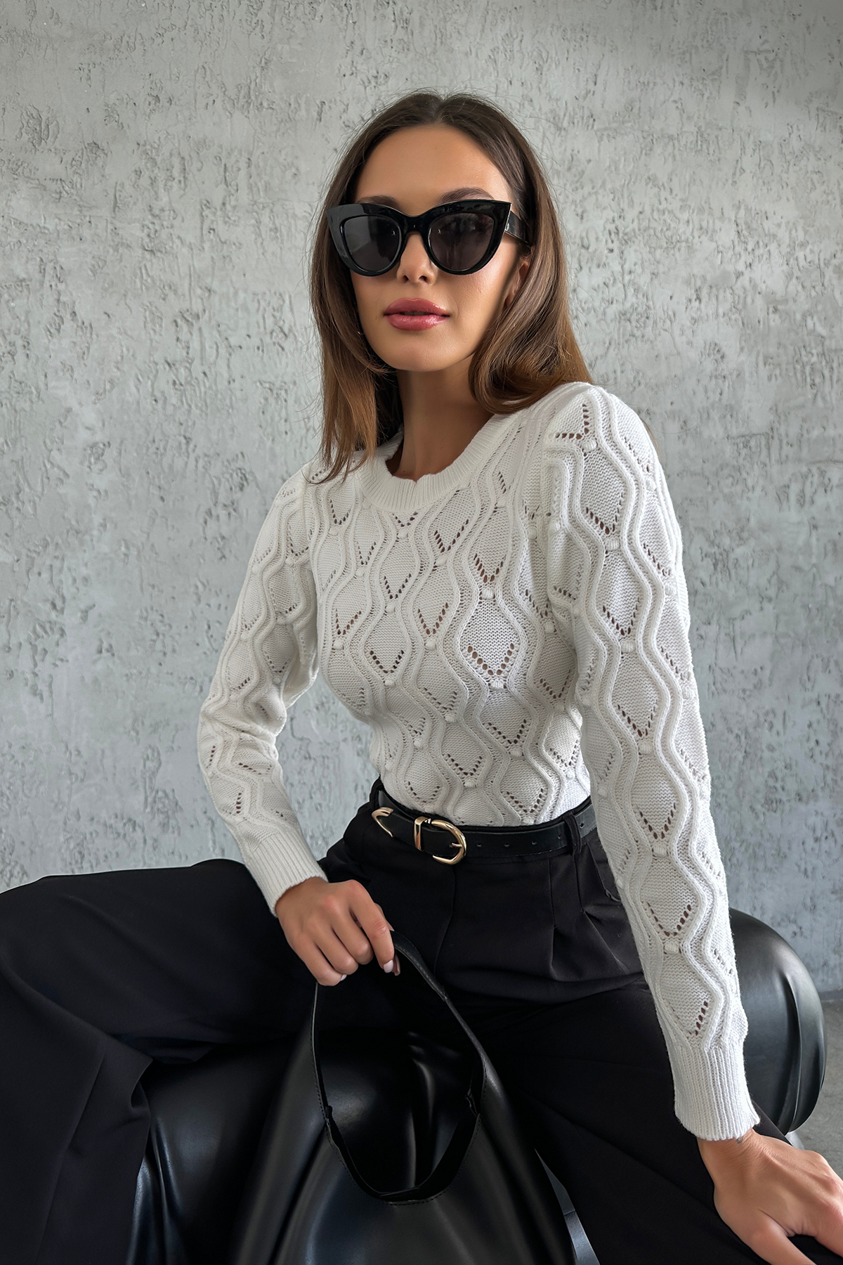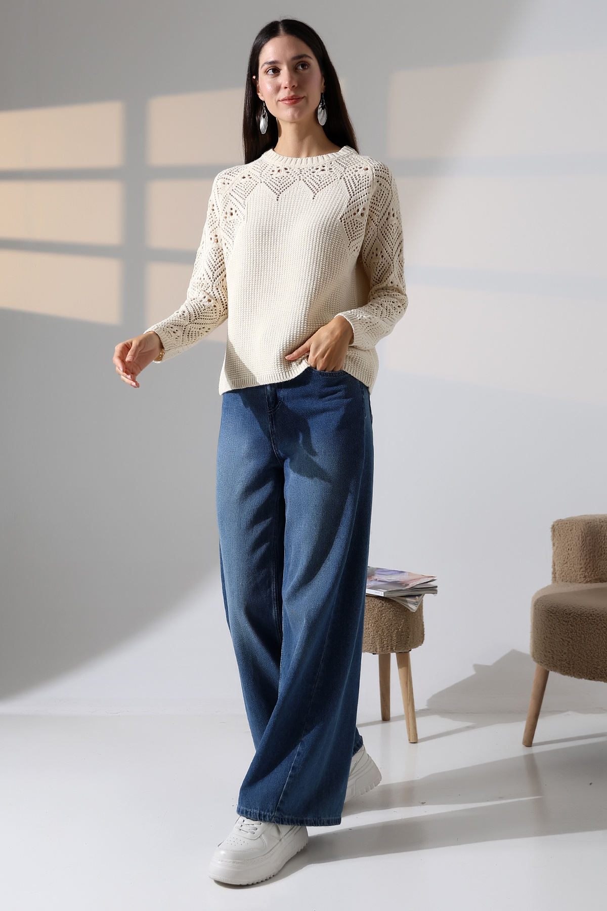 Kayık Geniş Dalgalı Yaka Uzun Kollu Ajurlu Delikli Yürütmeli Çiçek Desenli Baharlık Triko Kazak Kayık Geniş Dalgalı Yaka Uzun Kollu Ajurlu Delikli Yürütmeli Çiçek Desenli Baharlık Triko Kazak ALCH-00152 Standart