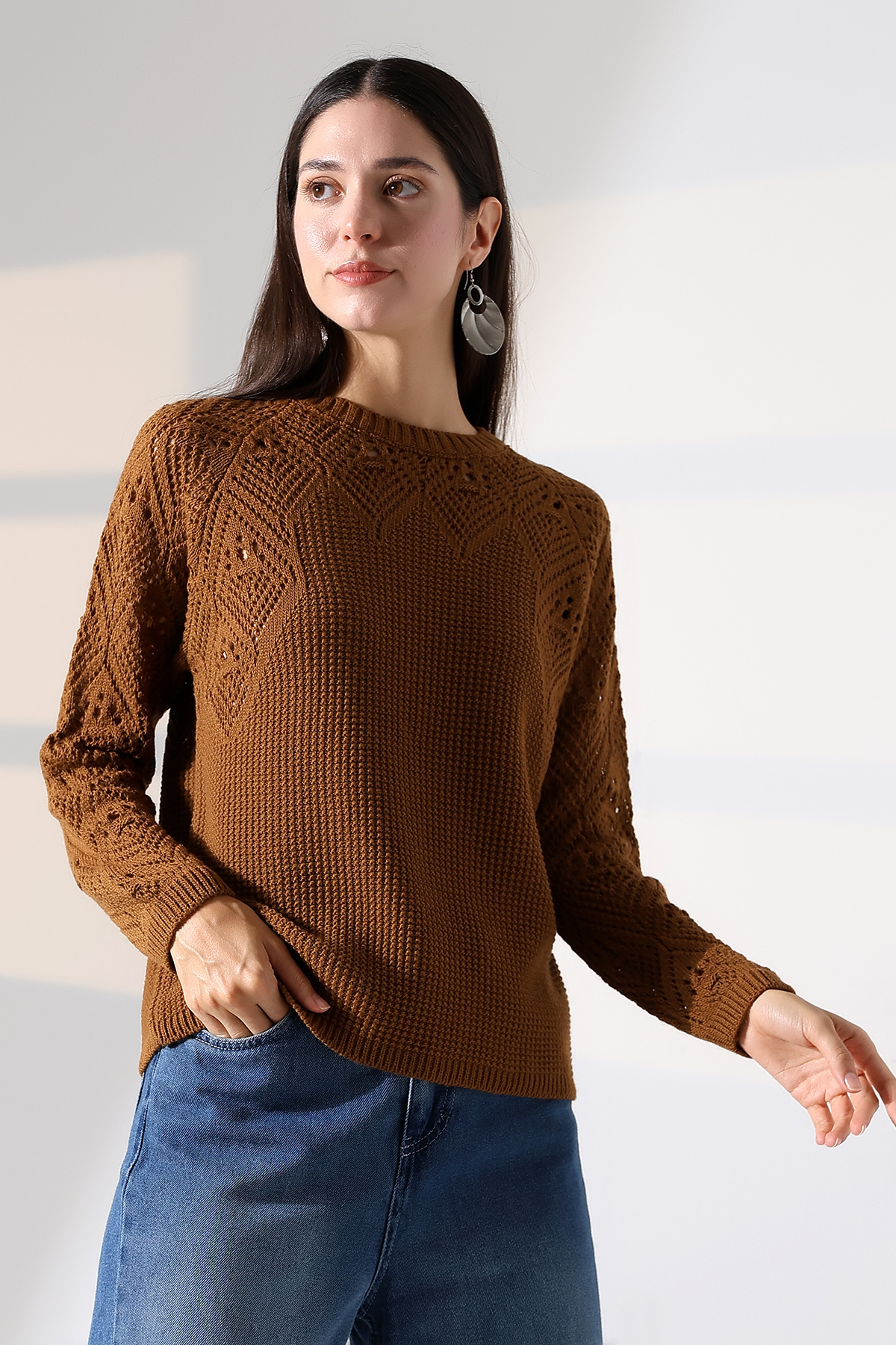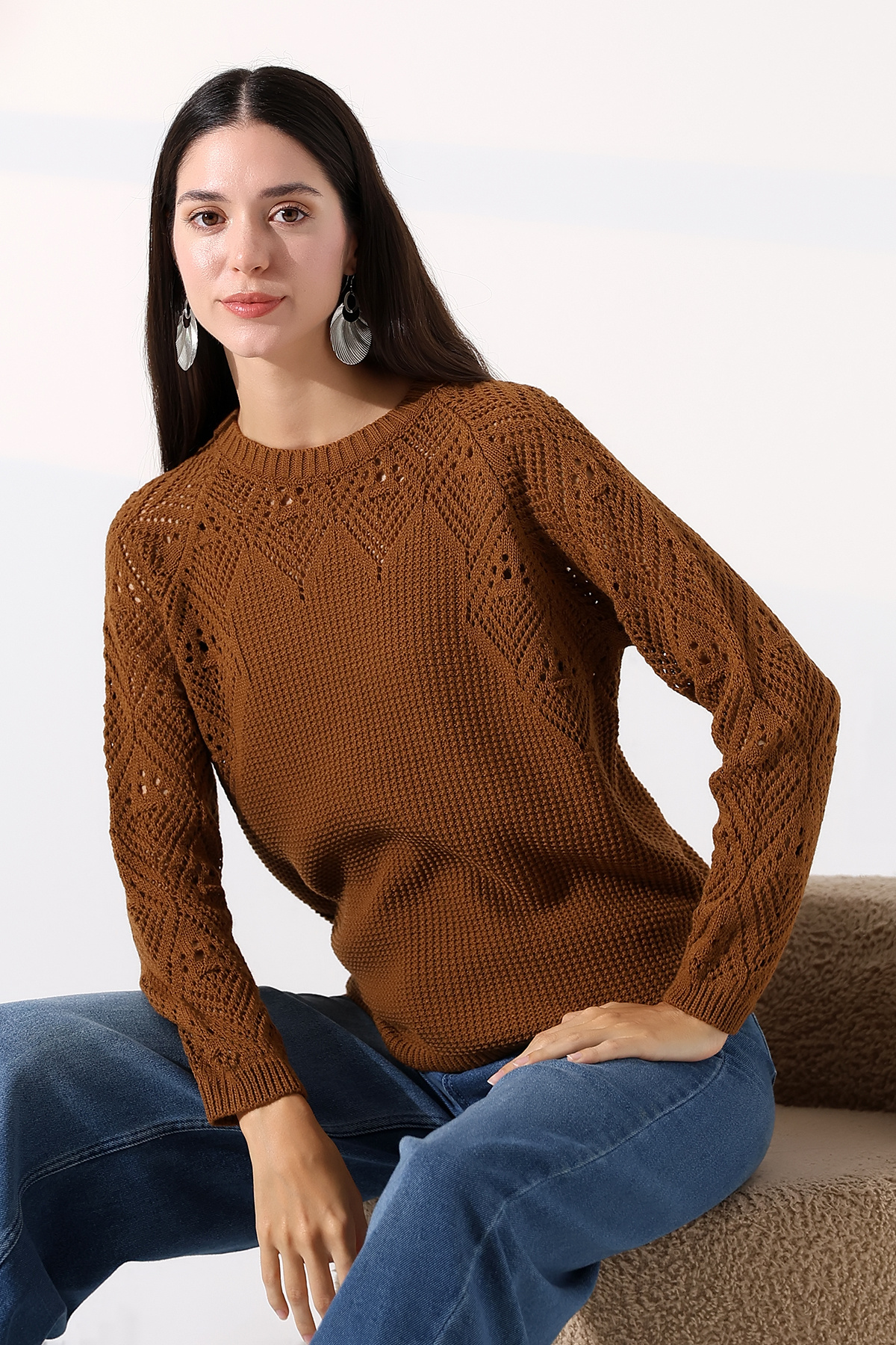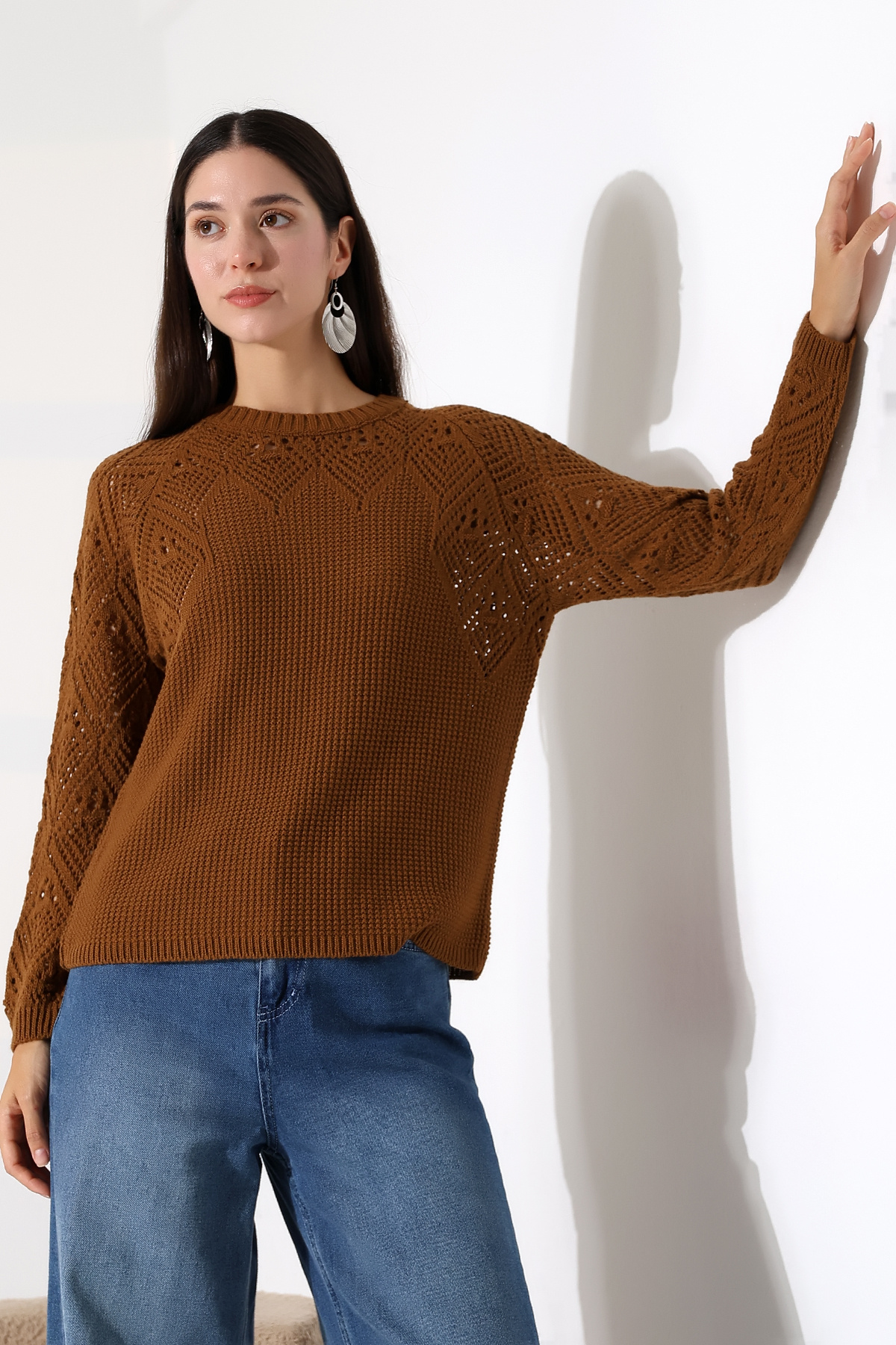 Yuvarlak Bisiklet Yaka Uzun Kollu Ajurlu Delikli Pirinç Örgü Sade Zarif Basic Triko Kazak Yuvarlak Bisiklet Yaka Uzun Kollu Ajurlu Delikli Pirinç Örgü Sade Zarif Basic Triko Kazak ALCH-00153 Standart