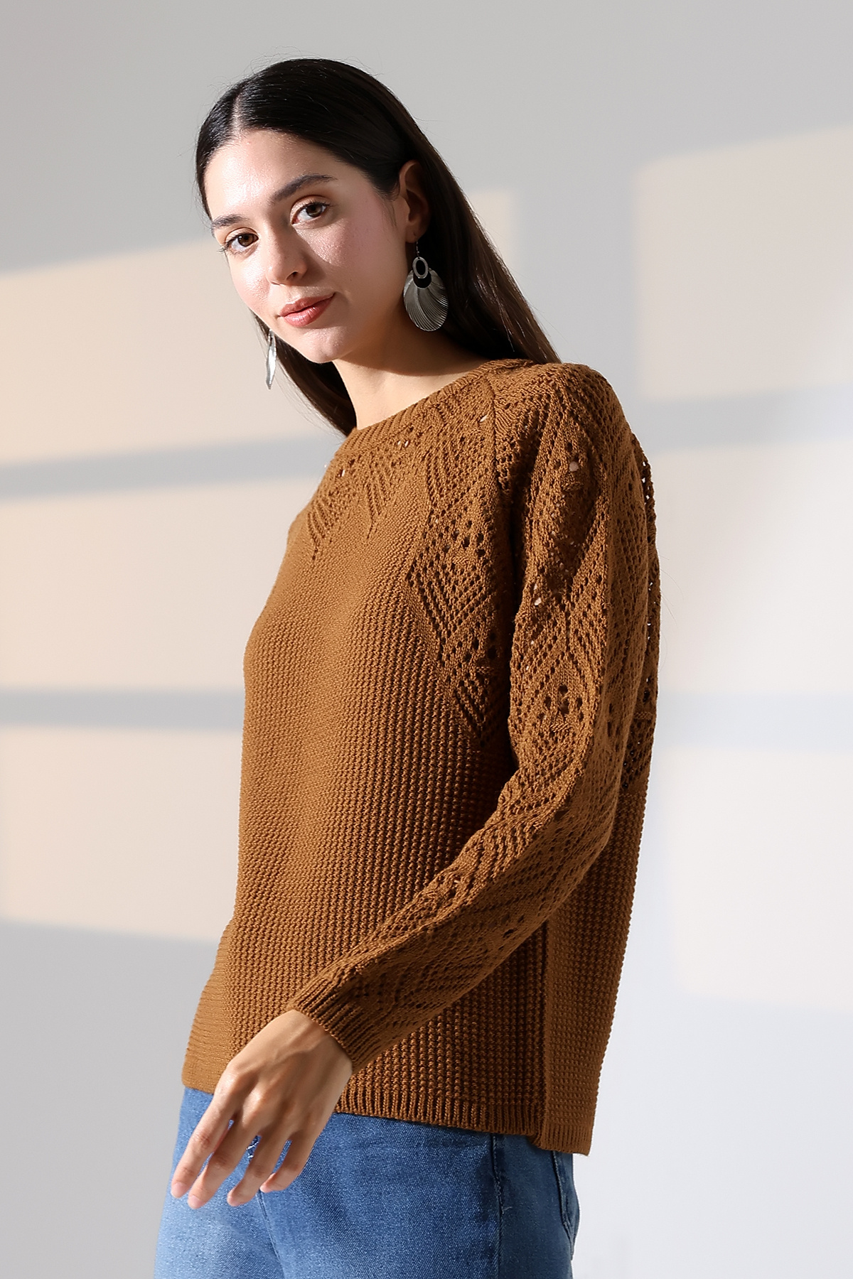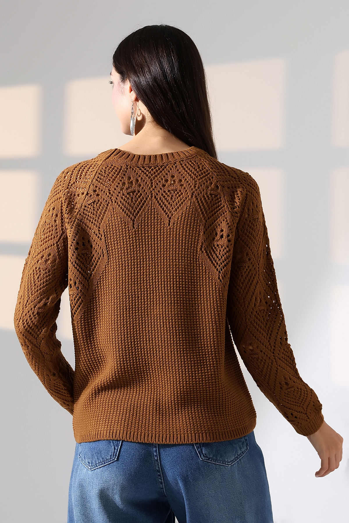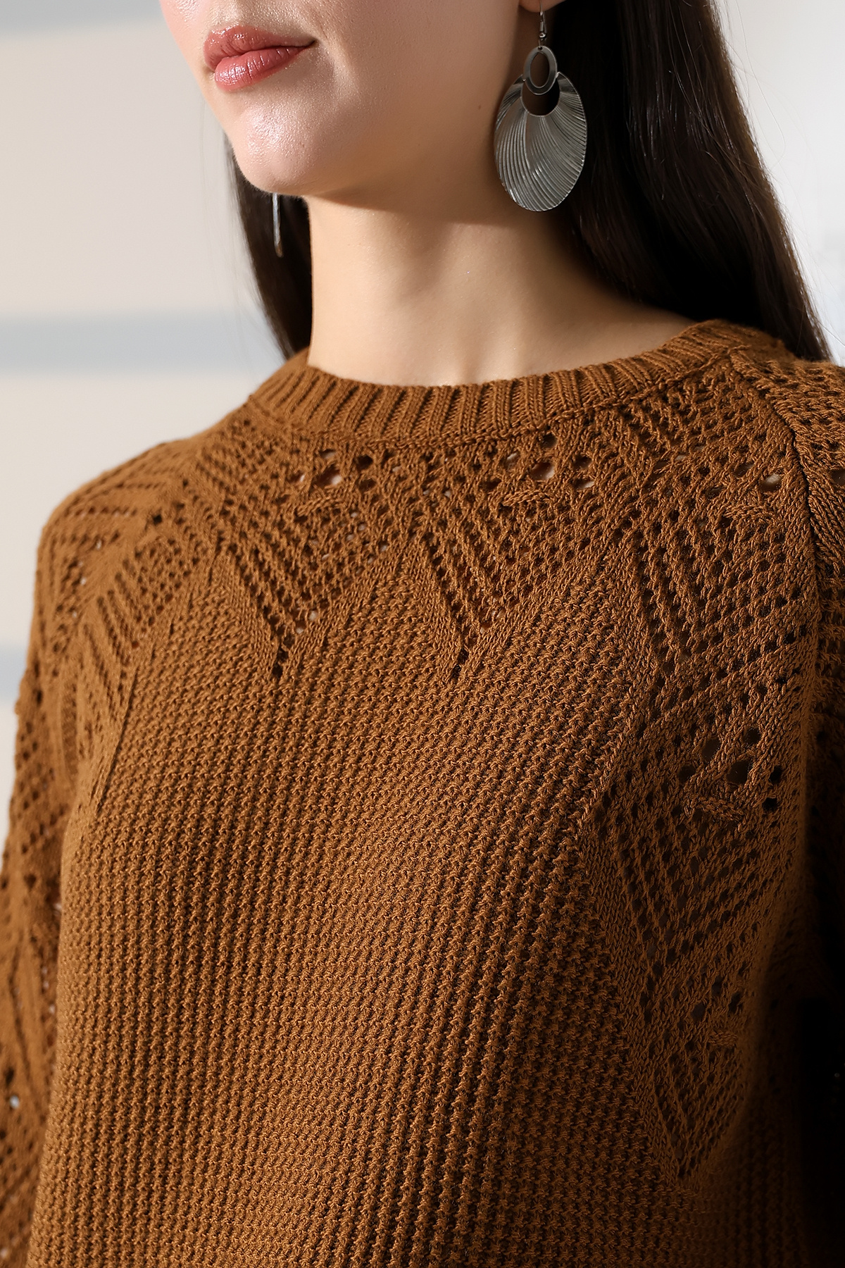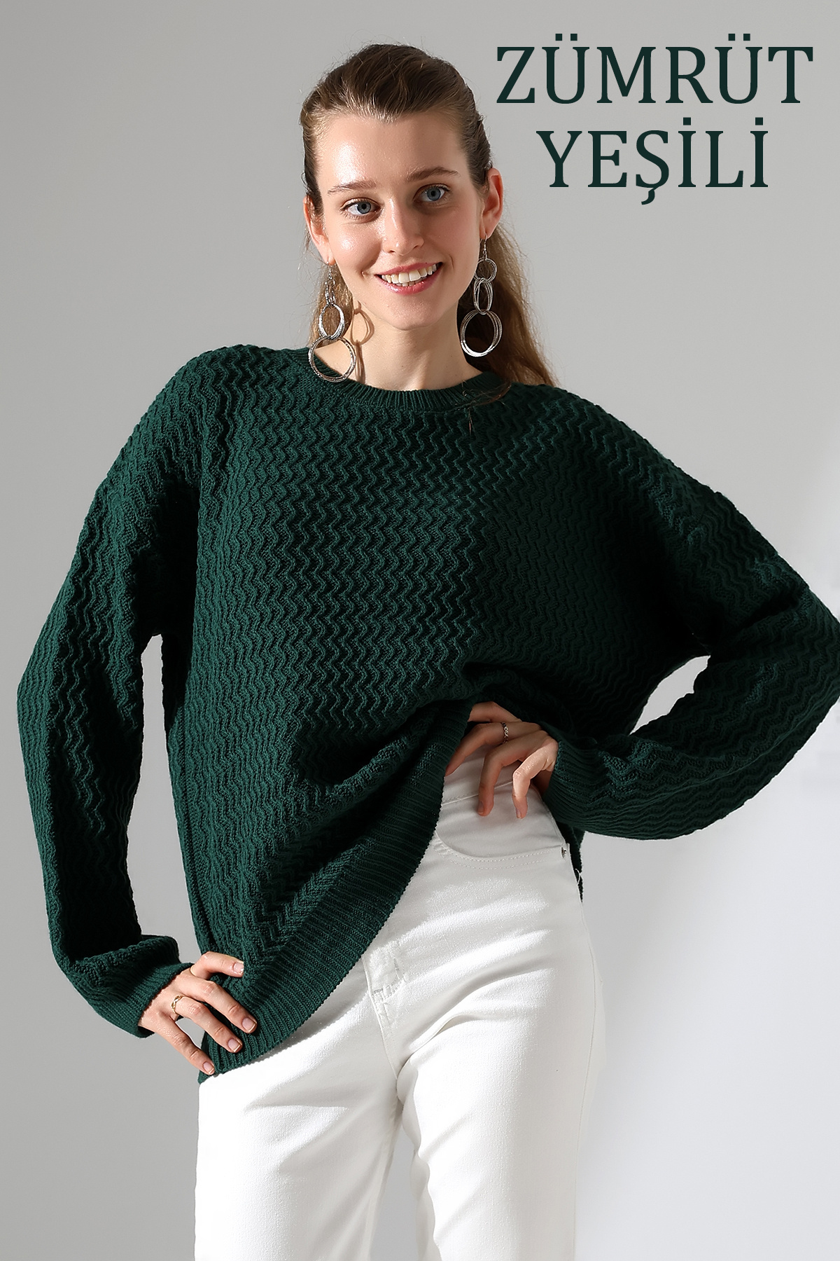 Yuvarlak Bisiklet Yaka Uzun Kollu Ajurlu Delikli Pirinç Örgü Sade Zarif Basic Triko Kazak Yuvarlak Bisiklet Yaka Uzun Kollu Ajurlu Delikli Pirinç Örgü Sade Zarif Basic Triko Kazak ALCH-00153 Standart