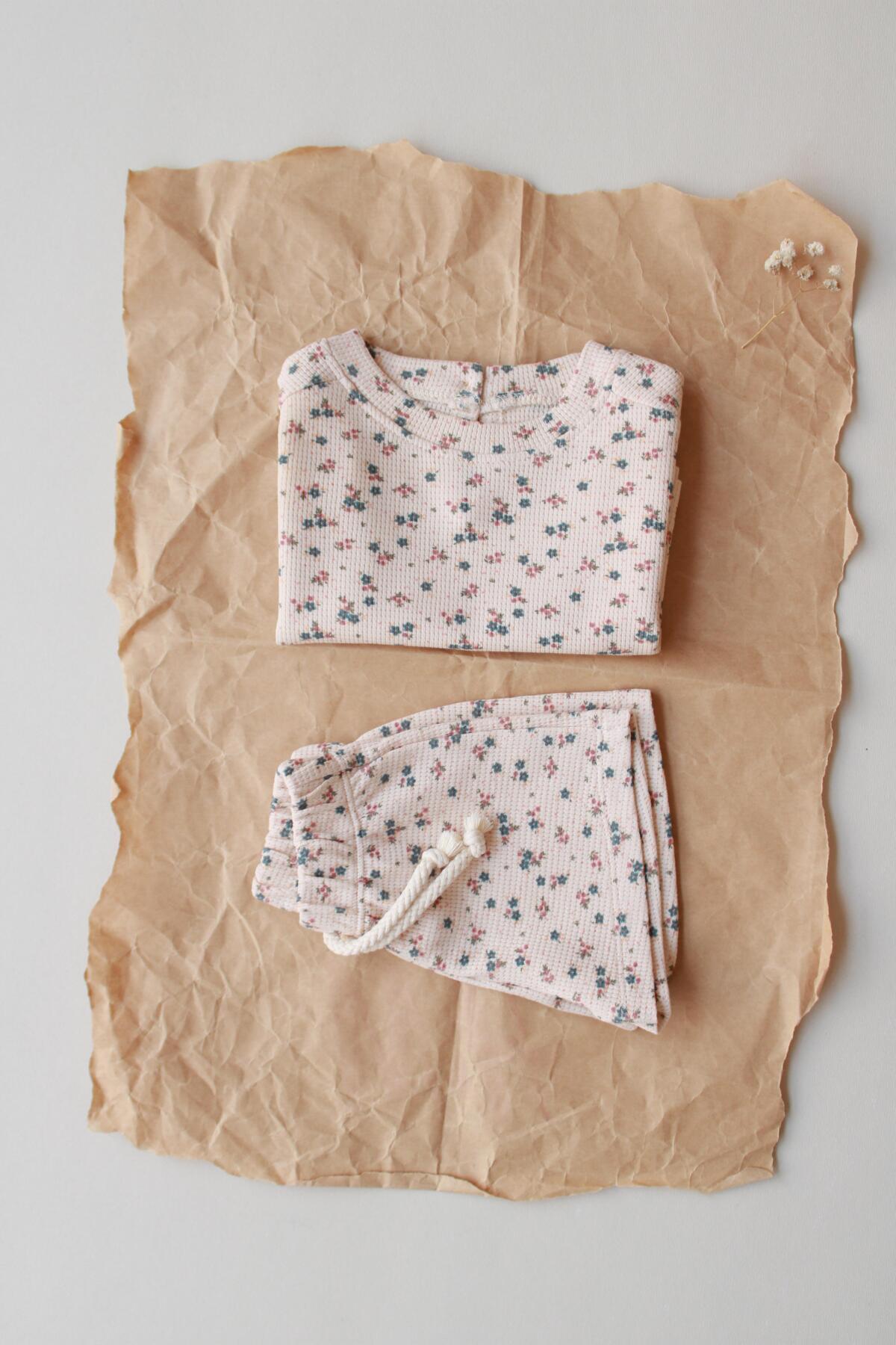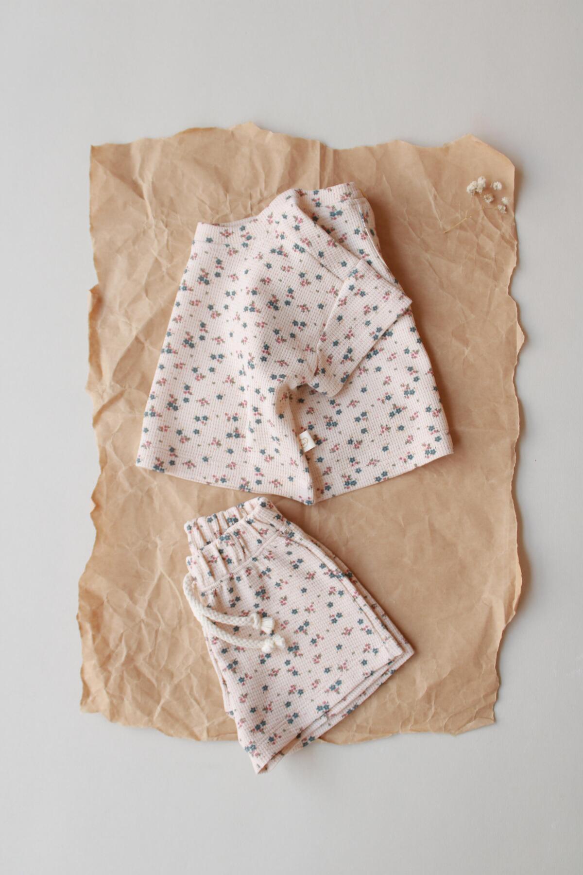 Renkli Çiçek Baskılı Waffle Şort Takım Renkli Çiçek Baskılı Waffle Şort Takım TX331D0953810 2-3 Yaş