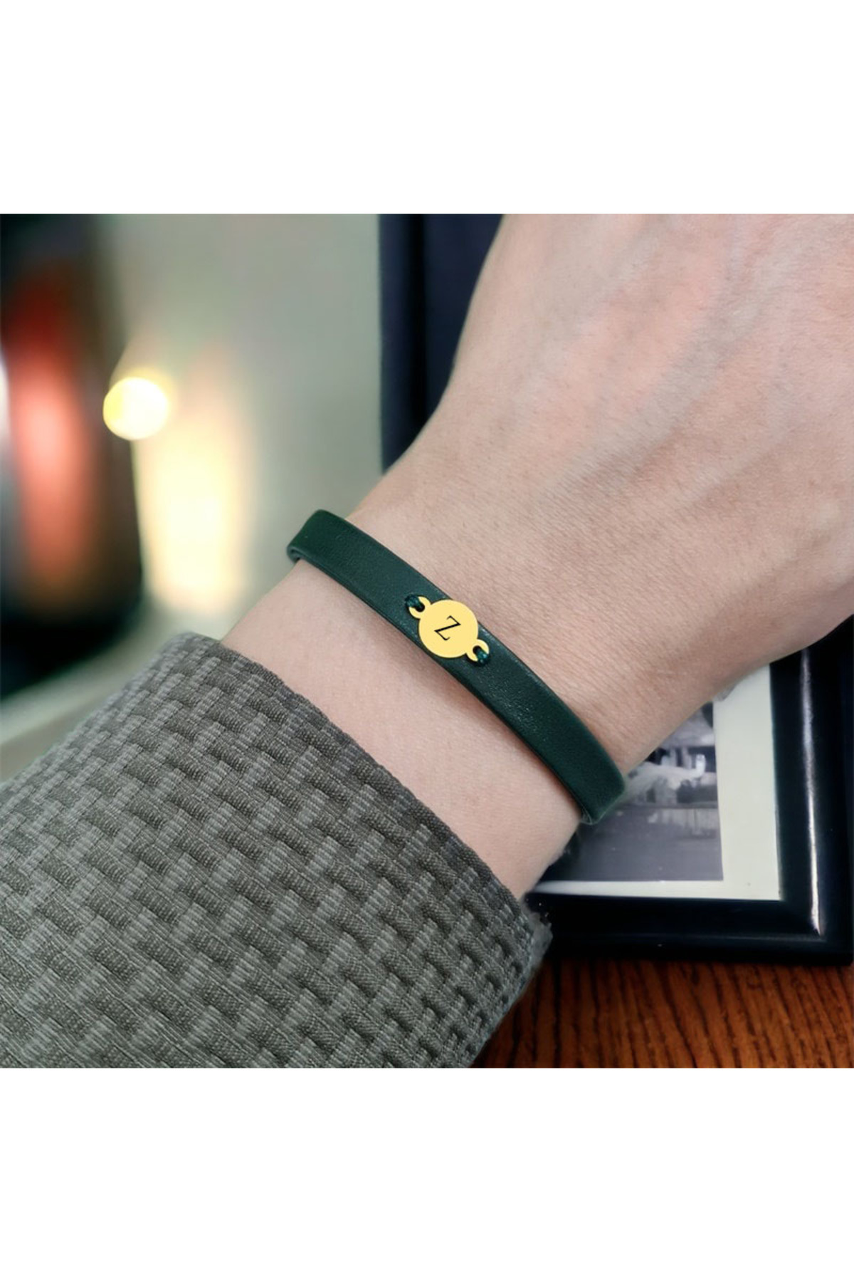 14 Ayar Plakalı Altın Ç Harfine Özel Yuvarlak Motifli Koyu Yeşil Derili Hediye Bileklik-543harf 14 Ayar Plakalı Altın Ç Harfine Özel Yuvarlak Motifli Koyu Yeşil Derili Hediye Bileklik-543harf 543-bildego-flgaf-MO2 22 cm