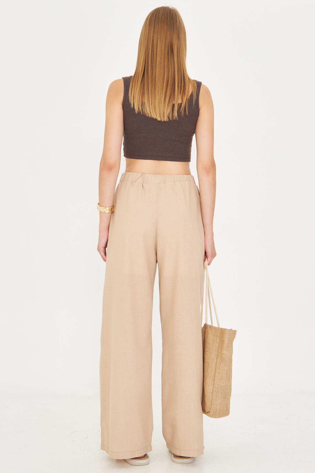 Kadın Bej Keten Görünümlü Beli Lastikli Cepli Bağlama Detaylı Astarlı Bol Pantolon Arm-25y001078 Kadın Bej Keten Görünümlü Beli Lastikli Cepli Bağlama Detaylı Astarlı Bol Pantolon Arm-25y001078 ARM-25Y001078 XL