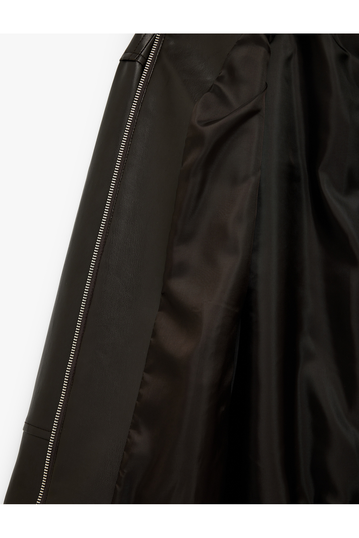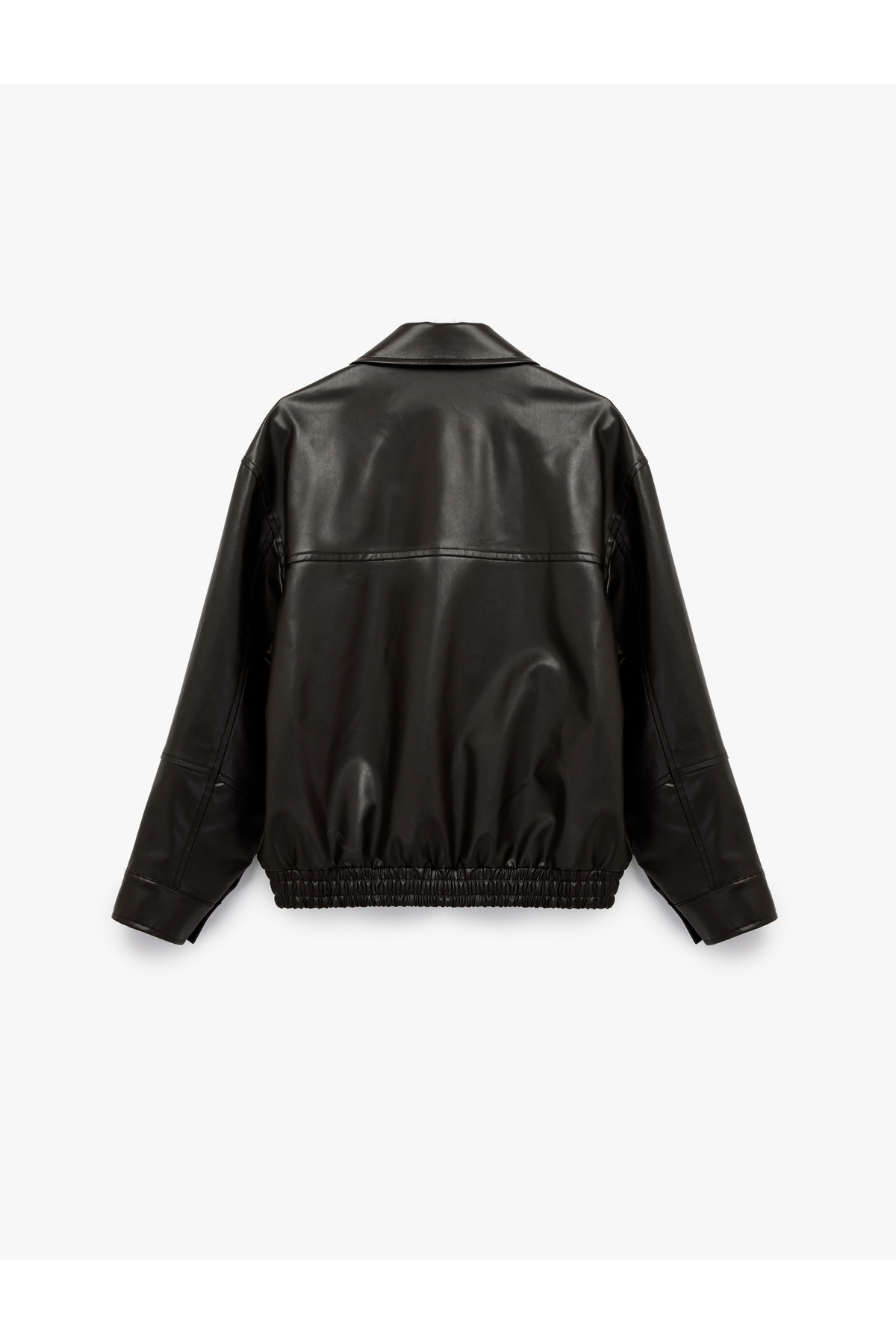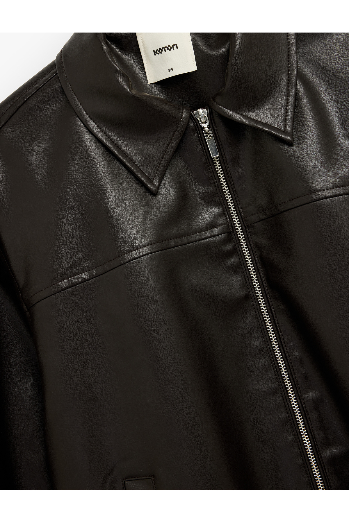 Fermuarlı Uzun Kollu Cep Detaylı Suni Deri Oversize Ceket Fermuarlı Uzun Kollu Cep Detaylı Suni Deri Oversize Ceket 6WAK20275EW 44