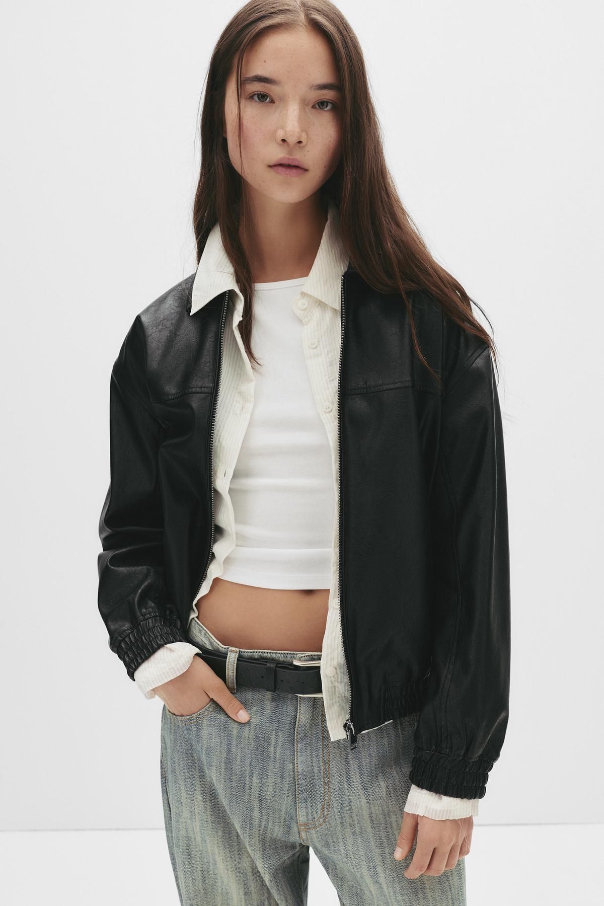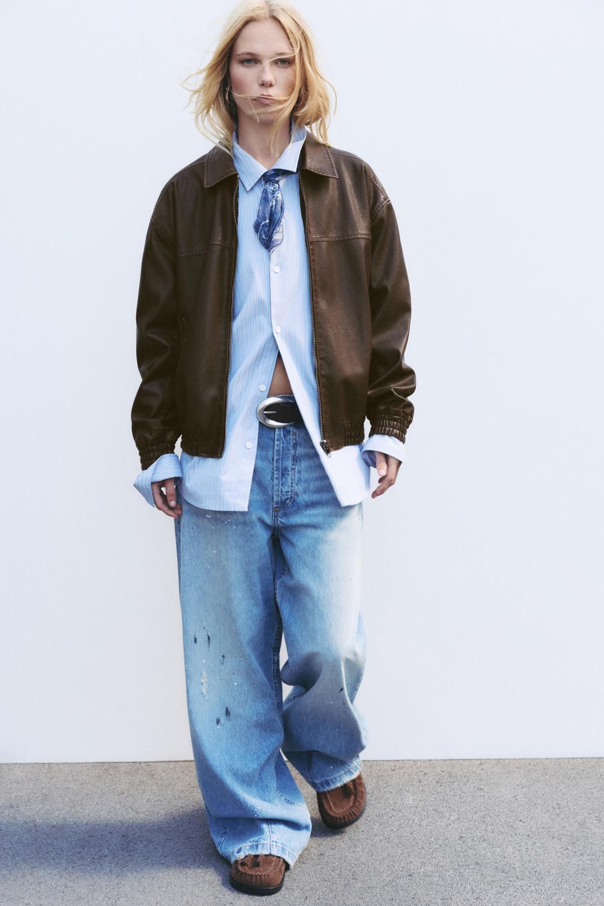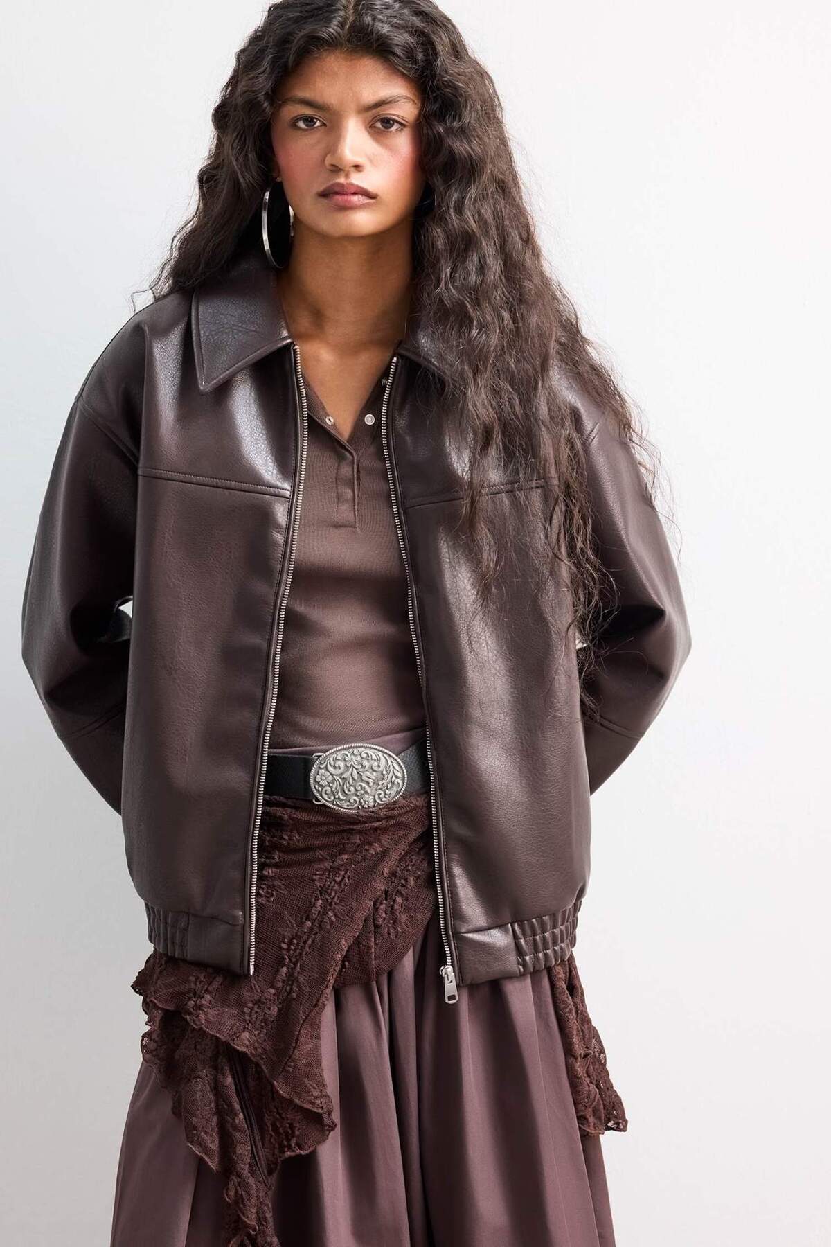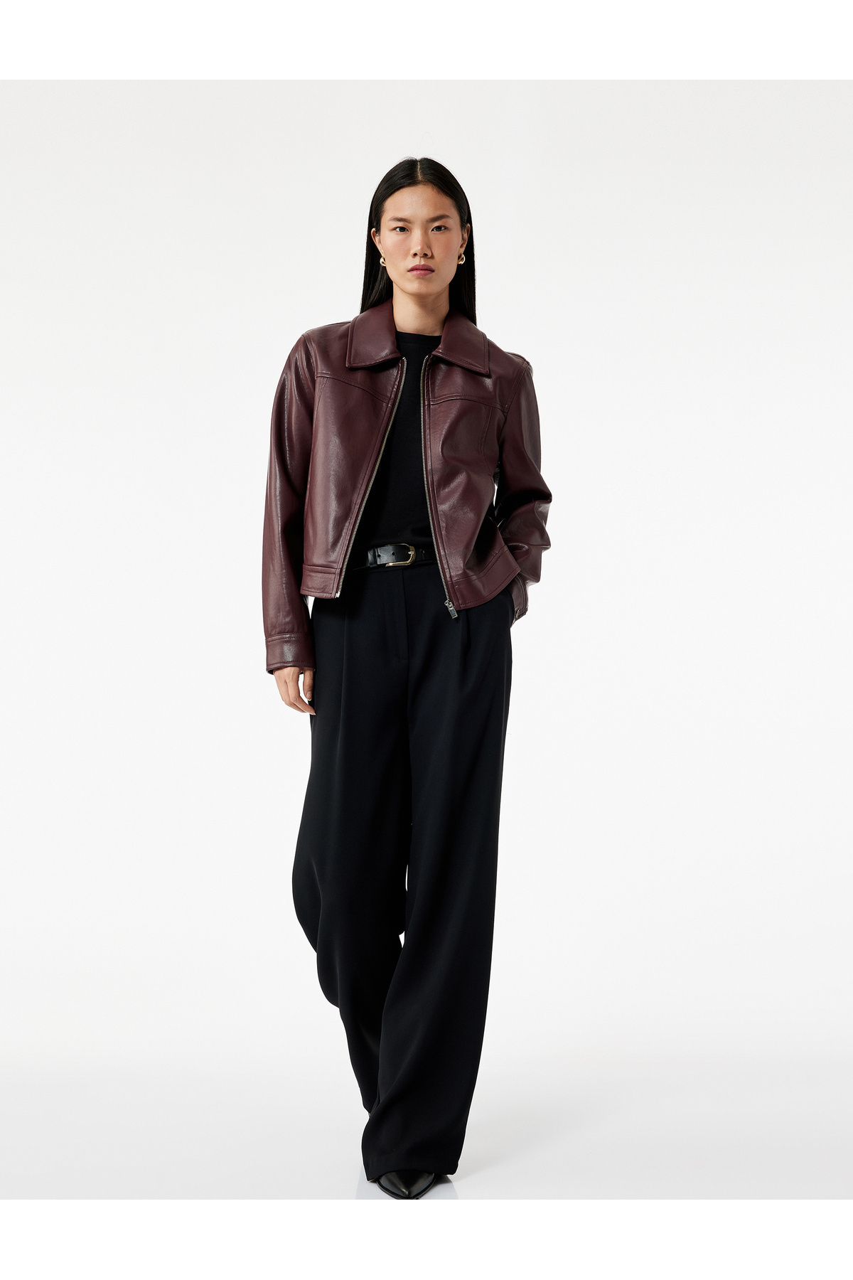 Fermuarlı Uzun Kollu Cep Detaylı Suni Deri Oversize Ceket Fermuarlı Uzun Kollu Cep Detaylı Suni Deri Oversize Ceket 6WAK20275EW 44