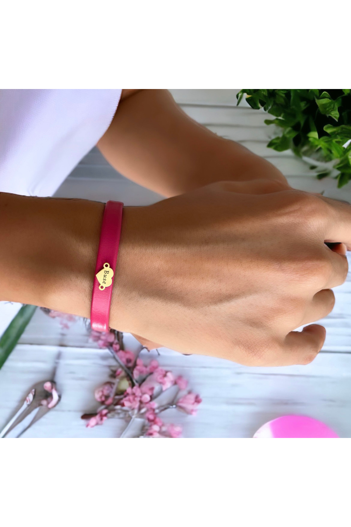 14 Ayar Altın Plakalı Buse İsmine Özel Doğal Pembe Derili Kalp Motifli Hediye Bileklik-544isim 14 Ayar Altın Plakalı Buse İsmine Özel Doğal Pembe Derili Kalp Motifli Hediye Bileklik-544isim 544-febpklde-GFAlT-MO1 22 cm