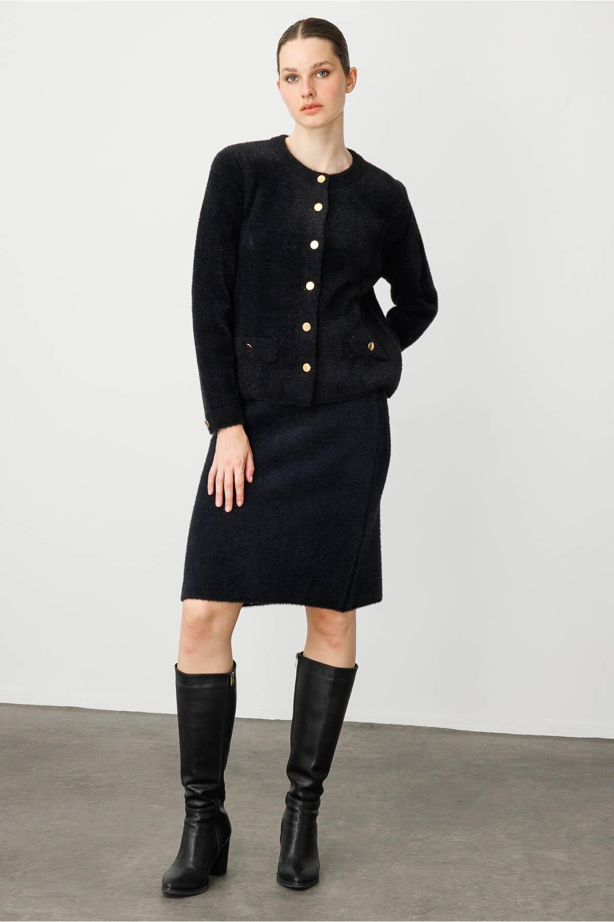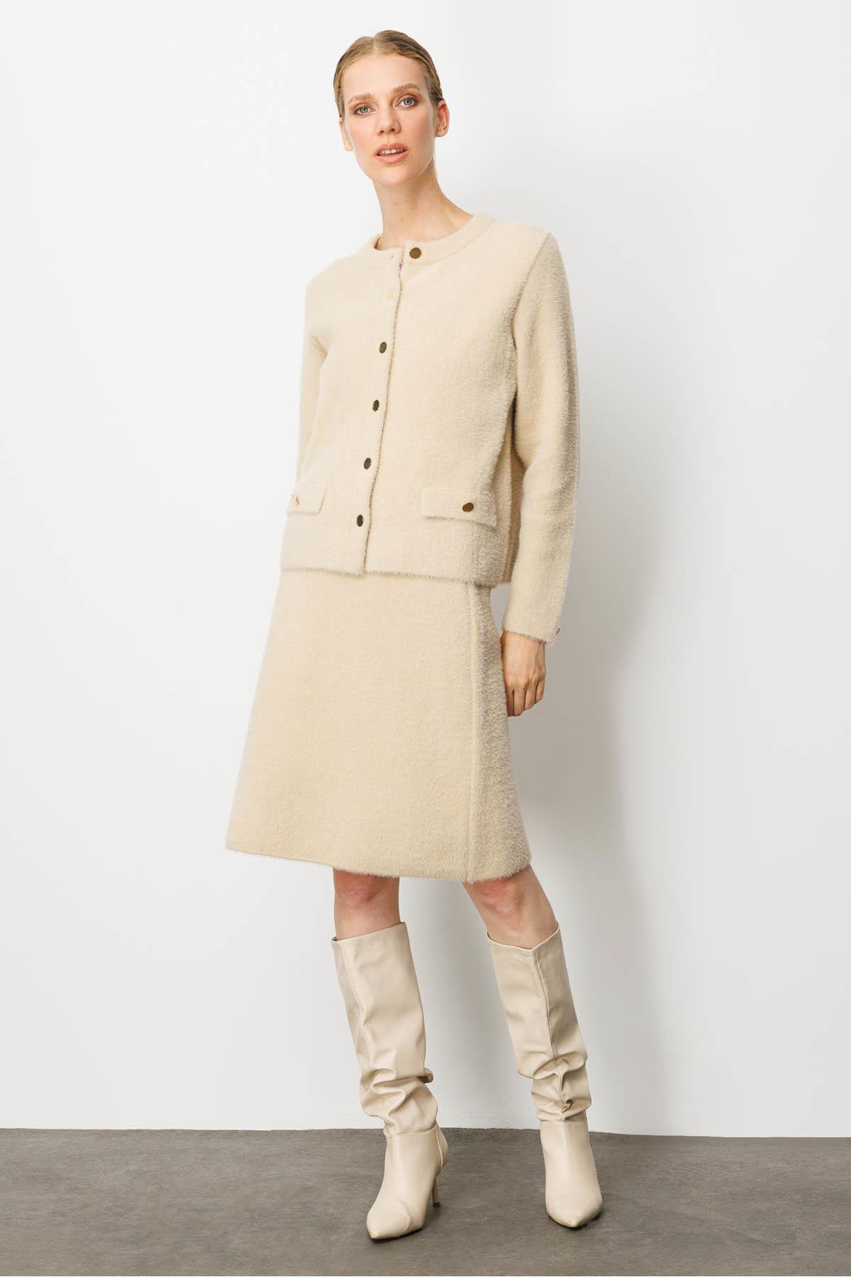 Kadın Sıfır Yaka Metal Düğmeli Afrodit Kısa Triko Ceket Bej Kadın Sıfır Yaka Metal Düğmeli Afrodit Kısa Triko Ceket Bej 25006 XL