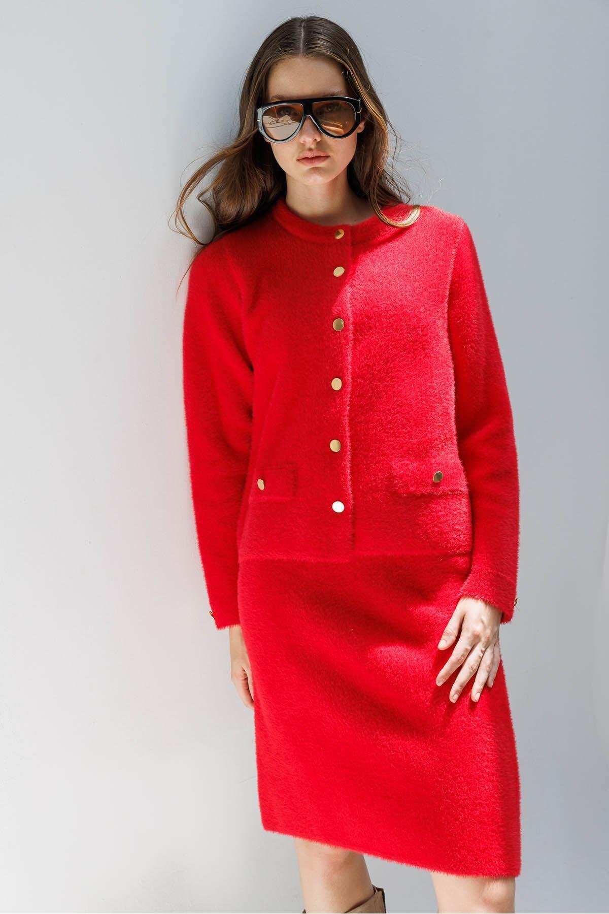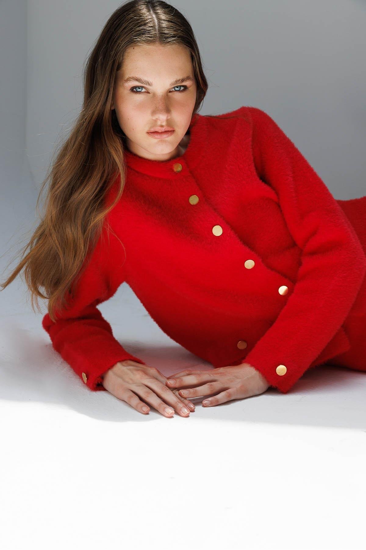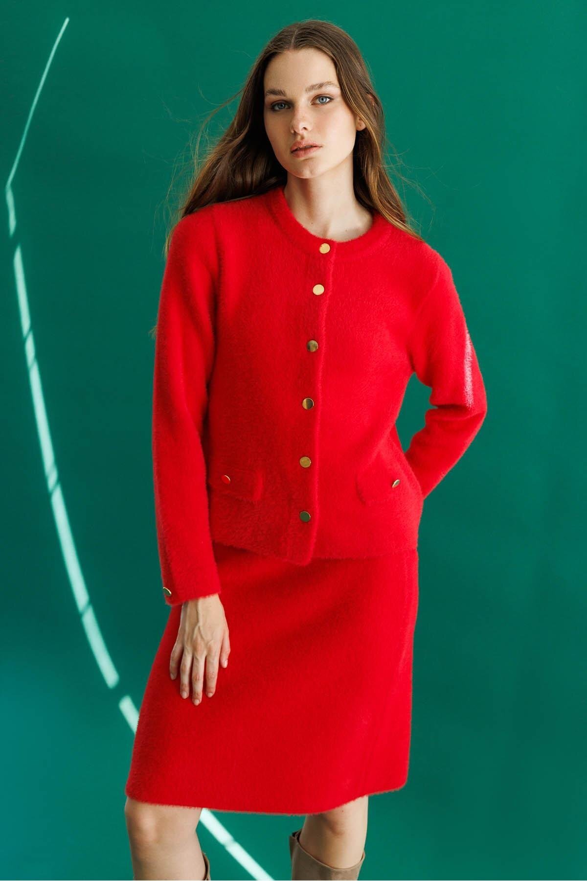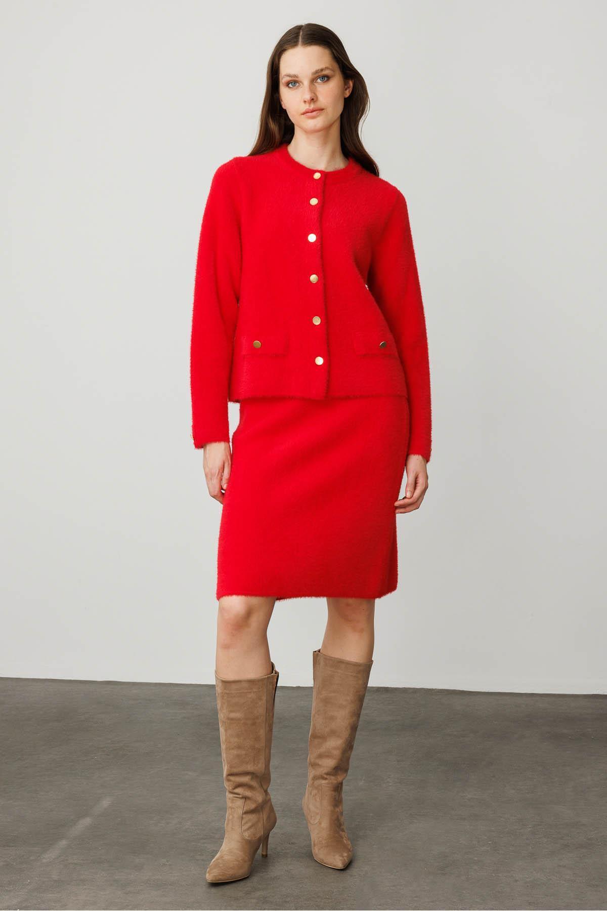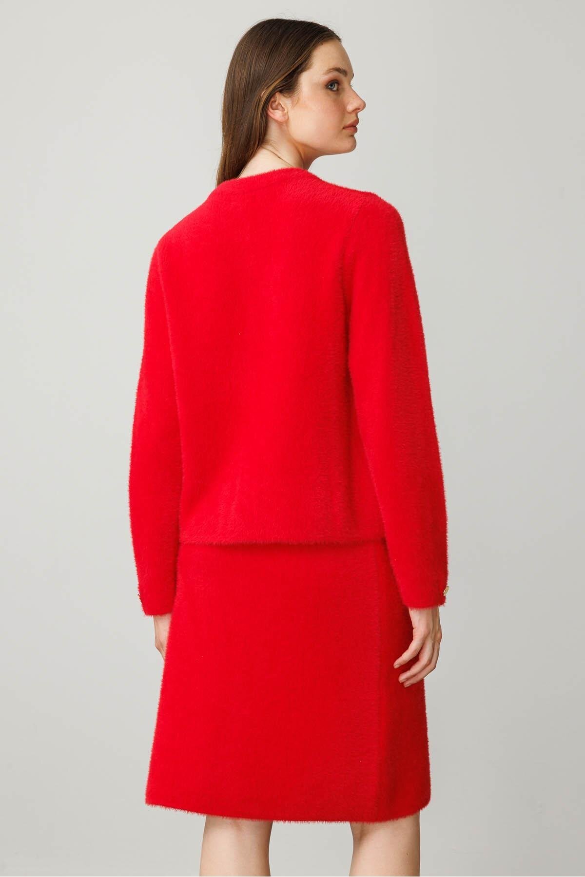 Kadın Sıfır Yaka Metal Düğmeli Afrodit Kısa Triko Ceket Y.Kırmızı Kadın Sıfır Yaka Metal Düğmeli Afrodit Kısa Triko Ceket Y.Kırmızı 25006 XL