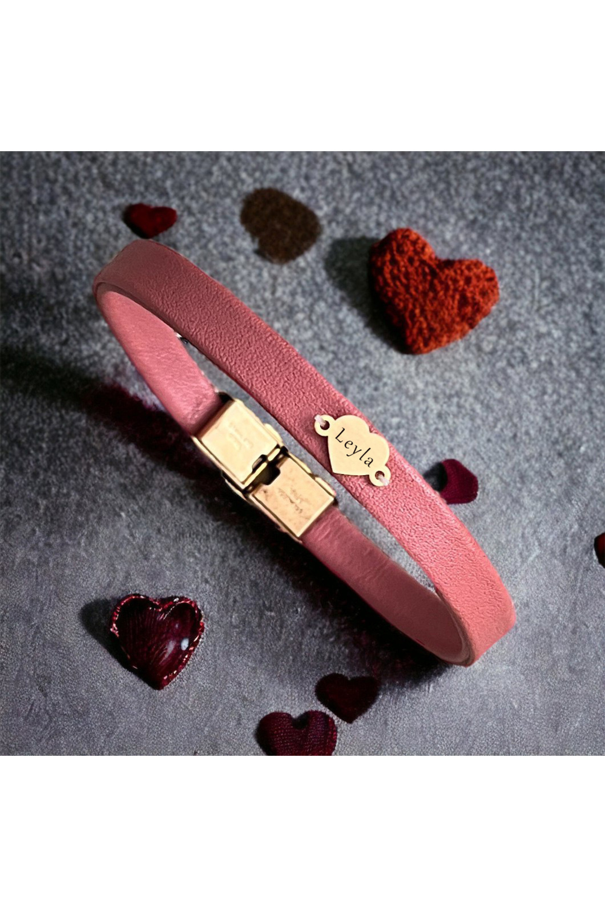 14 Ayar Altın Plakalı Gül İsmine Özel Açık Kırmızı Derili Kalp Figürlü Hediye Bileklik-545isim 14 Ayar Altın Plakalı Gül İsmine Özel Açık Kırmızı Derili Kalp Figürlü Hediye Bileklik-545isim 545-febpkaphd-GFAPT-MO1 22 cm