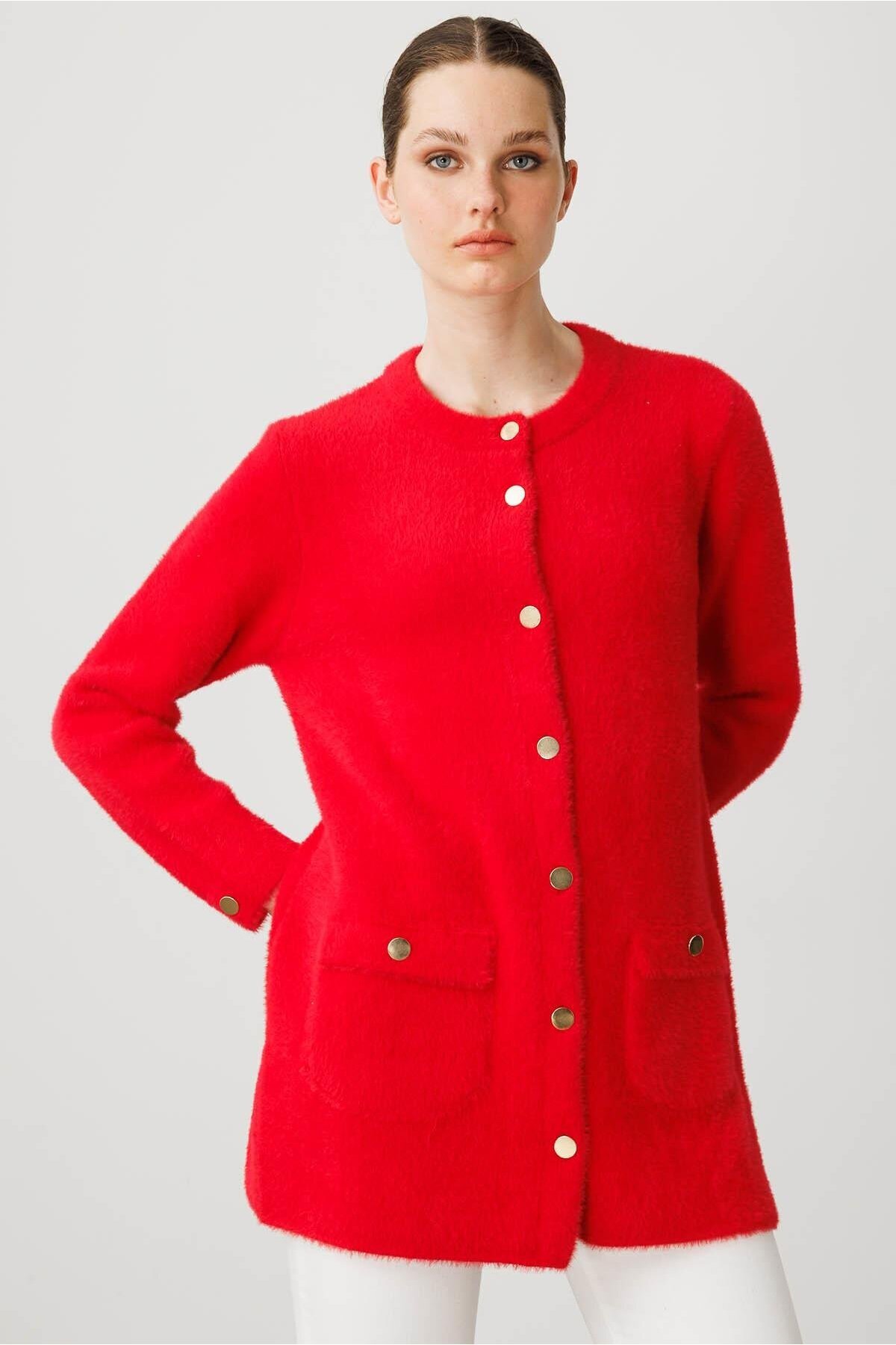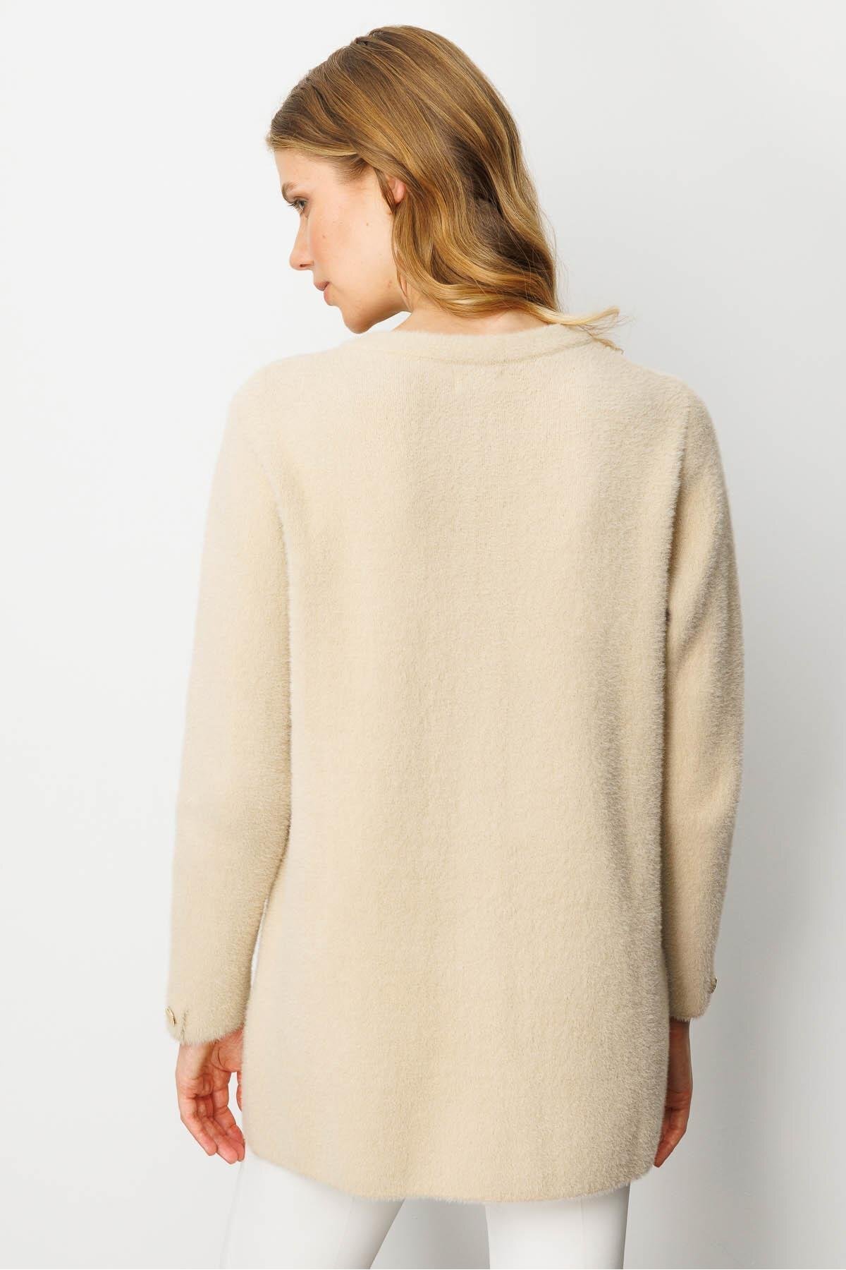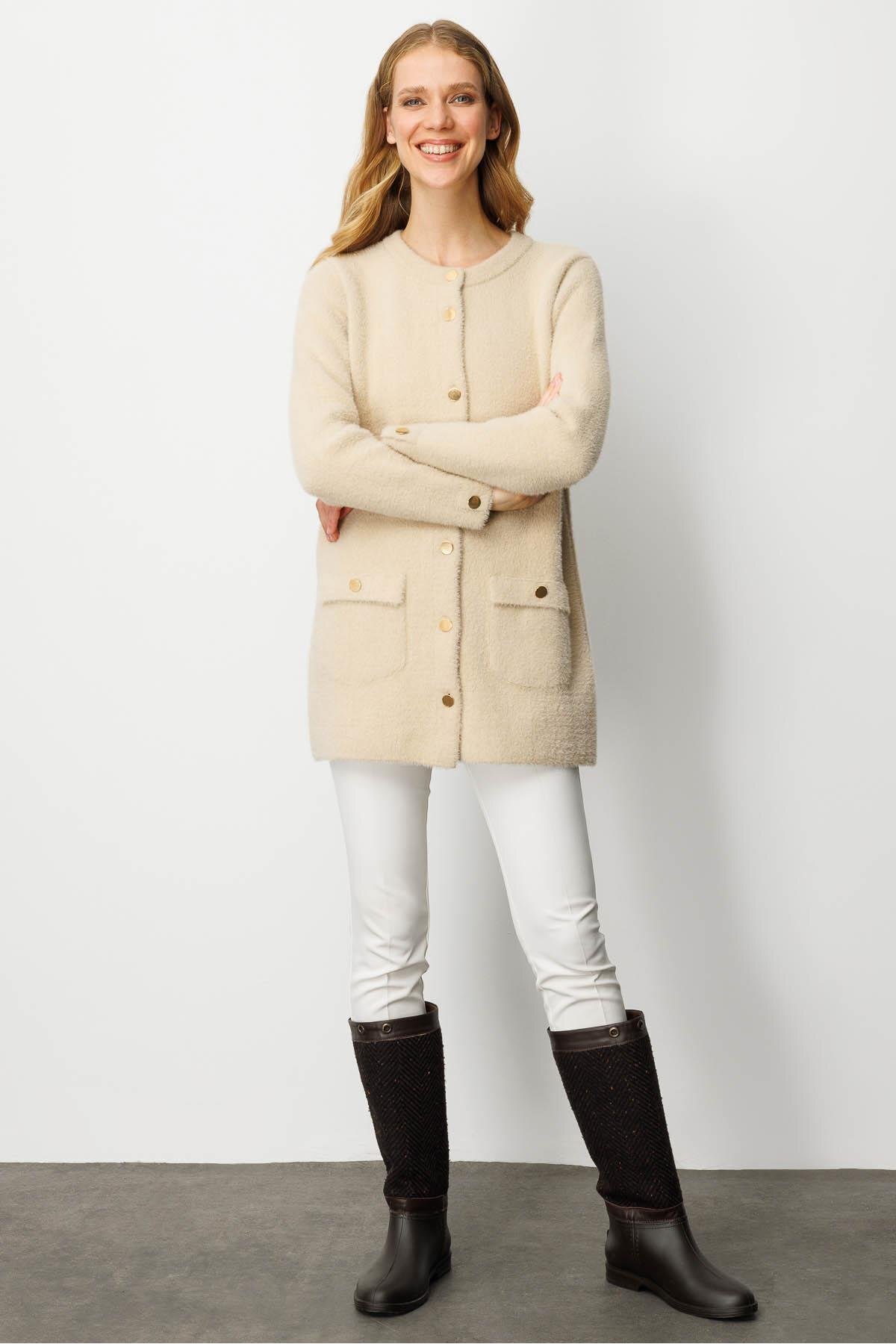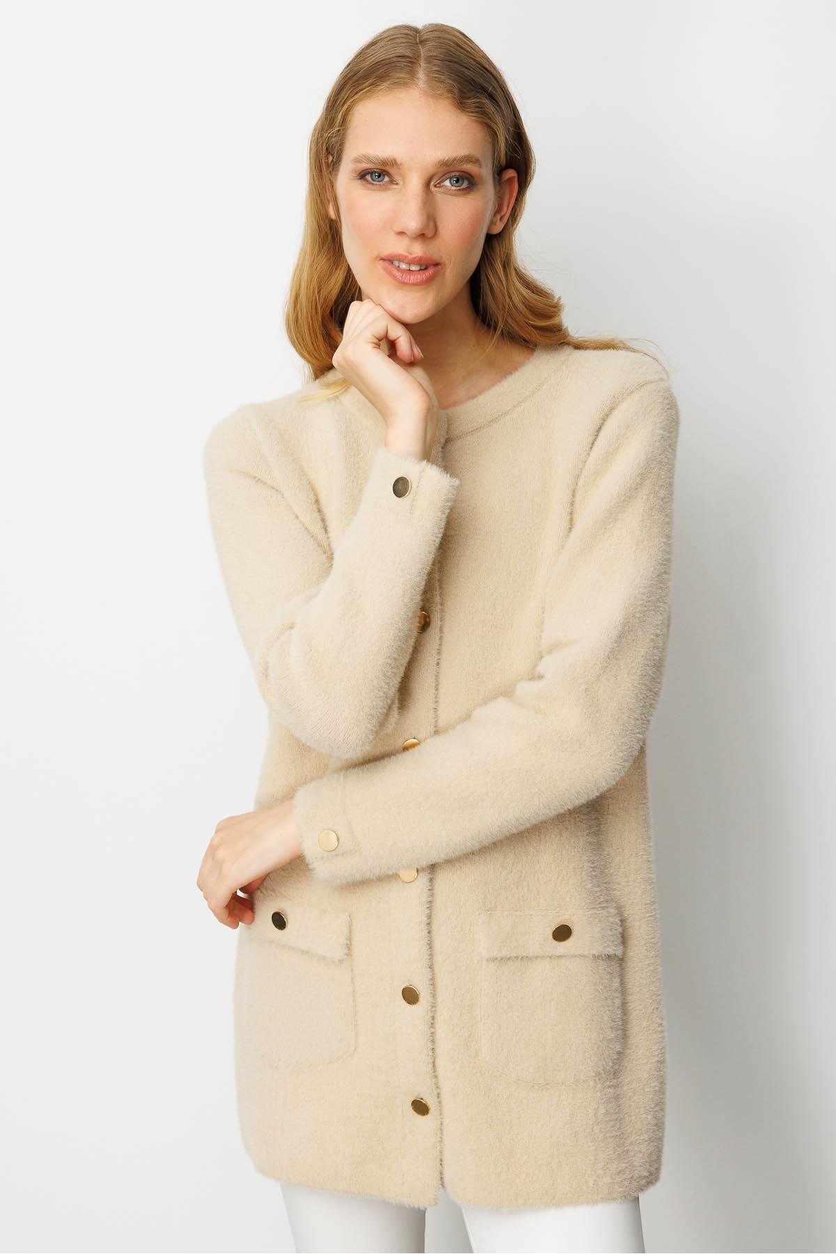 Kadın Sıfır Yaka Metal Düğmeli Araboy Afrodit Triko Ceket Bej Kadın Sıfır Yaka Metal Düğmeli Araboy Afrodit Triko Ceket Bej 25007 XL