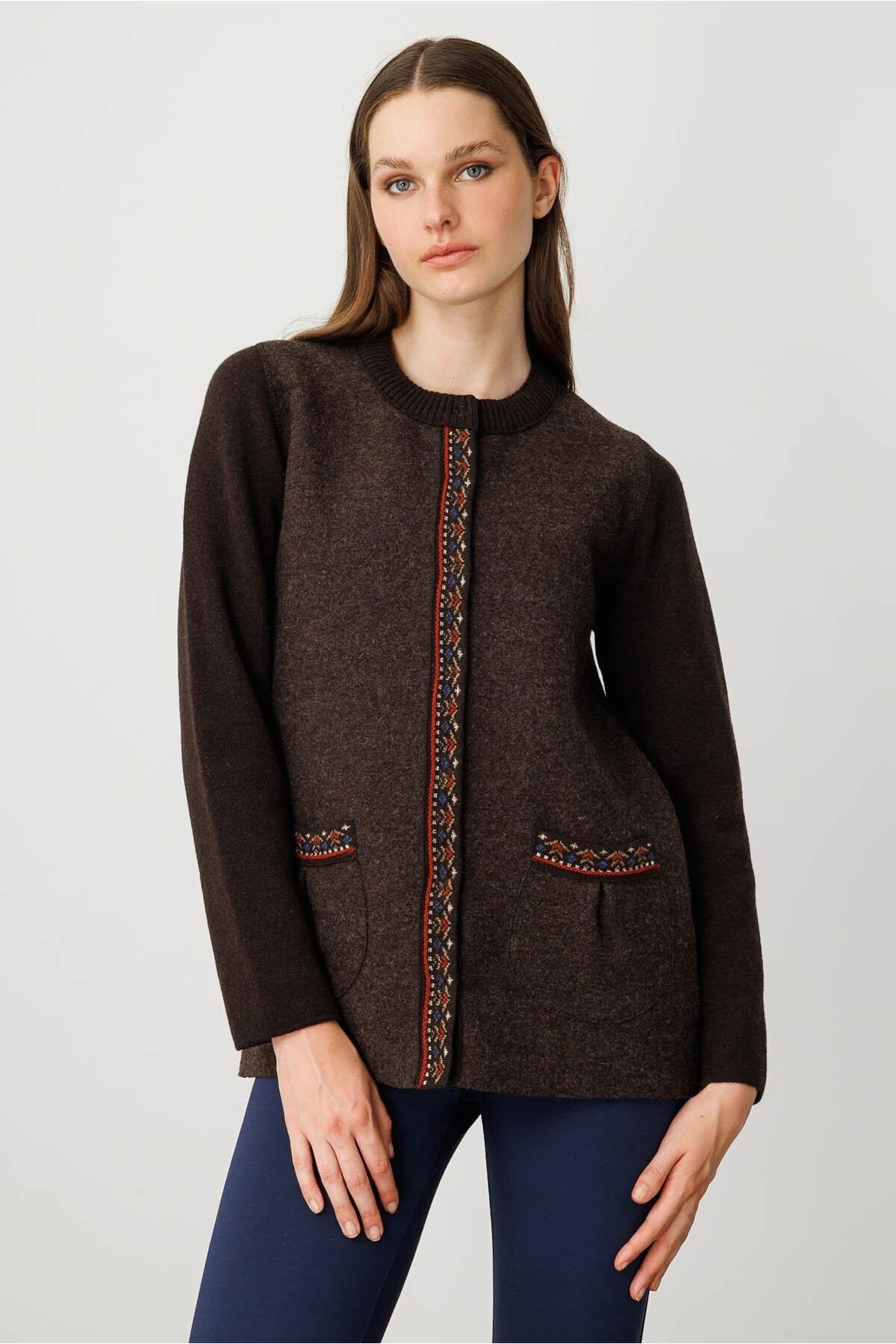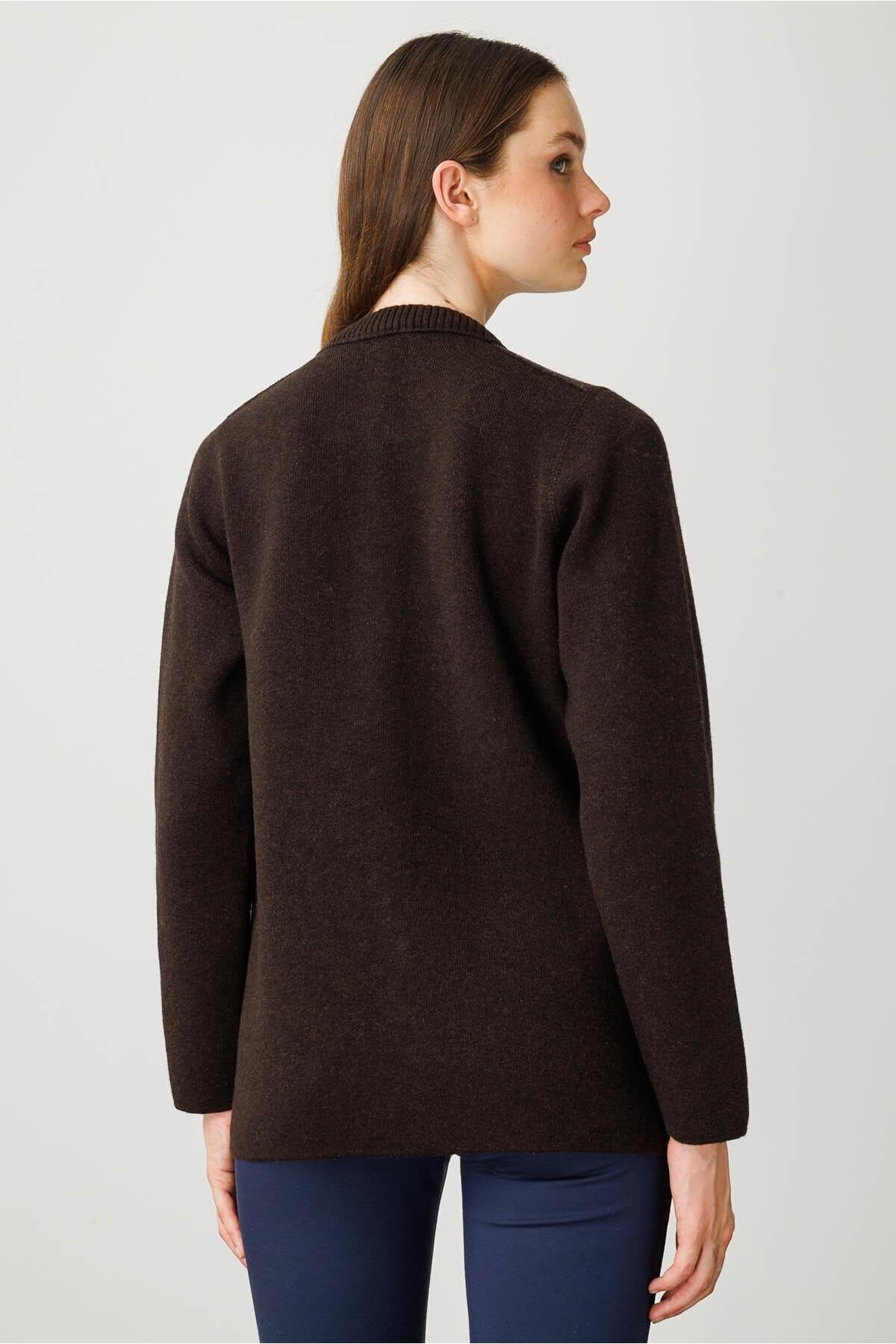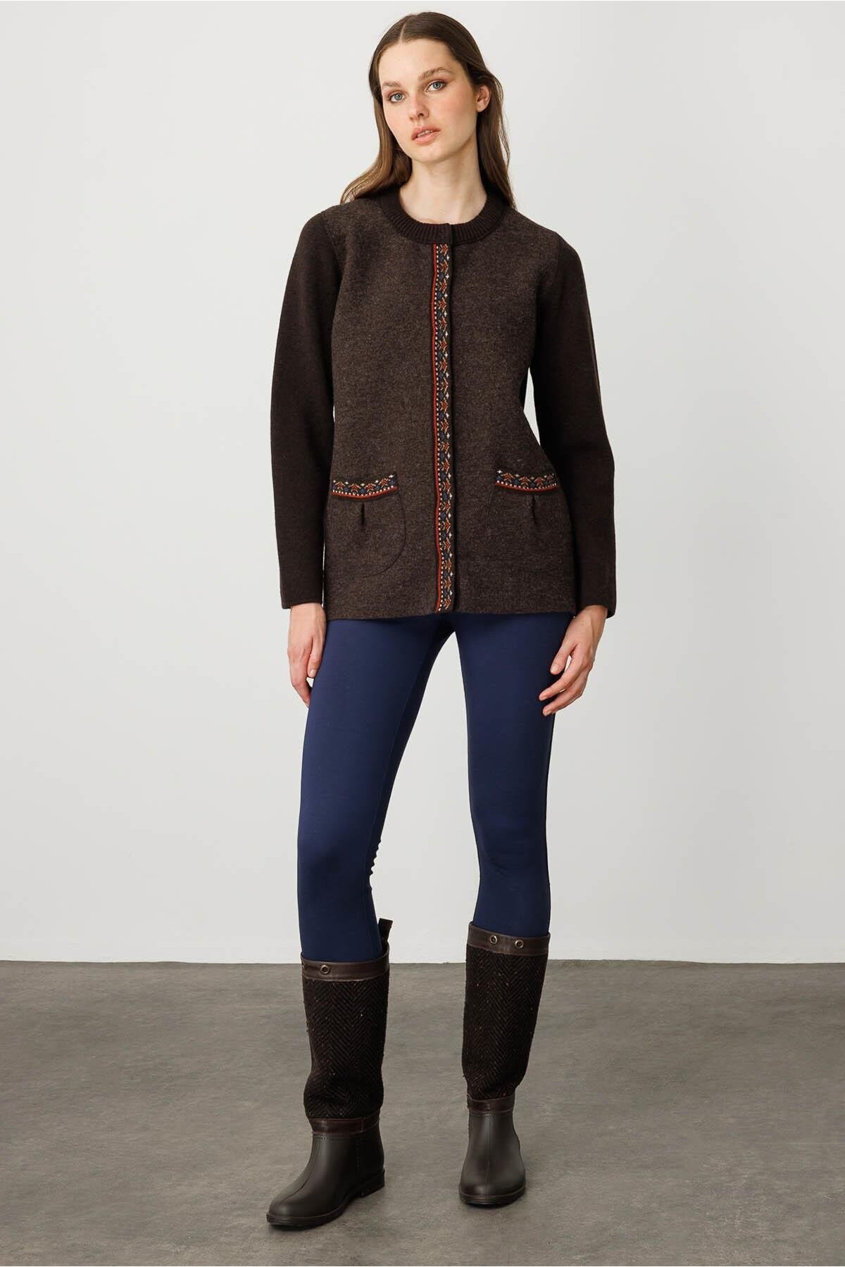 Kadın Sıfır Yaka Önü Keçe Kısa Yün Ceket K.Kahve Kadın Sıfır Yaka Önü Keçe Kısa Yün Ceket K.Kahve 25018 XL