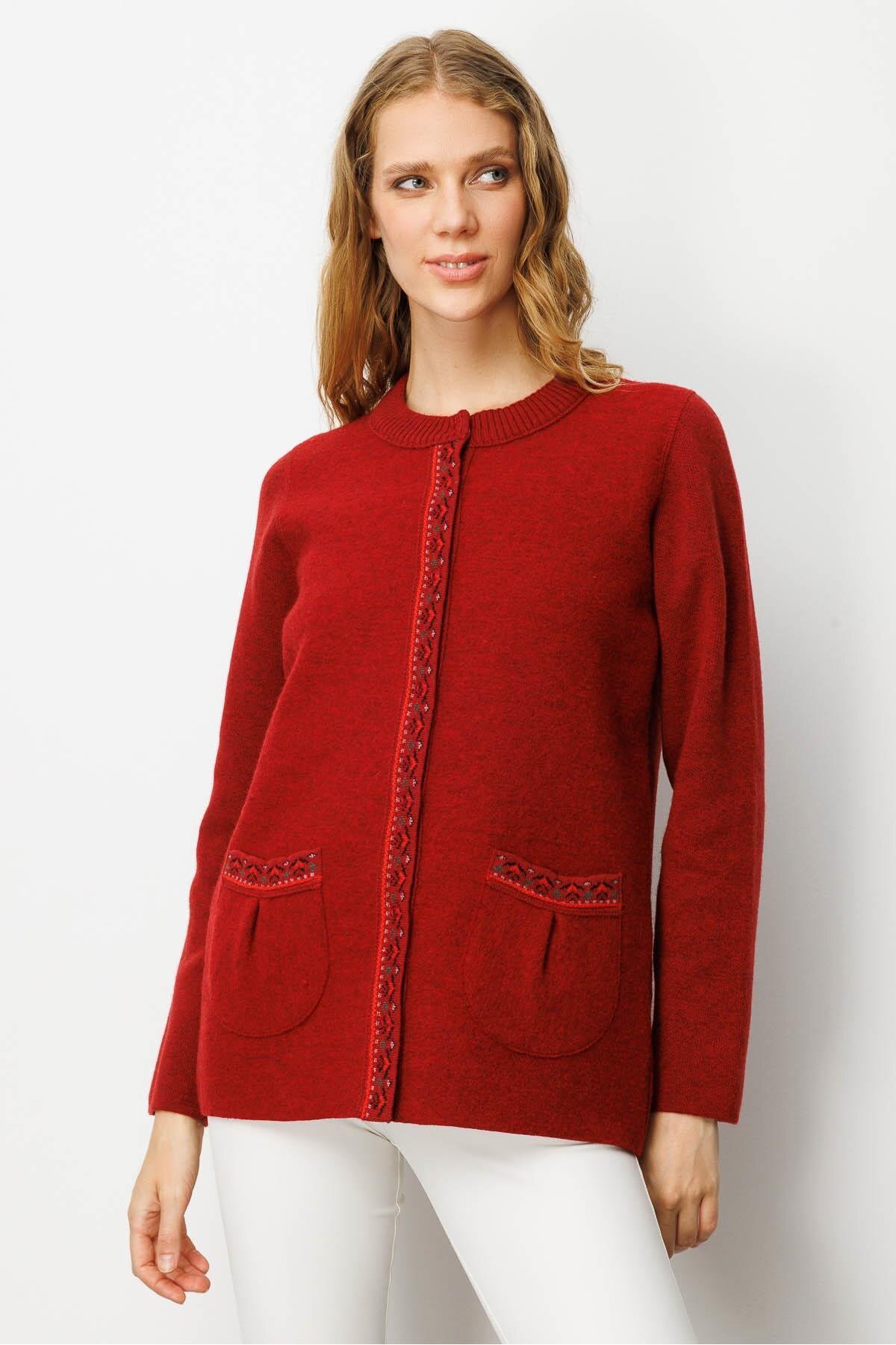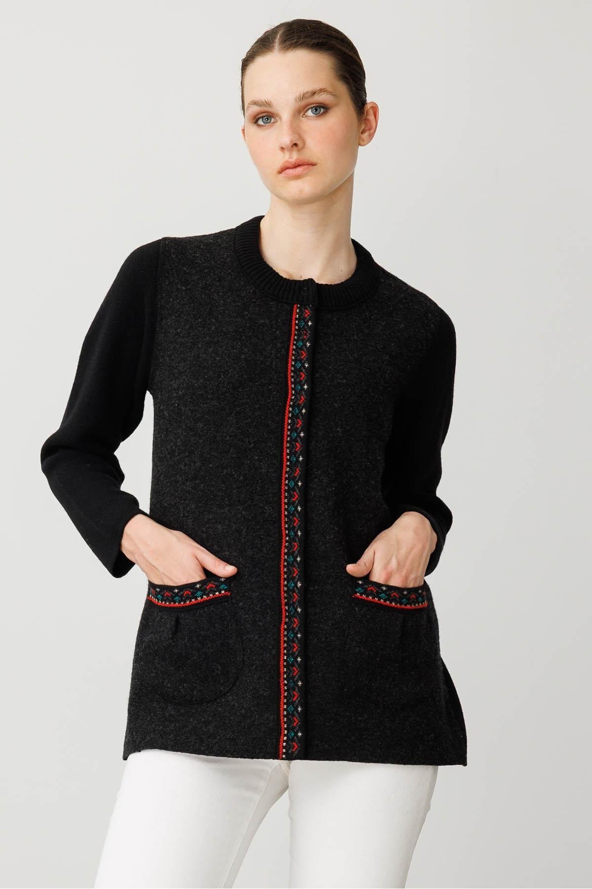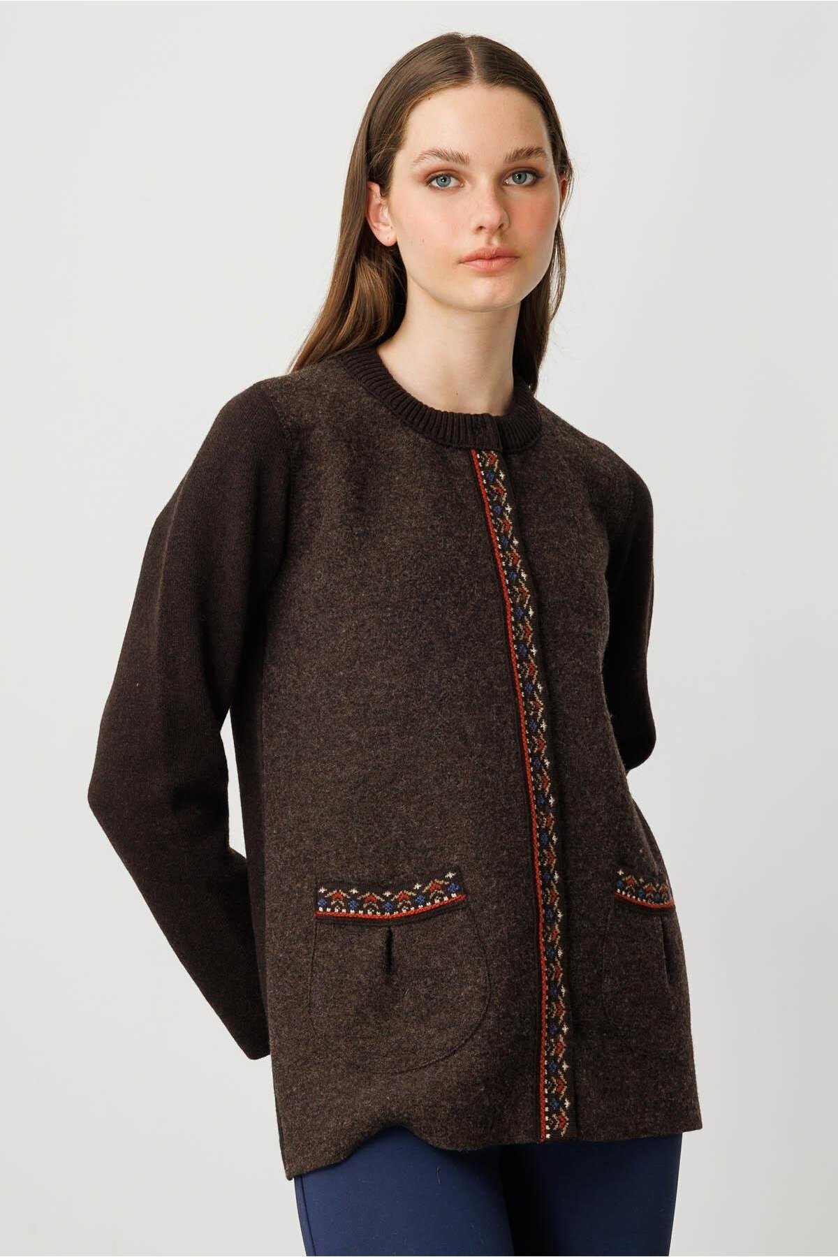 Kadın Sıfır Yaka Önü Keçe Kısa Yün Ceket K.Kahve Kadın Sıfır Yaka Önü Keçe Kısa Yün Ceket K.Kahve 25018 XL