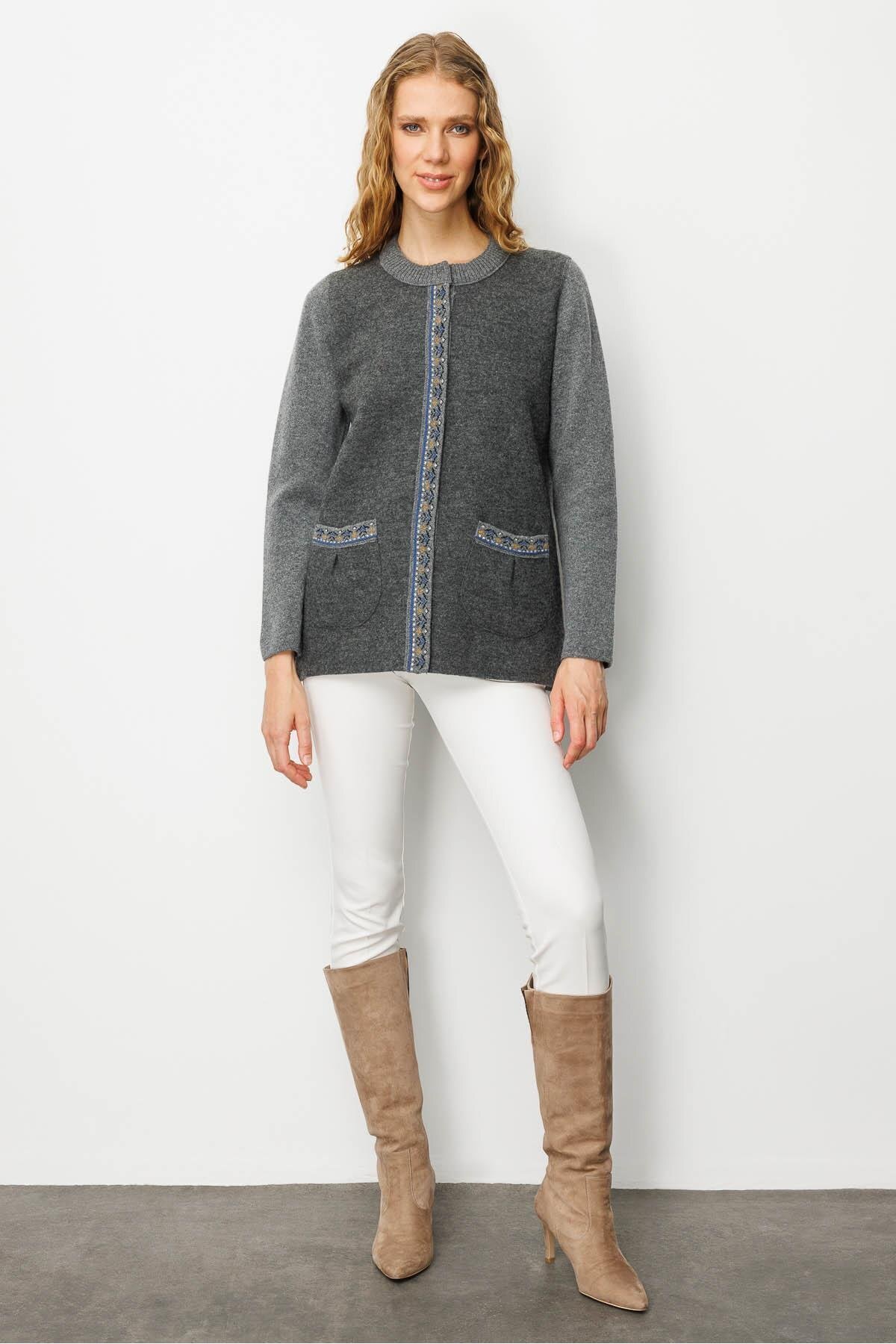 Kadın Sıfır Yaka Önü Keçe Kısa Yün Ceket Füme Kadın Sıfır Yaka Önü Keçe Kısa Yün Ceket Füme 25018 XL