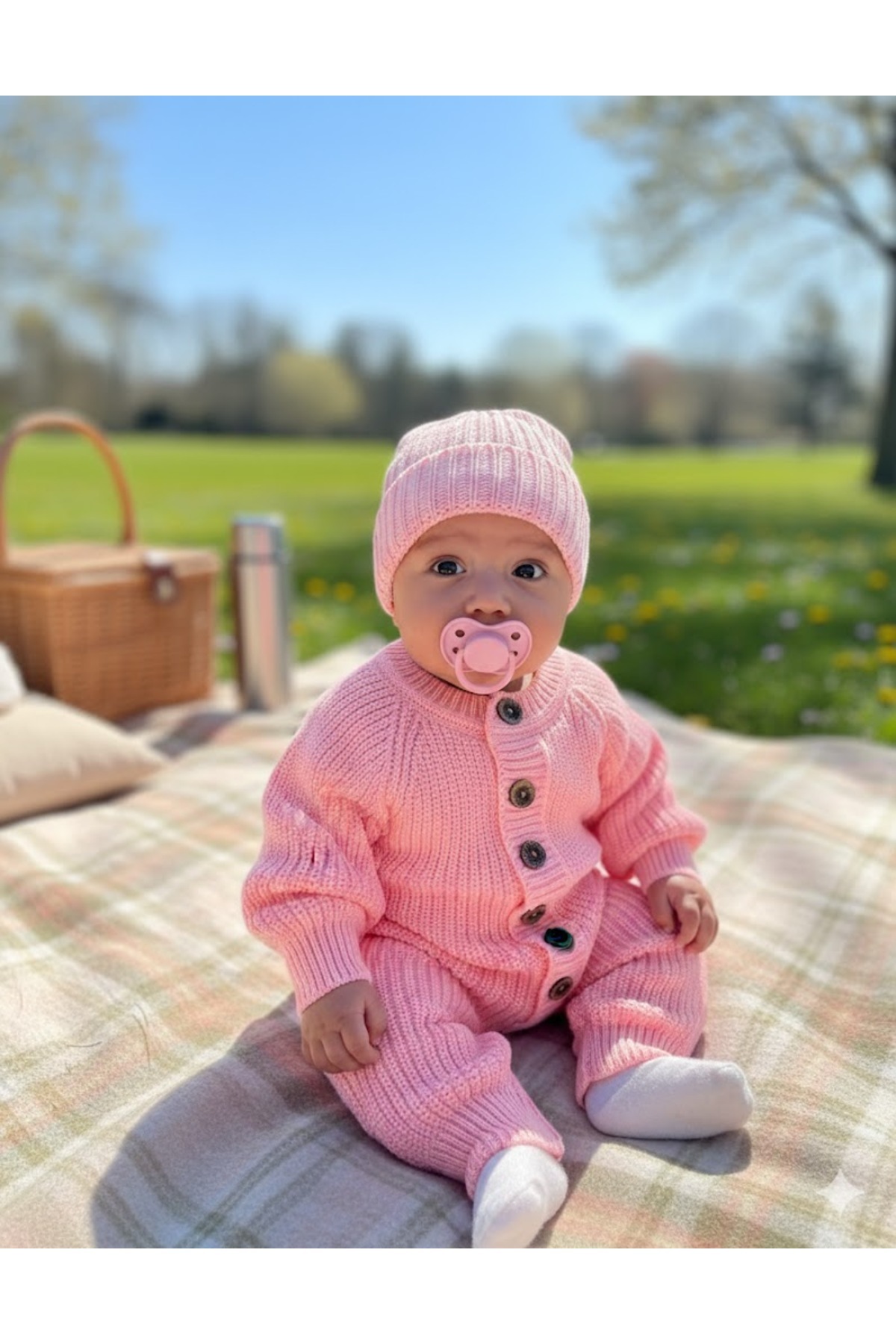Selanik Örgülü Bebek Tulum Bere 2 li Set Likralı Selanik Örgülü Bebek Tulum Bere 2 li Set Likralı 4545 9 - 12 Ay