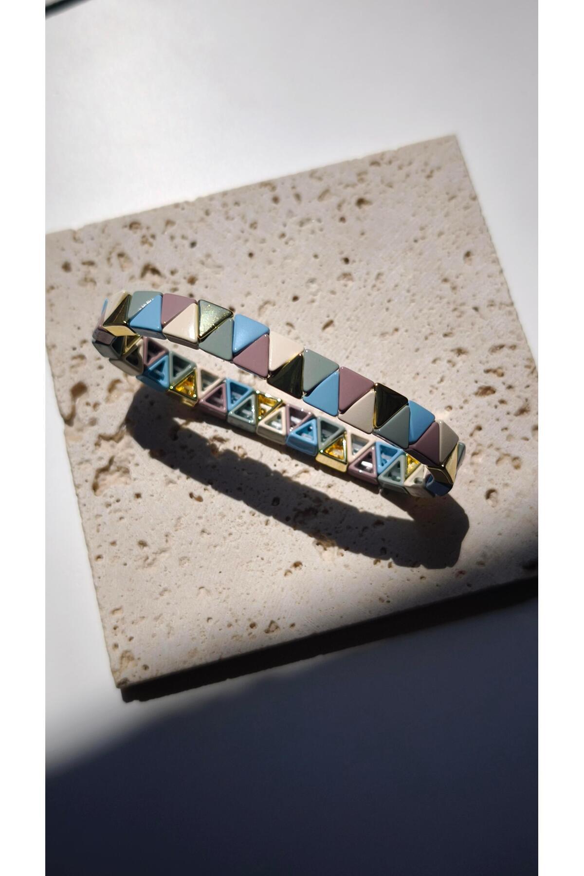 Porselen Kaplama Üç Renkli Üçgen Lastikli Bileklik Porselen Kaplama Üç Renkli Üçgen Lastikli Bileklik porsasteria تک سایز